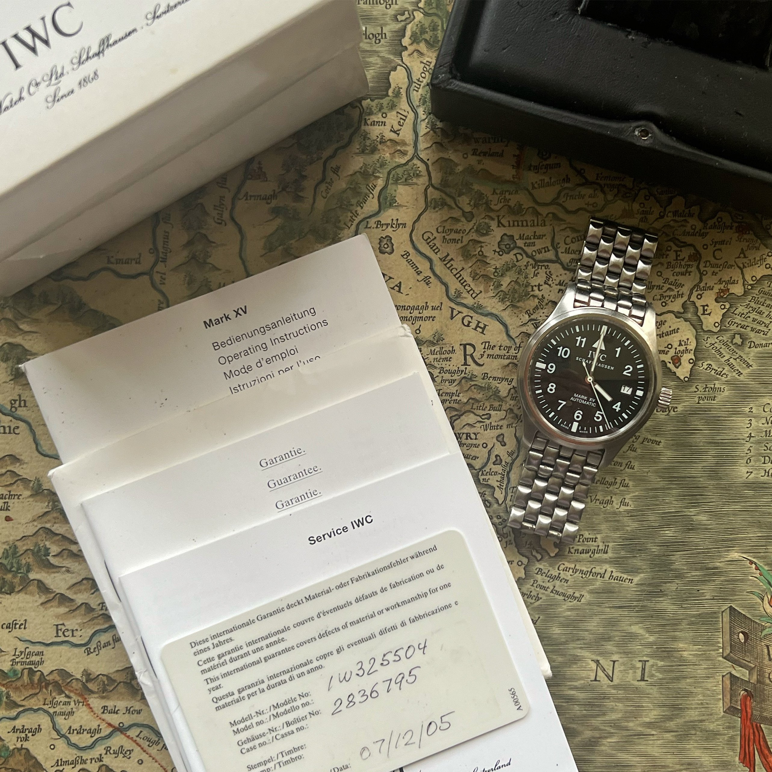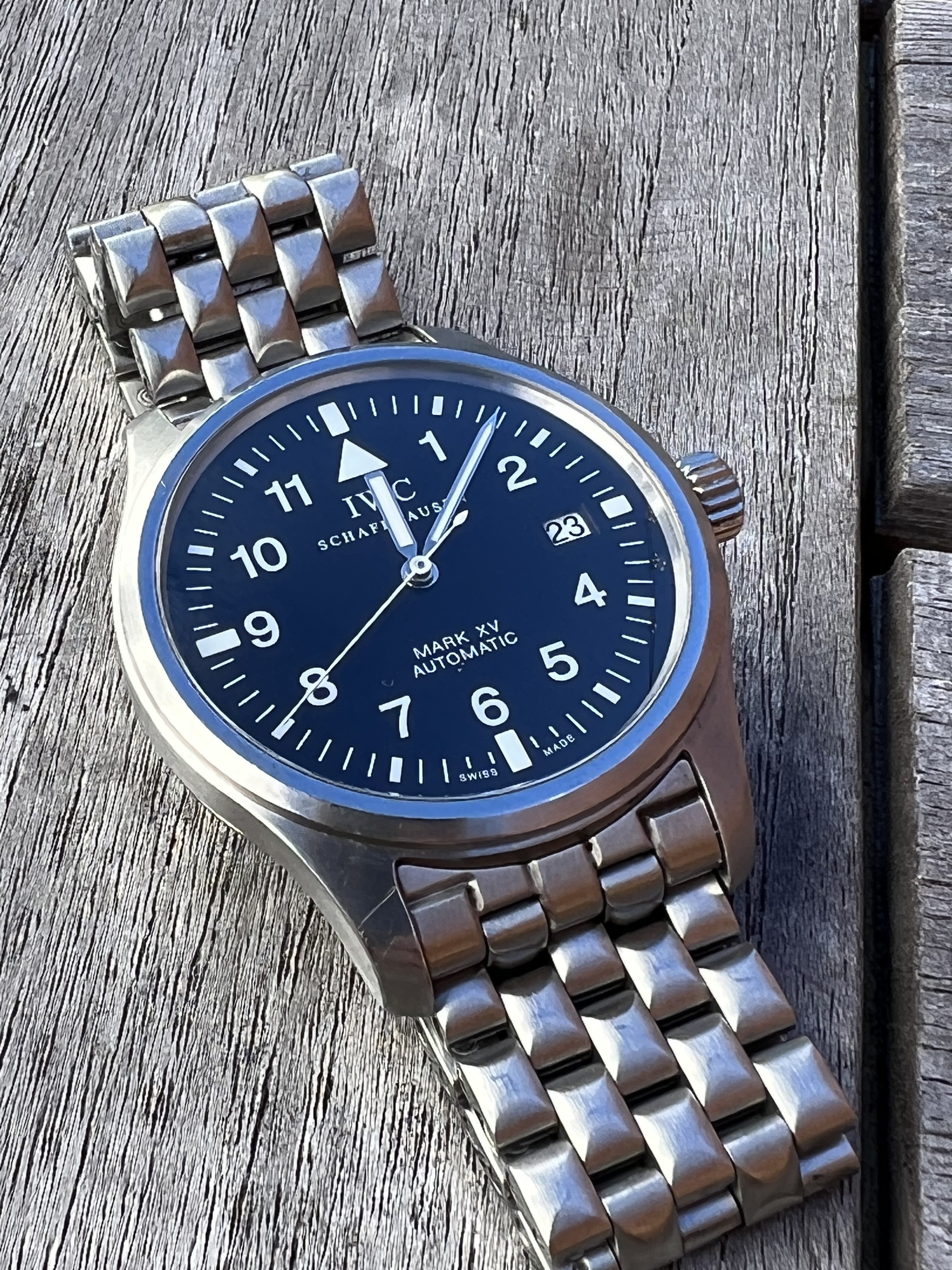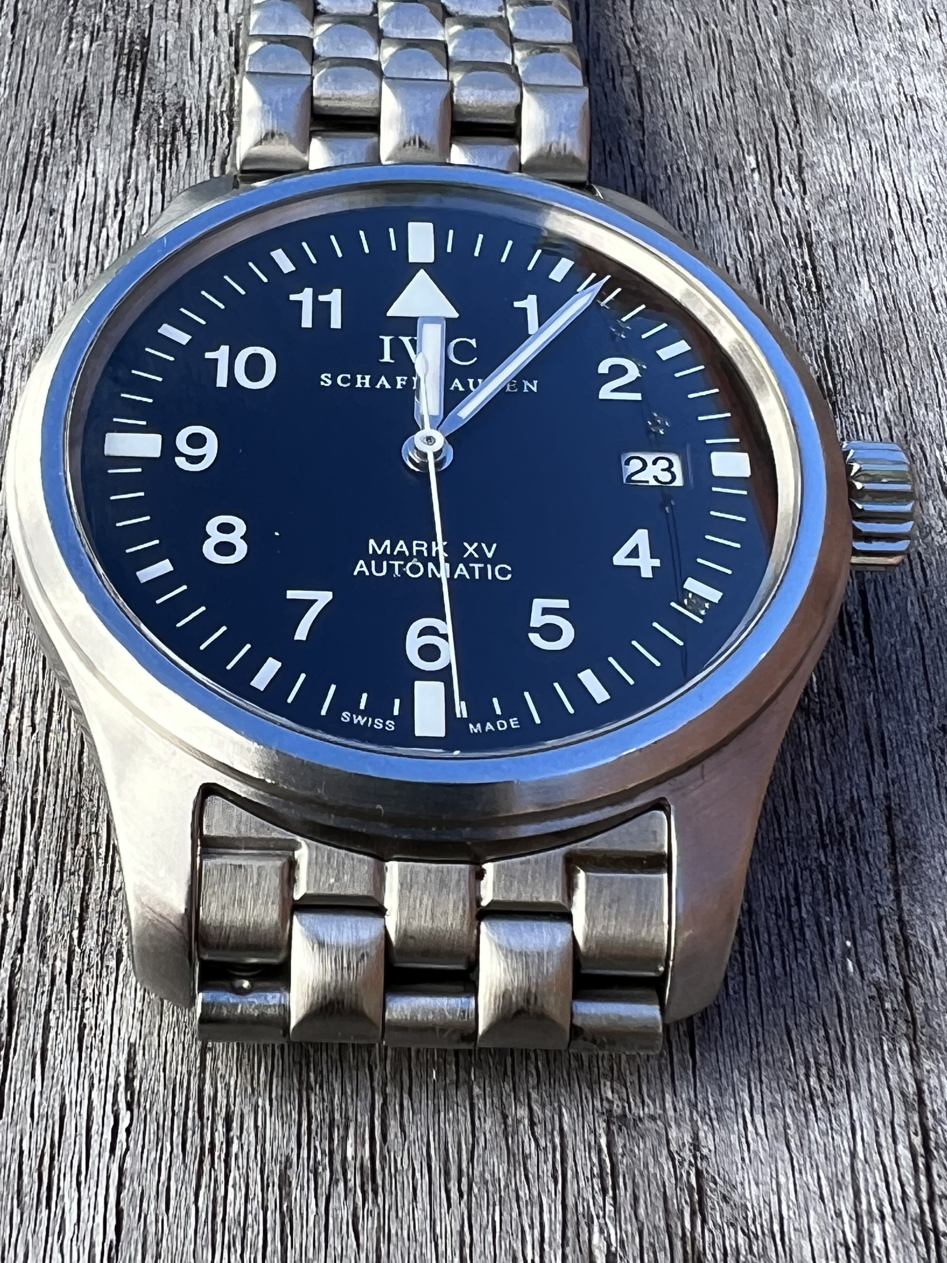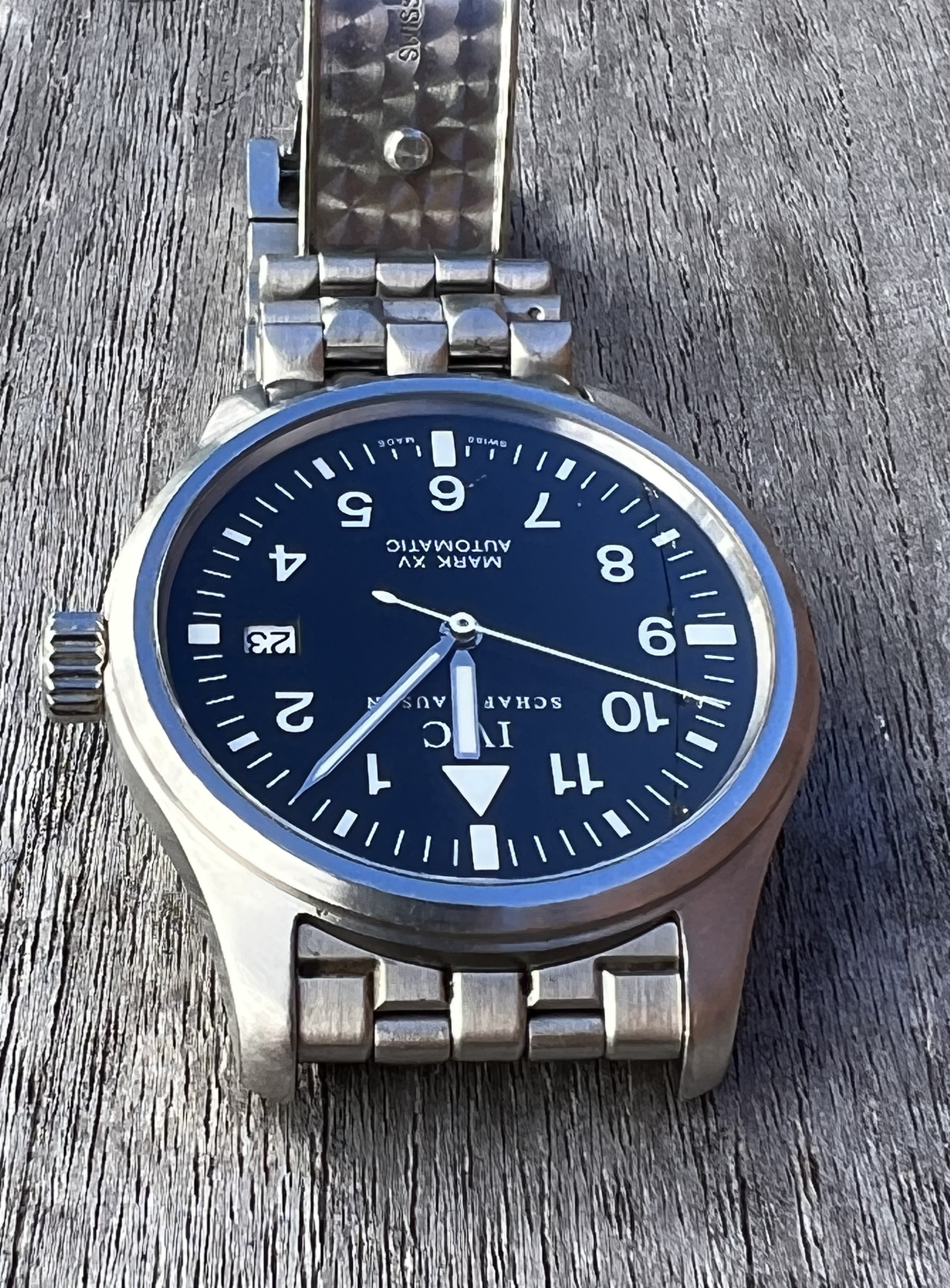 ·IWC Mark XV with bracelet, extra links, inner/outer boxes, booklets, card in previously enjoyed condition.