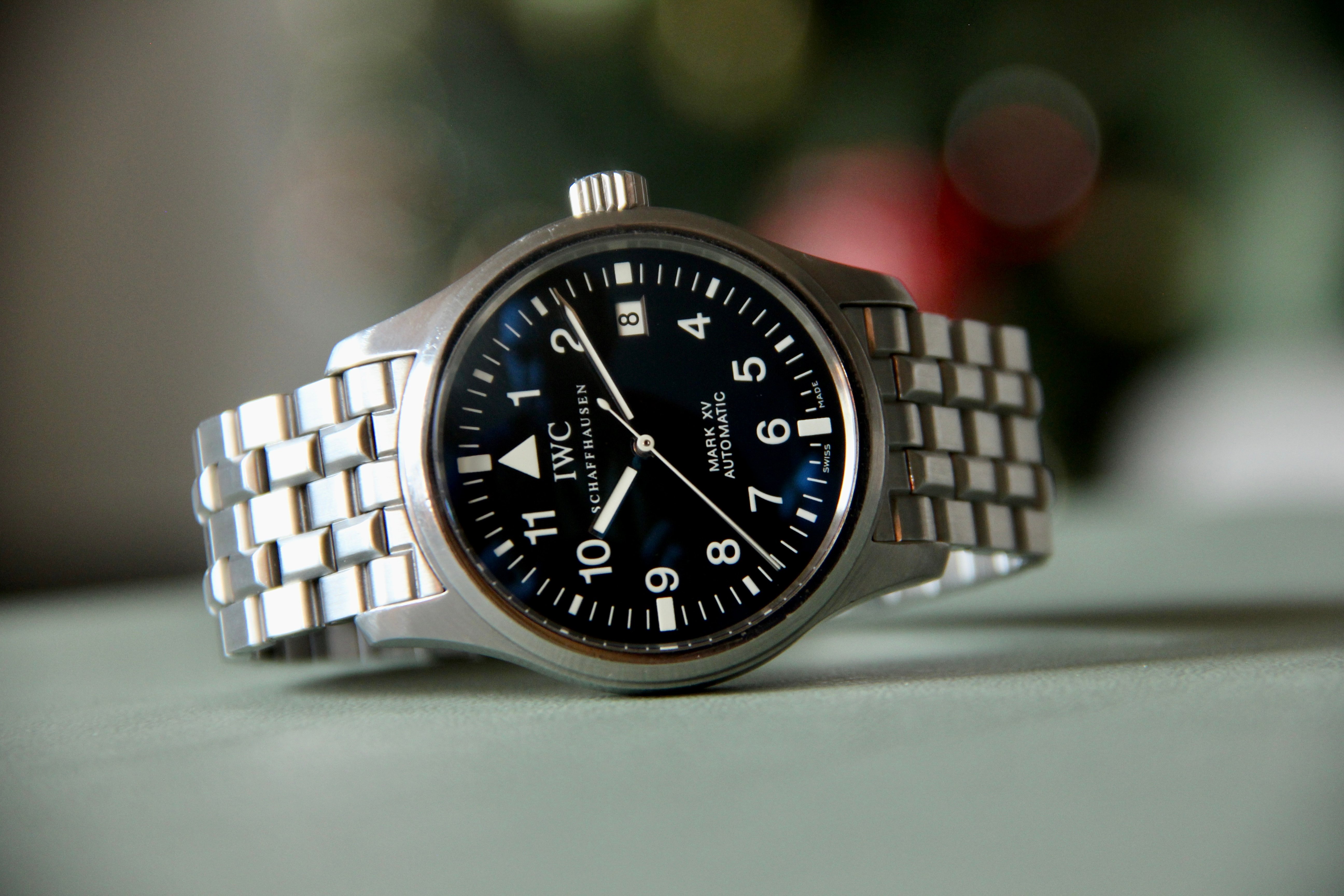 Up for sale today is a watch that needs little introduction. The last of the traditional fliegers from IWC - the Mark XV. If you're familiar with these, you might also know that these have a great set of dimensions at 38mm w/o crown, 47.5mm lug to lug and 10mm thick. Watch comes with its original bracelet, original black leather strap with deployant clasp, leather box, instruction manual and polishing cloth. Special mention of the bracelet which is easily the nicest bracelet I've worn till date.
