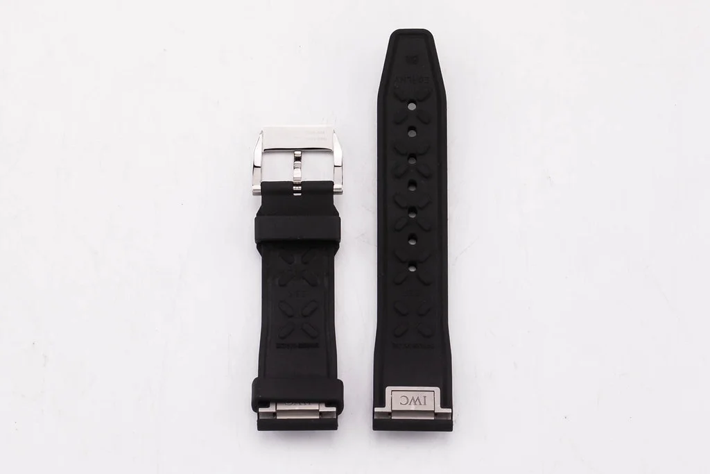 ·Up for sale is an mint condition IWC OEM Mark XX Easx-change Small Black Rubber Strap with Stainless Steel Pin Buckle, reference # E0HLNV. Fits IWC Mark XX and Chrono 41 models.