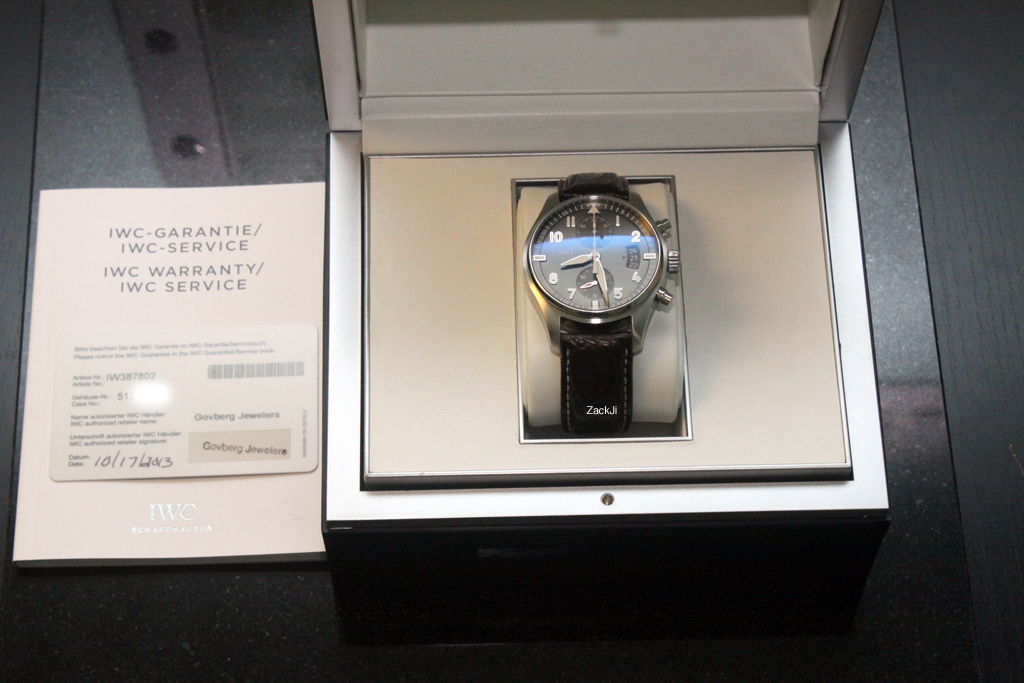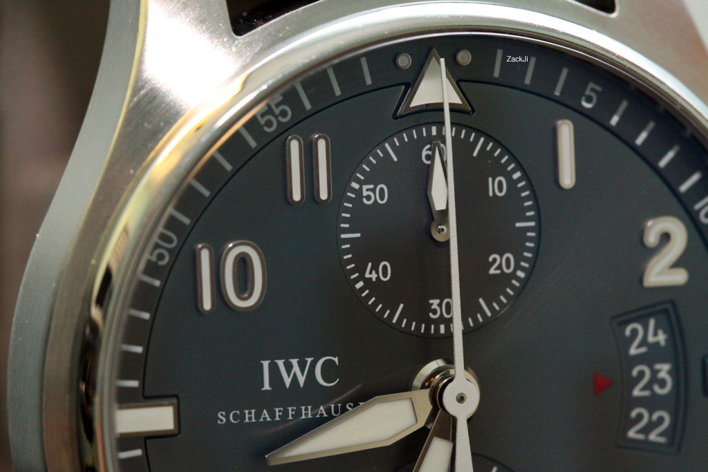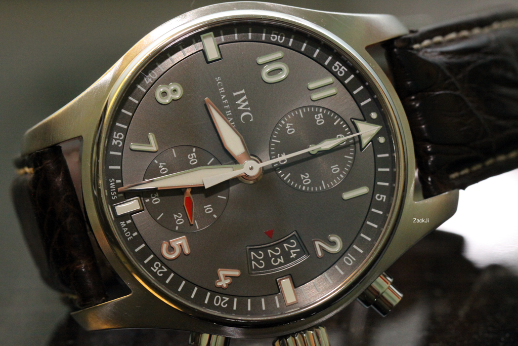 ·This is my gorgeous IWC Pilot's Chronograph Spitfire, reference number IW387802, with the stunning ardoise grey dial. At 43mm, this watch is versatile for most wrists. The standout features of this particular watch over other IWC pilot chronographs for me are two-fold - the gorgeous sunray effect ardoise grey dial, and the in-house IWC chronograph caliber 89365. Simply put, this watch is breathtaking in person!