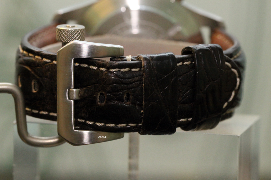 The watch is in good condition, appearing fairly clean to my naked eyes; any minor desk diving marks on the case can be polished out easily, if desired. The crystal appears largely clean to my eyes as well. The mounted strap is a generic, unstamped brown leather strap with a generic and unstamped tang buckle. The strap has been worn-in and should be replaced in the next few months or so with routine wear. Bottom line, this is a good and honest used watch ready to be worn and enjoyed.