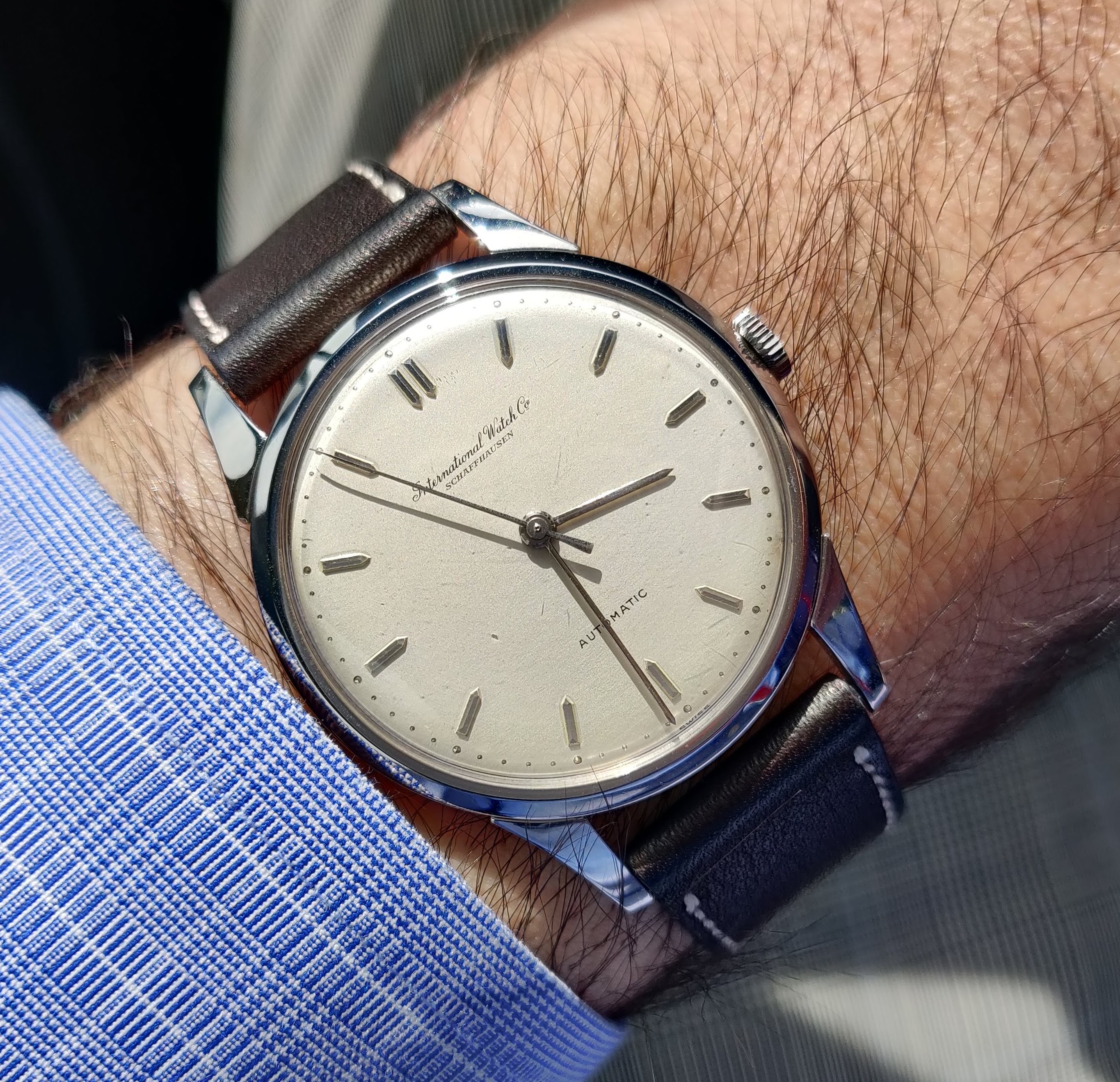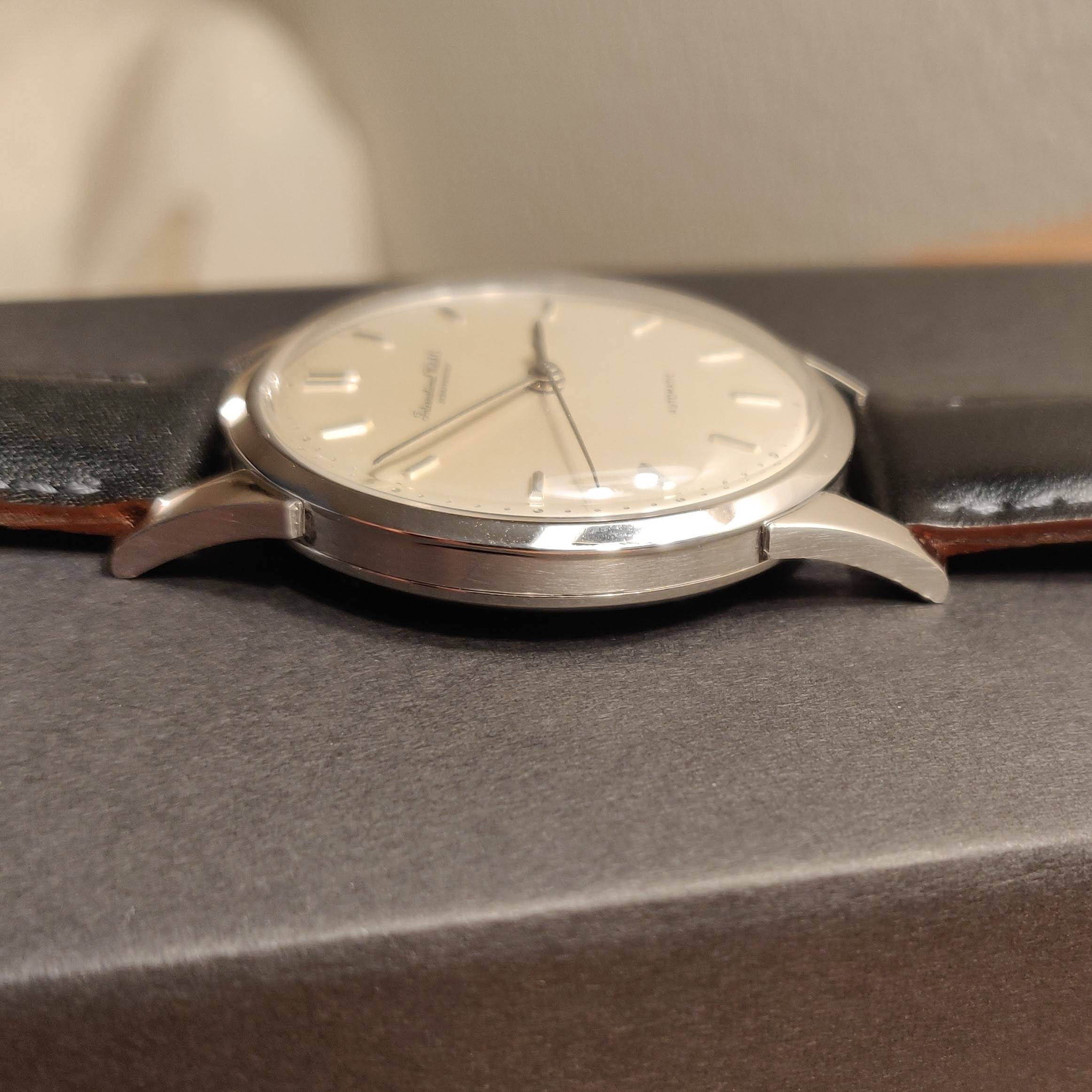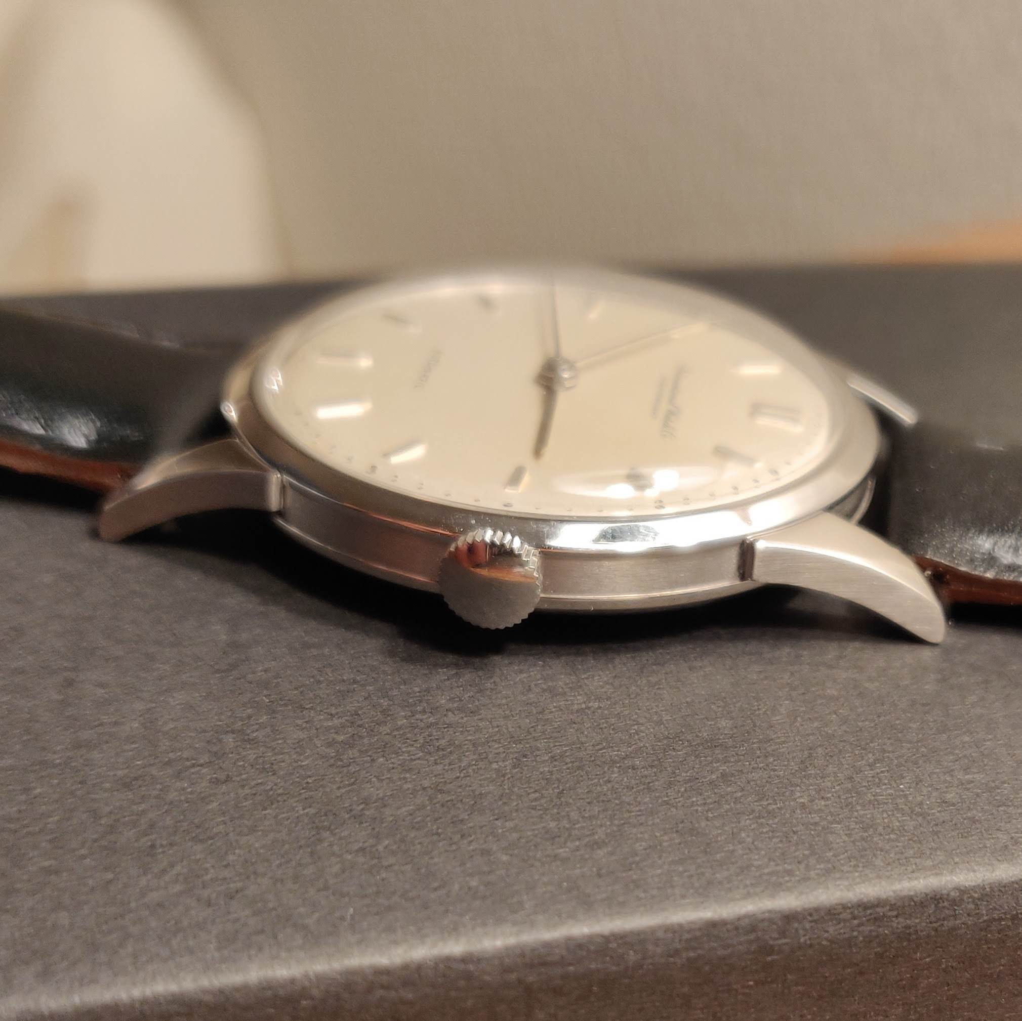 ·Uncommonly seen platinum case iwc calatrava style cal 853. The case is 35.5x44.5 mm and wears beautifully. The case is in excellent condition likely having been very lightly maintained over the years. Dates to the early 1960s. As is typical this platinum case is marked pt950 with Japanese hallmarks. Beautiful opaline dial is untouched with original hands and crown. Movement service is unknown but the watch is running and keeping time well. I’ve worn it sparingly as the owner over the last 3 years.
