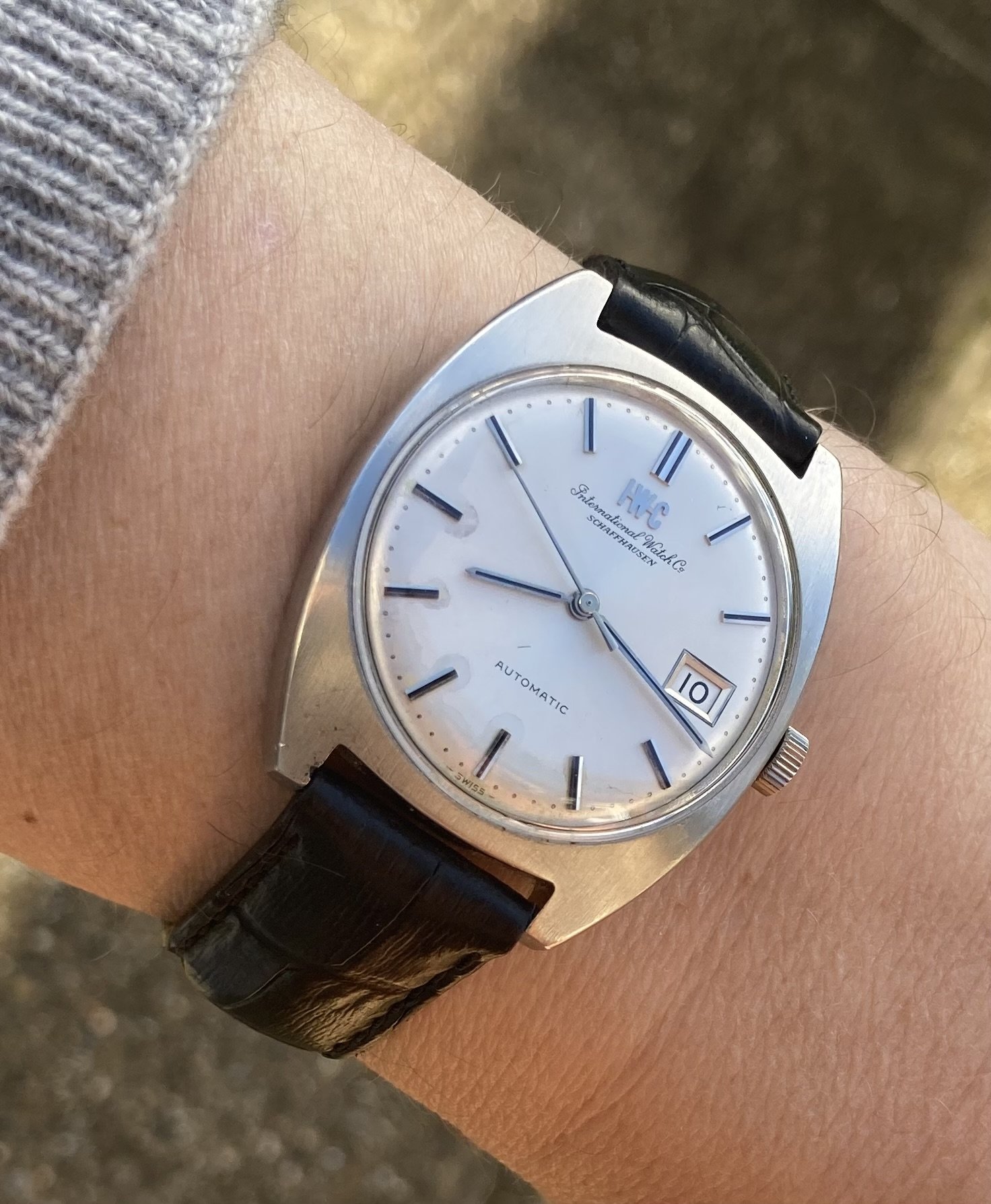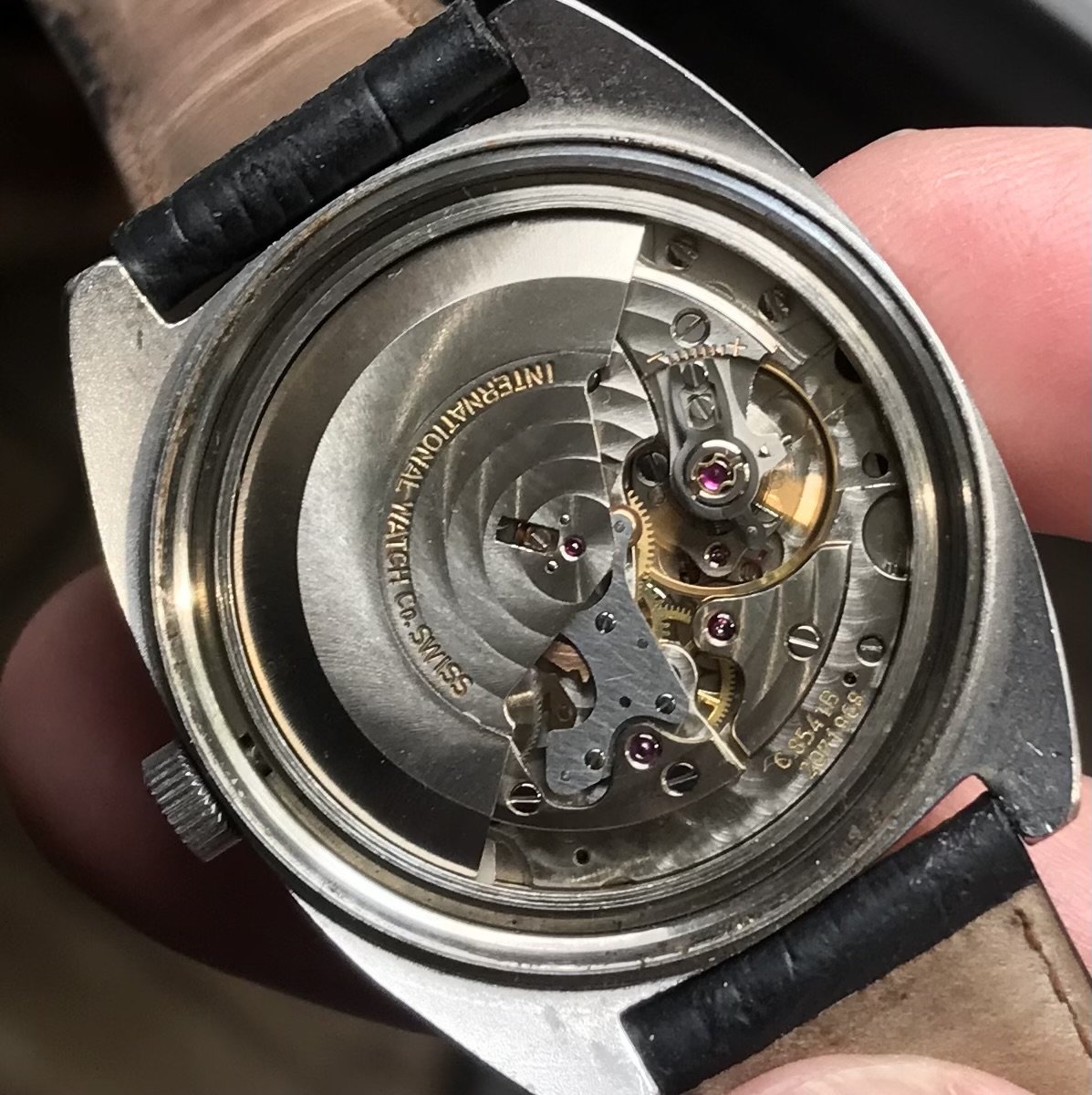 Movement - 8541B 'Pellaton' automatic with hacking feature and quick date set by moving the hands between 10 and midnight. IWC from this era made some of the best and most accurate movements. Keeping good time and all functions working but no service history known.