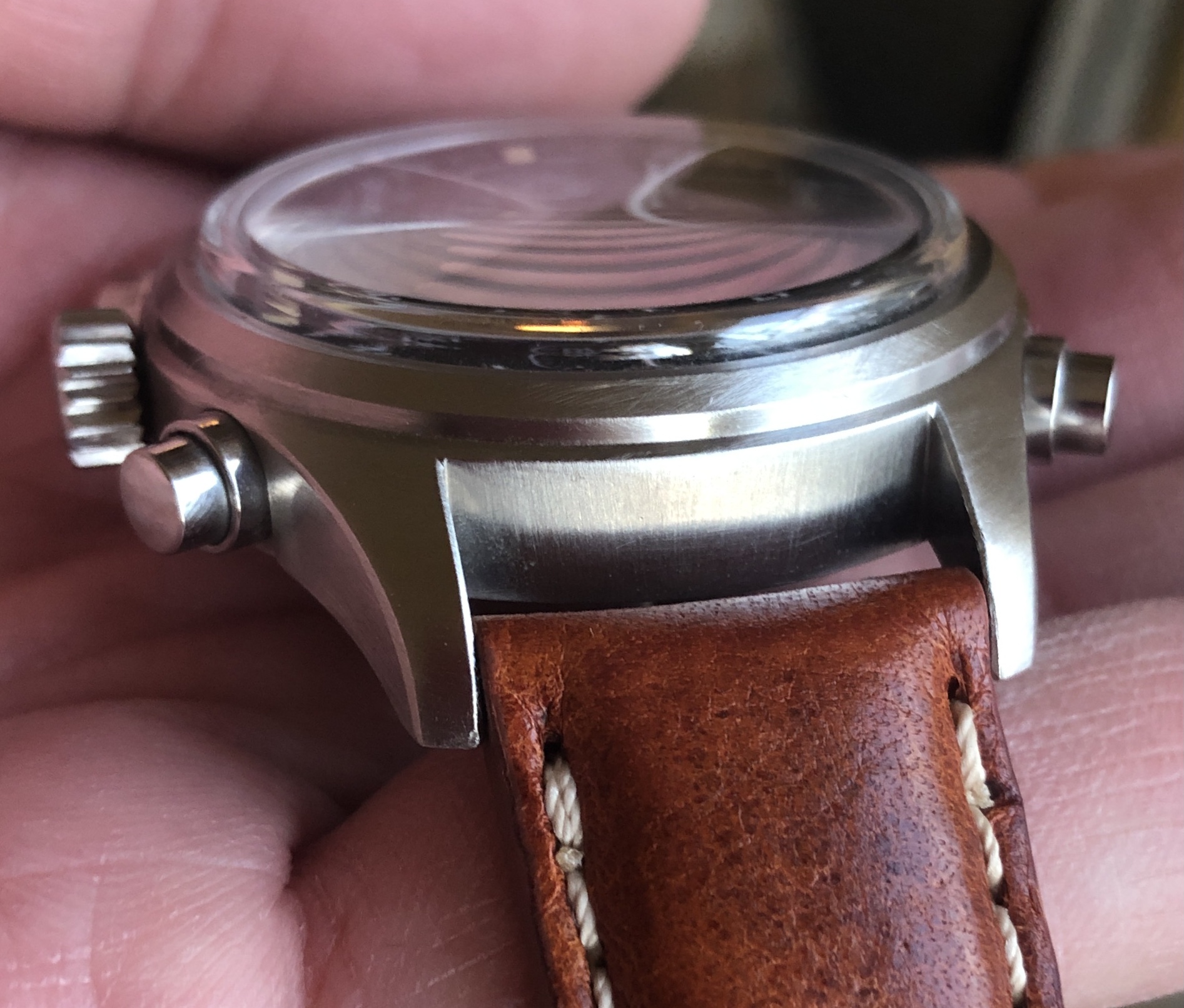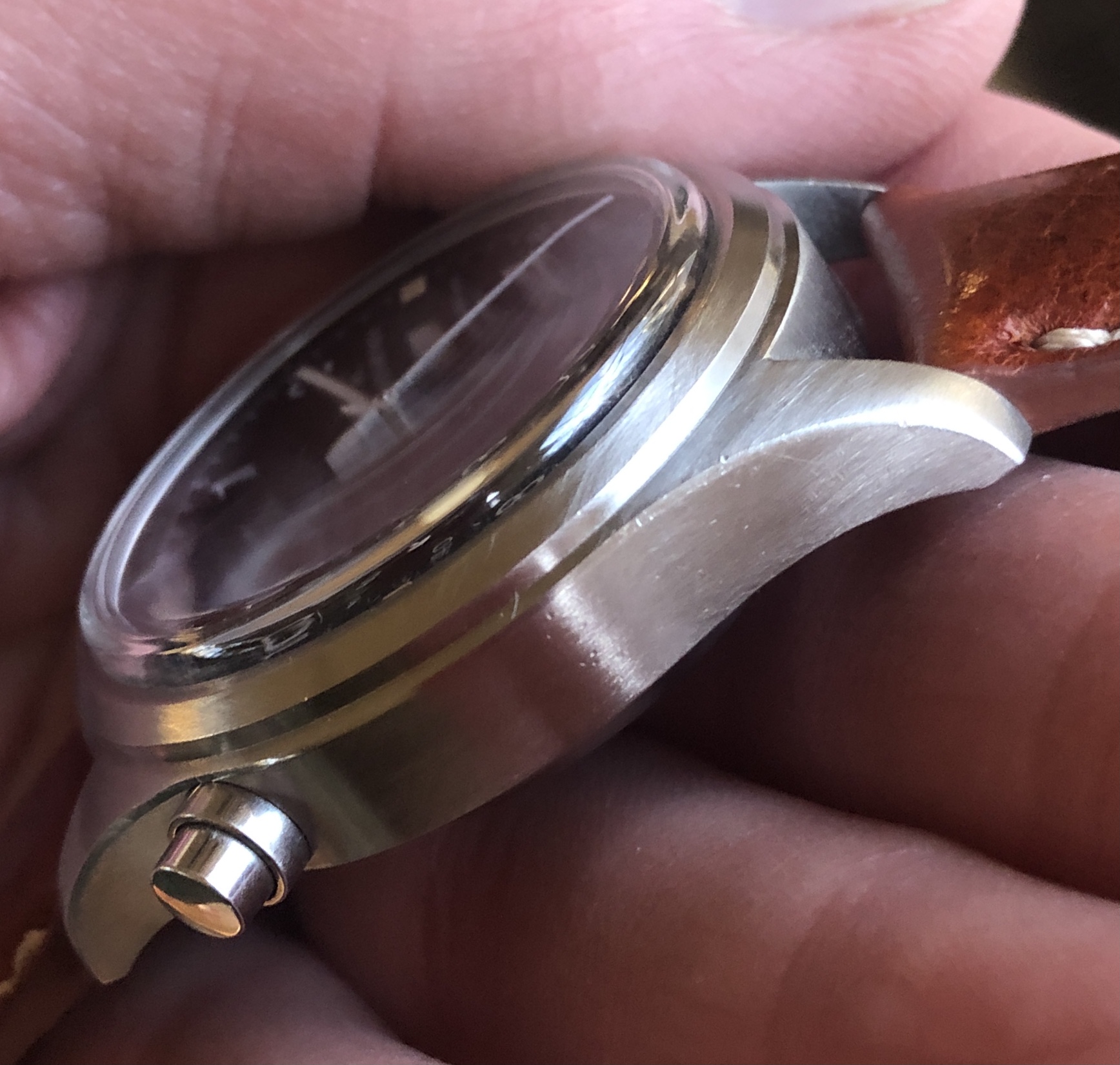 Dial is perfect with the tritium lume showing a nicely aged ivory color and a decidedly military look overall.