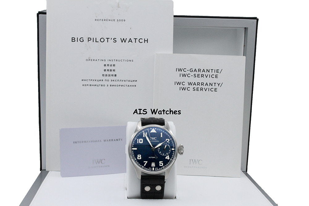 Up for sale is an IWC Schaffhausen IW500908 Big Pilot Le Petite Prince 46MM Blue Dial SS Box & Papers. The timepiece is in excellent condition.