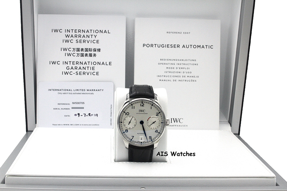 Up for sale is an IWC Schaffhausen Portuguese 42.3MM Automatic 7 Day IW500705 Box & Papers. The timepiece is in excellent condition.