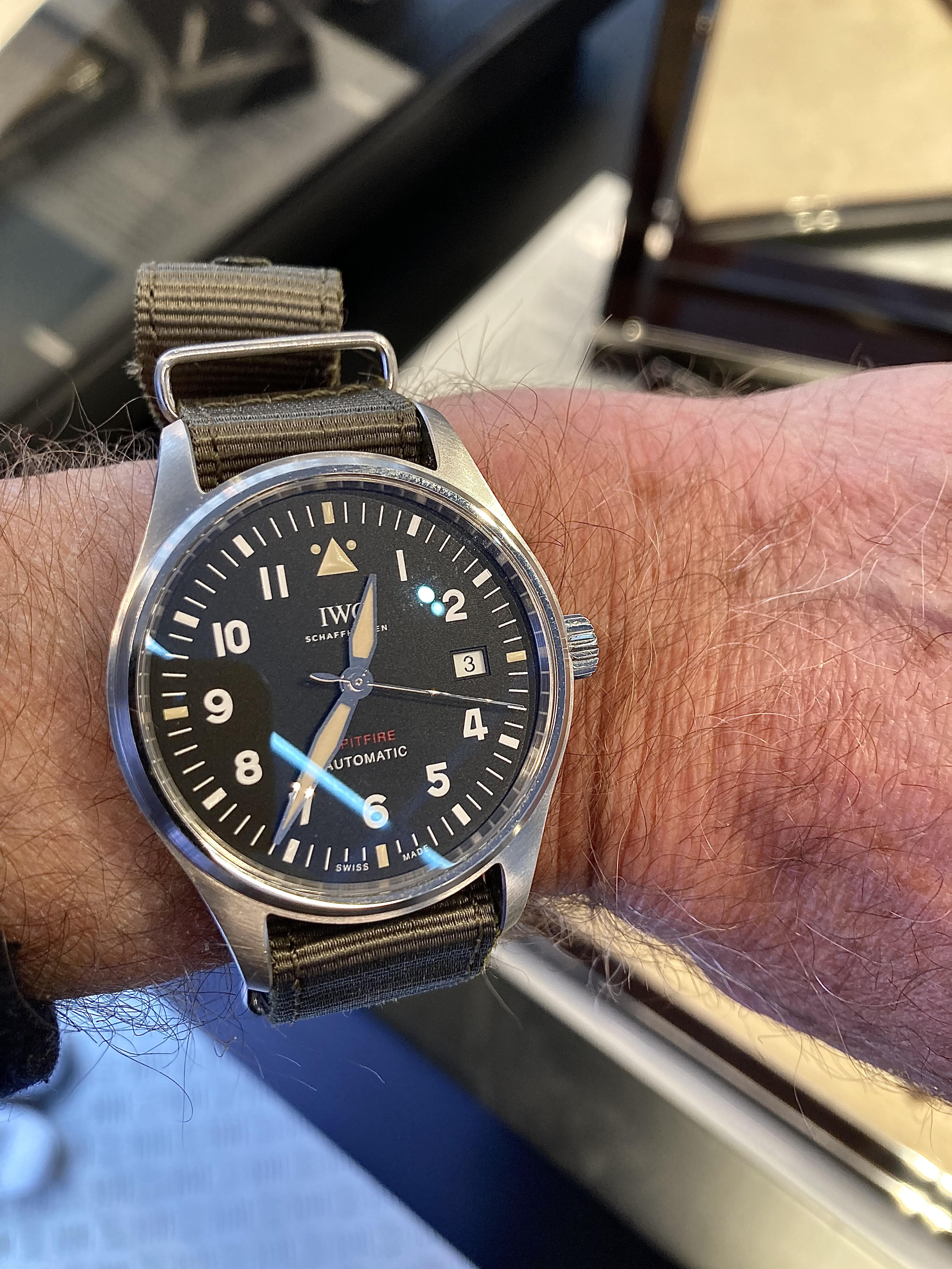 Posts 8,632 Likes 71,410 Spruce ·Nov 3, 2021·Sunburst dial fan Popped into the pop-up IWC boutique in Covent Garden market. The staff were lovely and I was persuaded to try on the smallest watch on display. I think I need to wait until my wrists have grown 😀