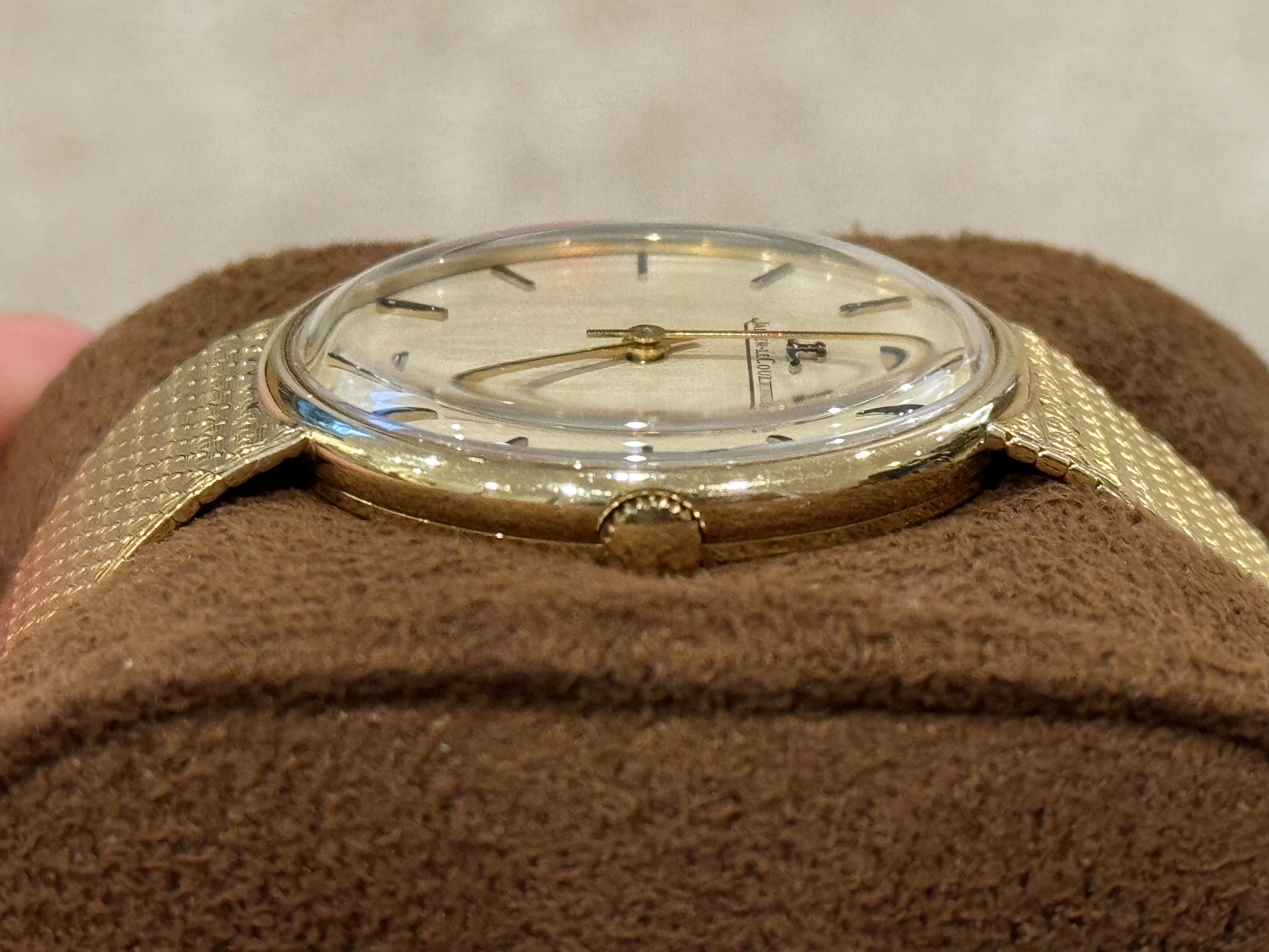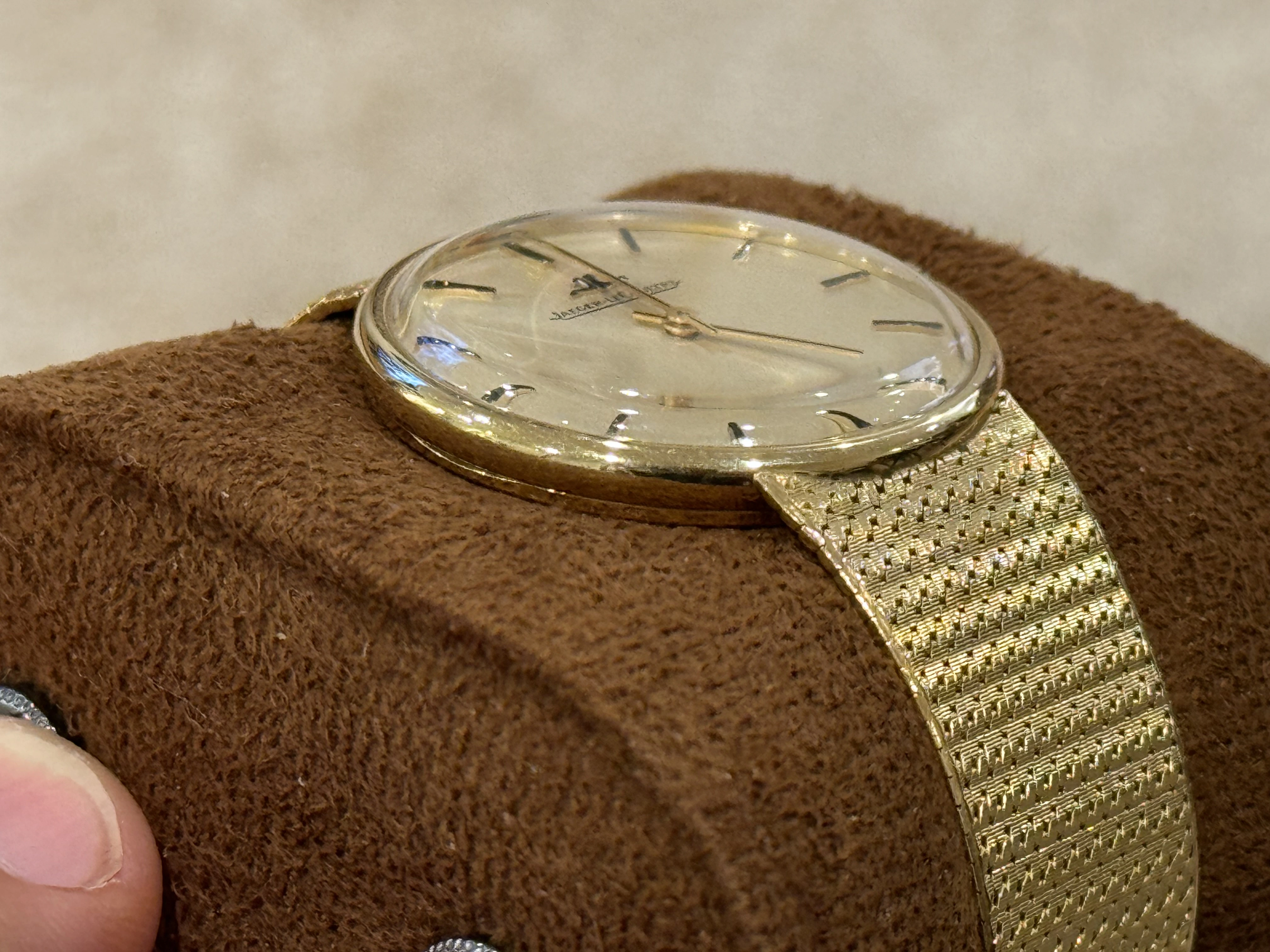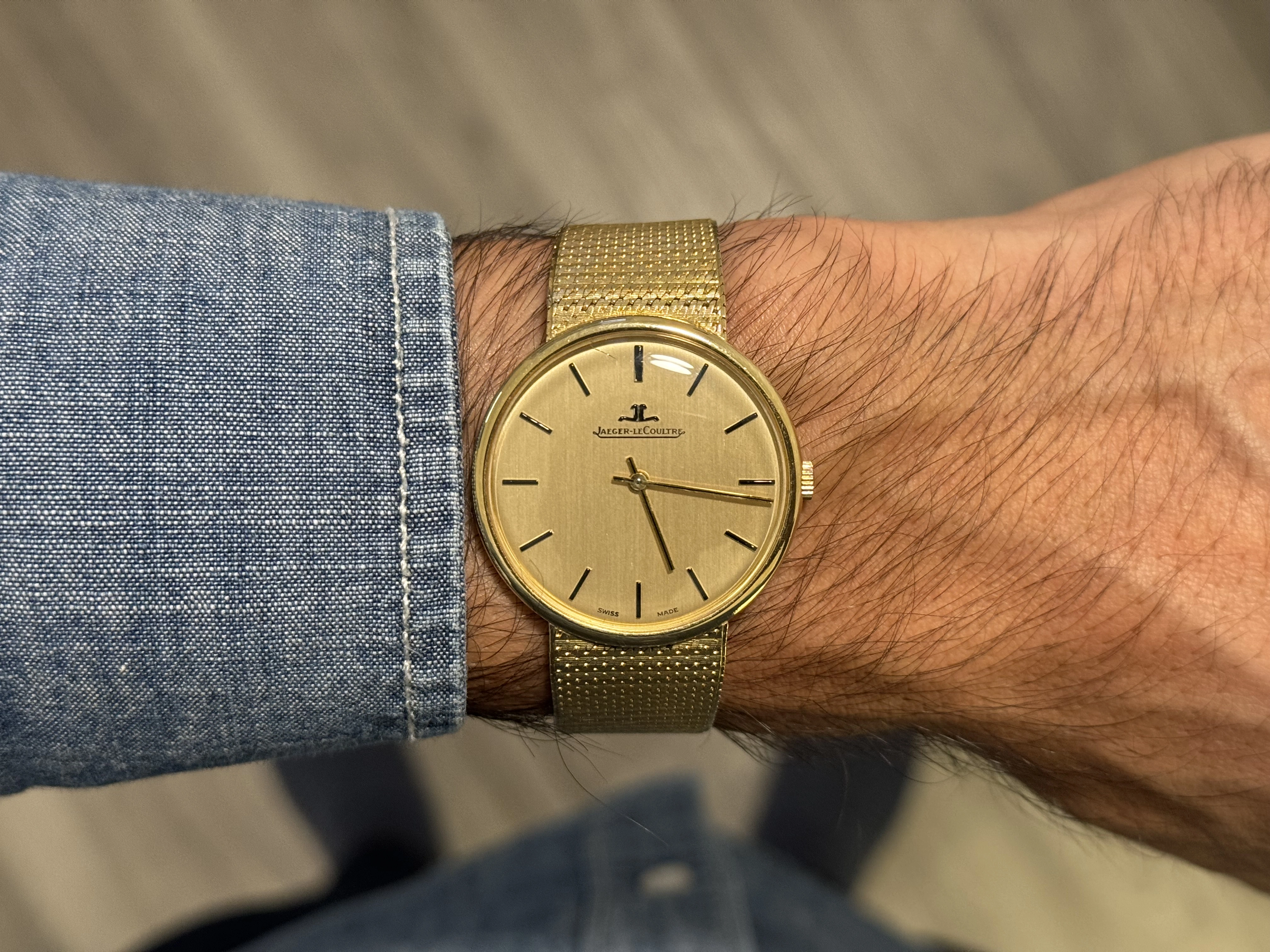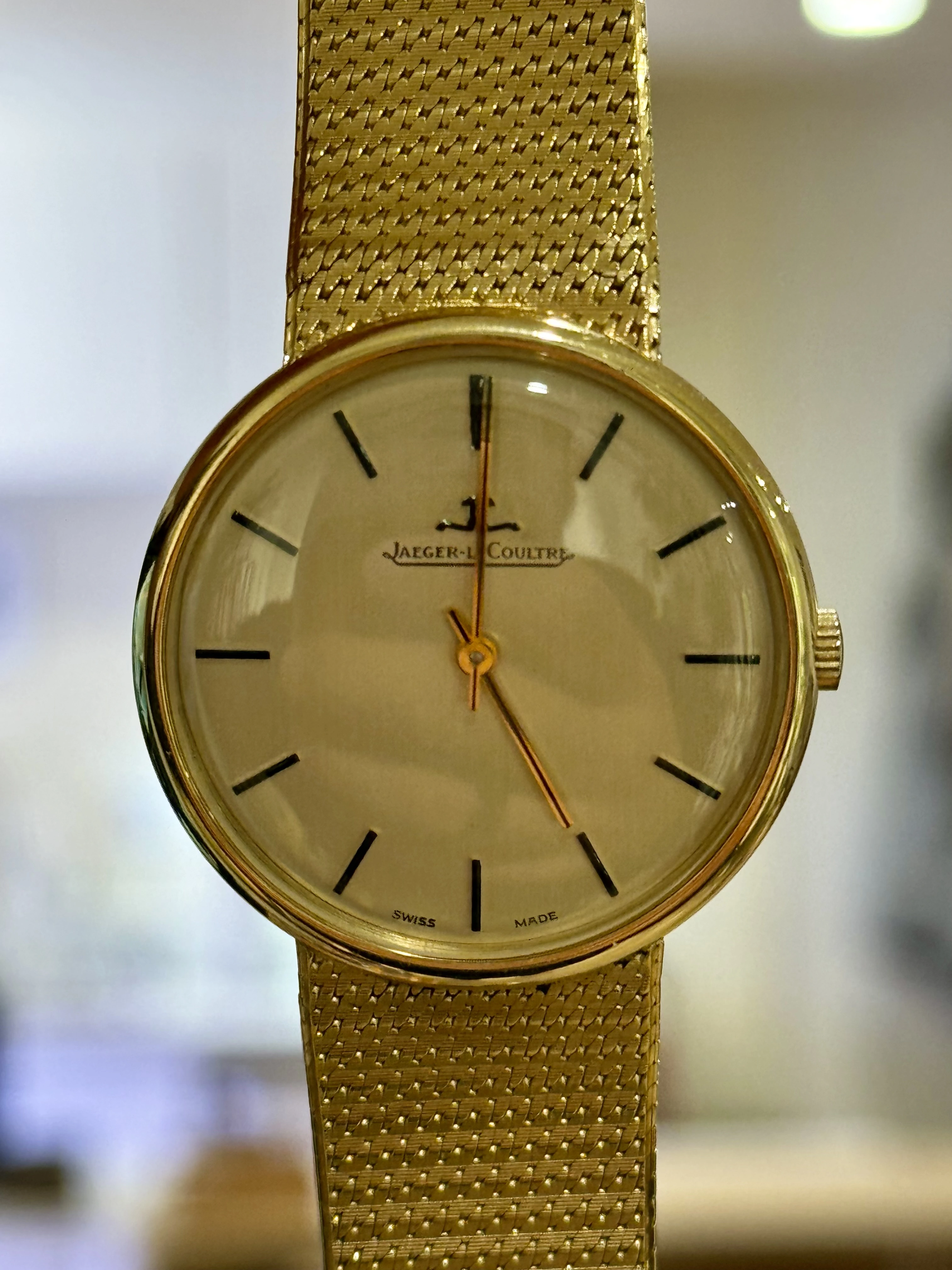 ·Very slick 18kt yellow gold dress watch with integrated bracelet from JLC.