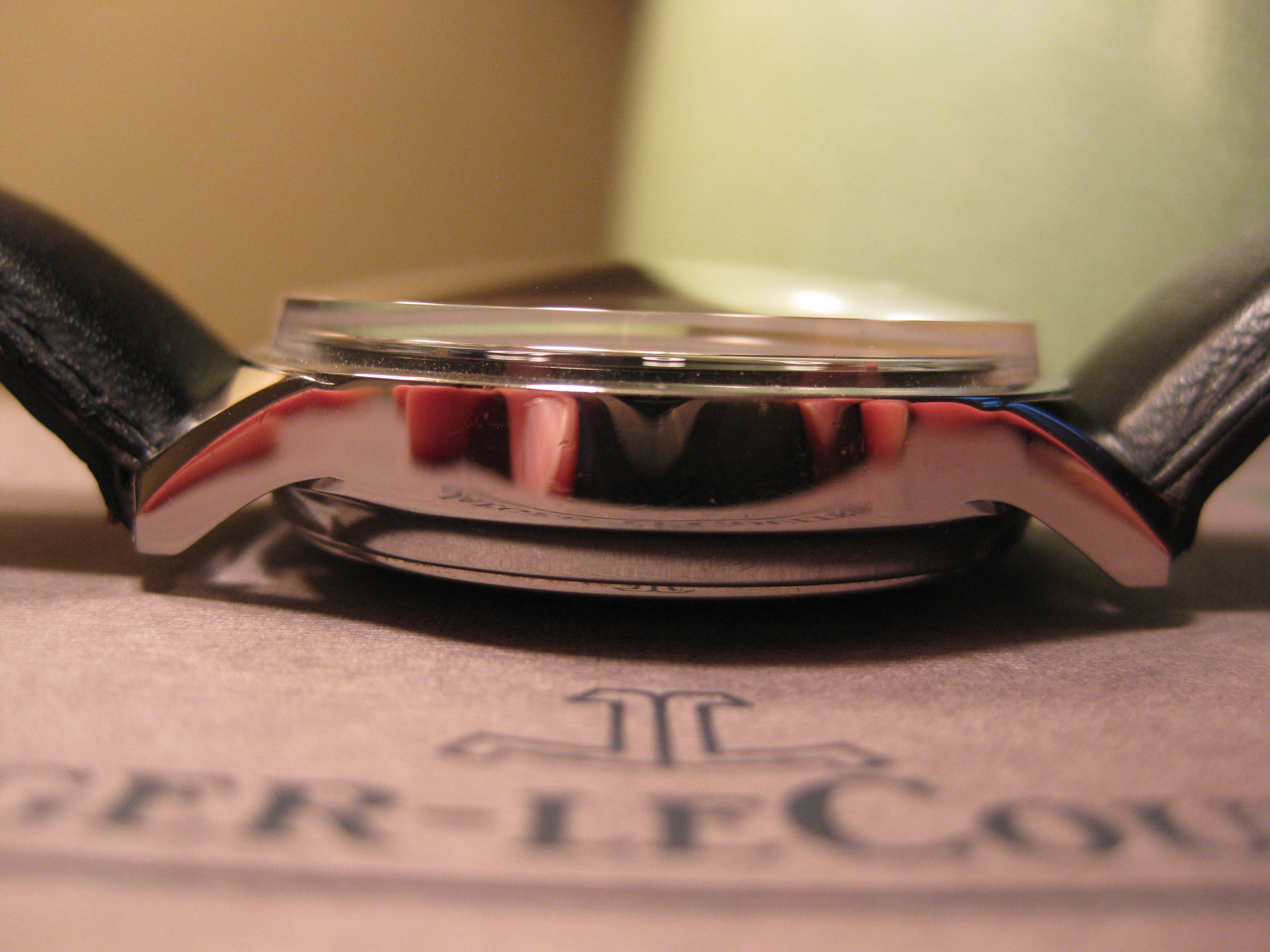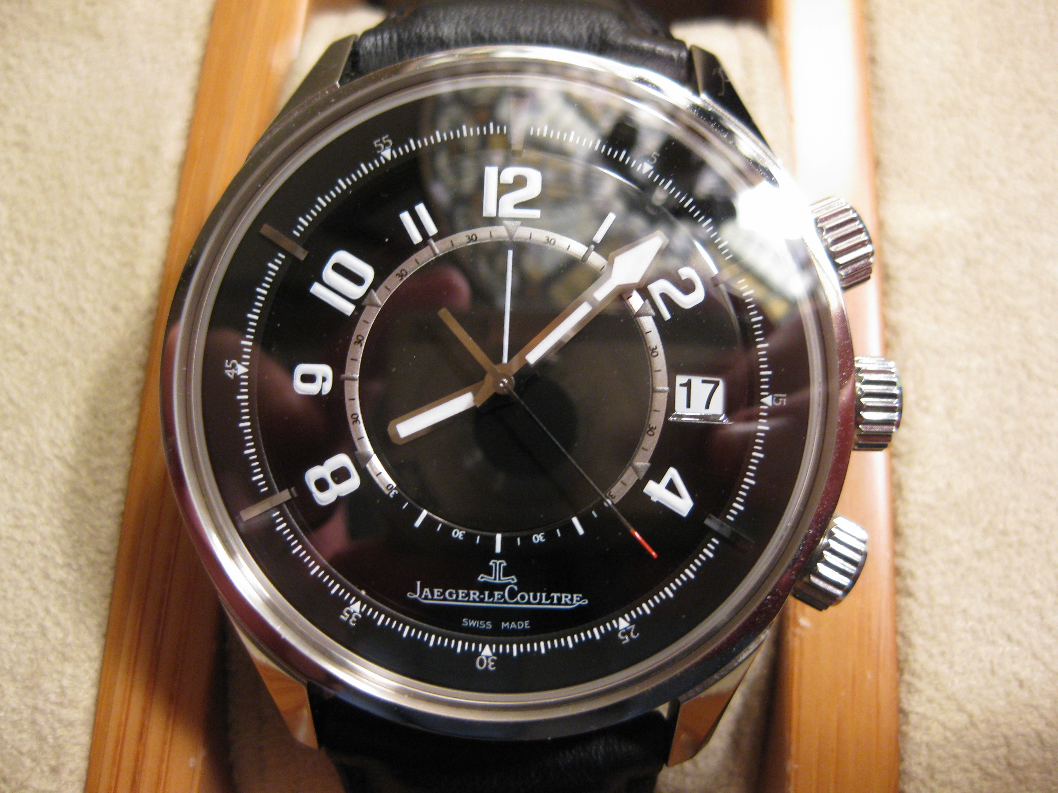 It's 42mm, with the JLC world famous caliber 918 movement, appox. 45 hours of reserve, and has a awesome alarm feature. Watch is extremely comfortable on the wrist. The JLC black leather band is butter soft. It's been worn, but looks great and has a ton of life left. Overall I'd rate the watch at 95%, has some very light, unnoticeable, hairlines here and there. I have not had it officially timed, but when set to my phone it's running perfect. Comes complete with everything from the A.D. Warranty card is stamped and dated (expired warranty)