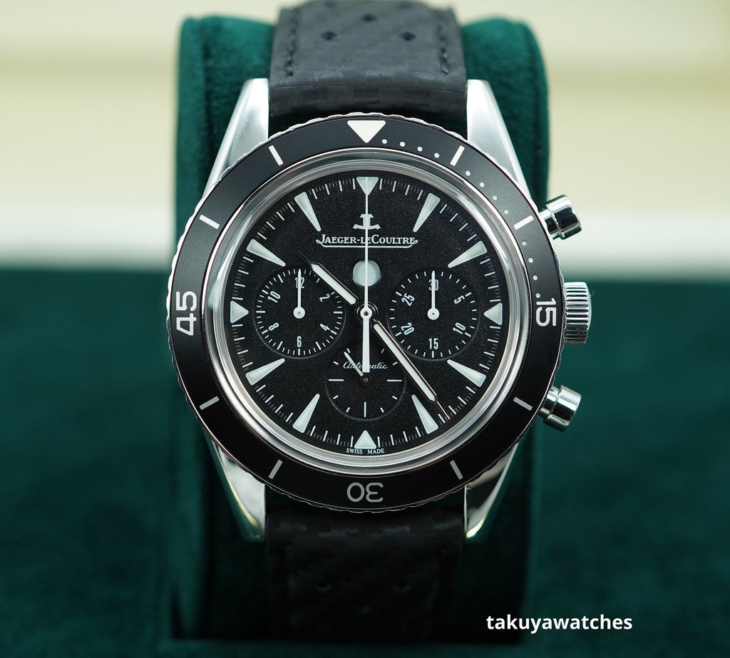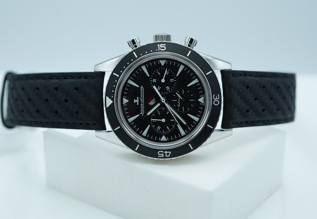 An Excellent Condition & Very Beautiful 42mm Jaeger LeCoultre 2068570 Deep Sea Chronograph Automatic Movement, Stainless Steel Case with Aluminum Bezel. Its on Black Calf Leather Strap with Stainless Steel Buckle. Purchased from JLC Authorized Dealer in 09.2015. The Watch received Full Services from JLC US Service Center in 03.2023. Watch running perfect with Non Issues. Full Set.