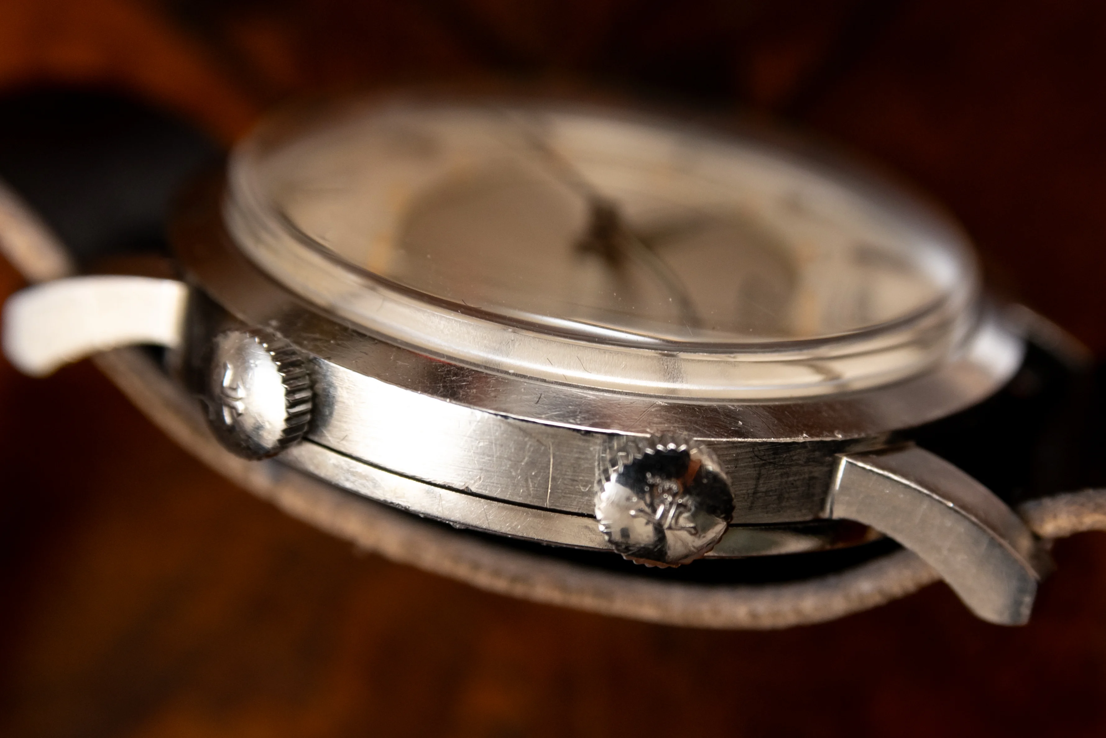 Case: Worn but sharp, small indentation on the left side of the caseback.