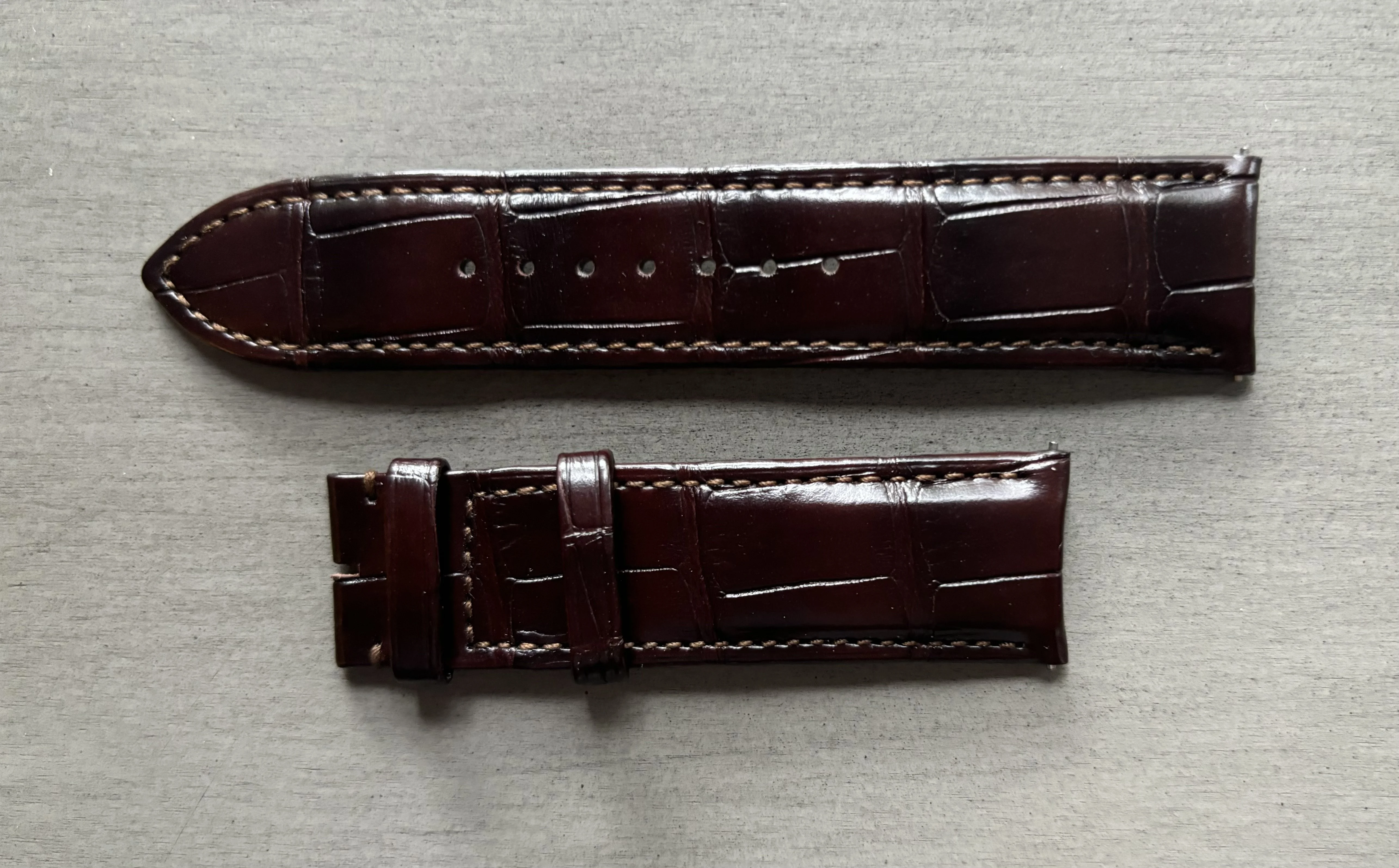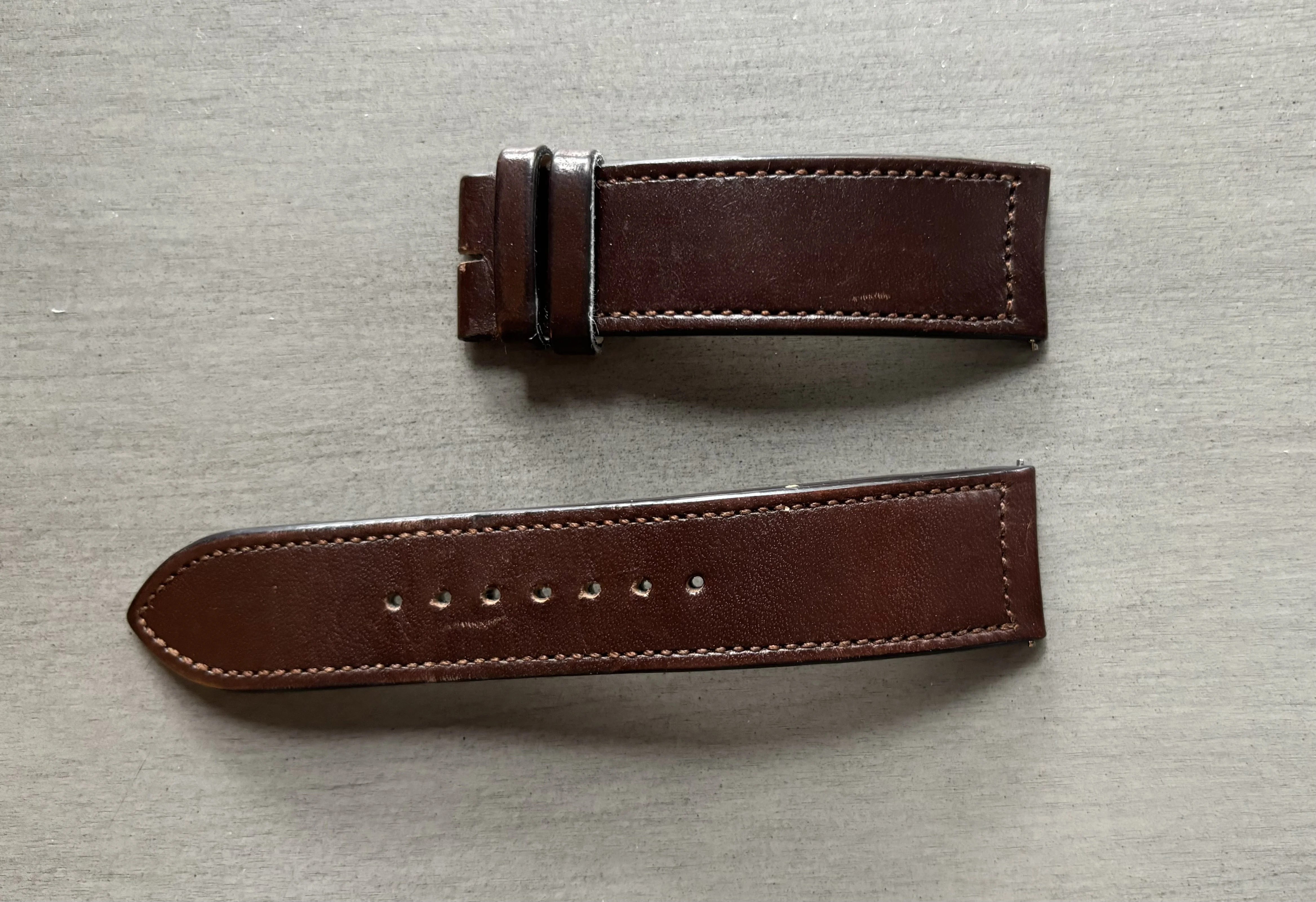 Additionally, a brown calf leather strap with minimal wear is also included, providing a slightly more casual, yet equally stylish option.