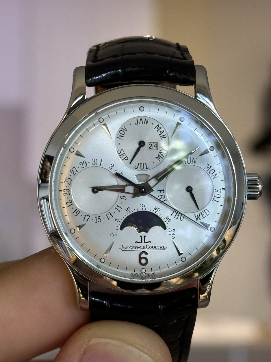 Automatic perpetual calendar, with all date settings synchronized via a single pusher (so no need to set anything independently, including the moon phase).