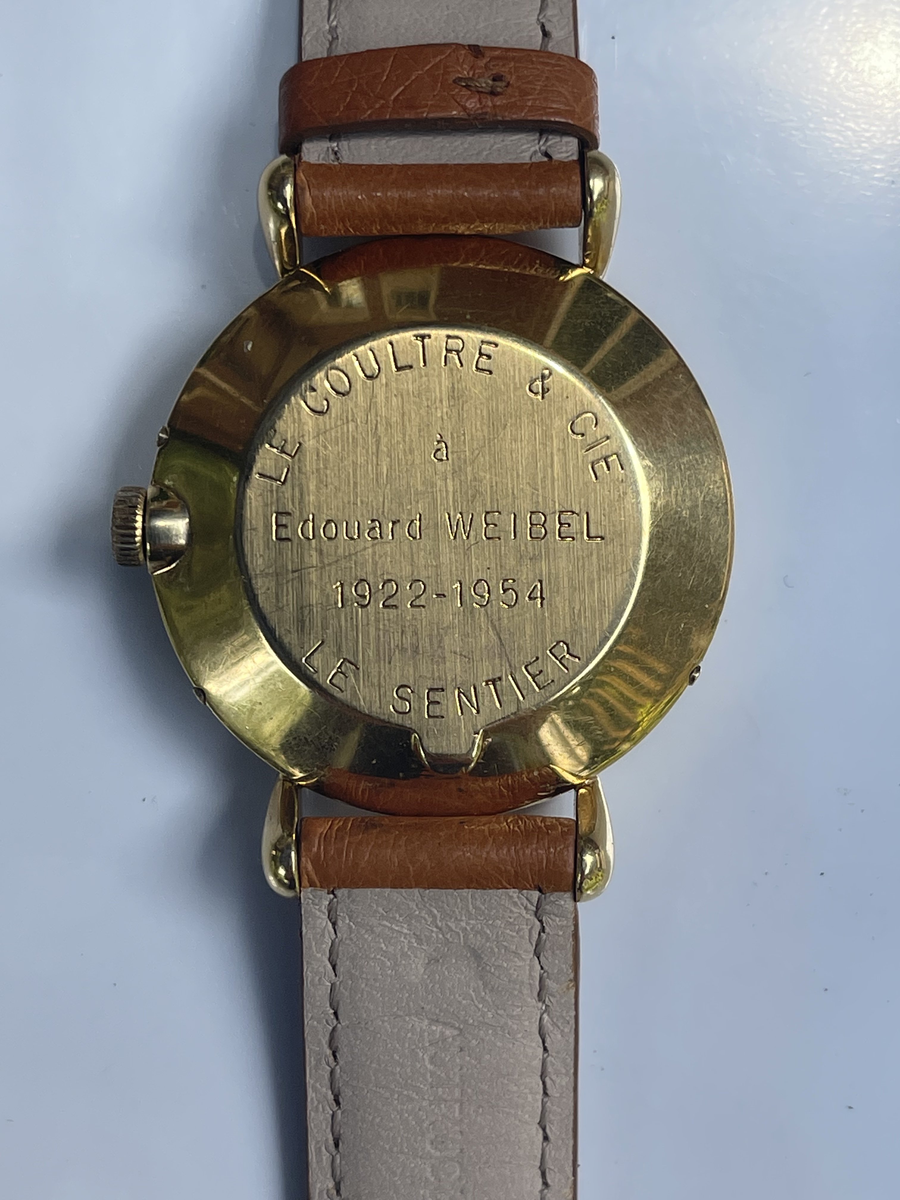 It was presented by LeCoultre & Cie to an Edouard Weibel in 1954, for 32 years of service. My Google search for this gentleman has come up empty, but he must have been a valued employee.