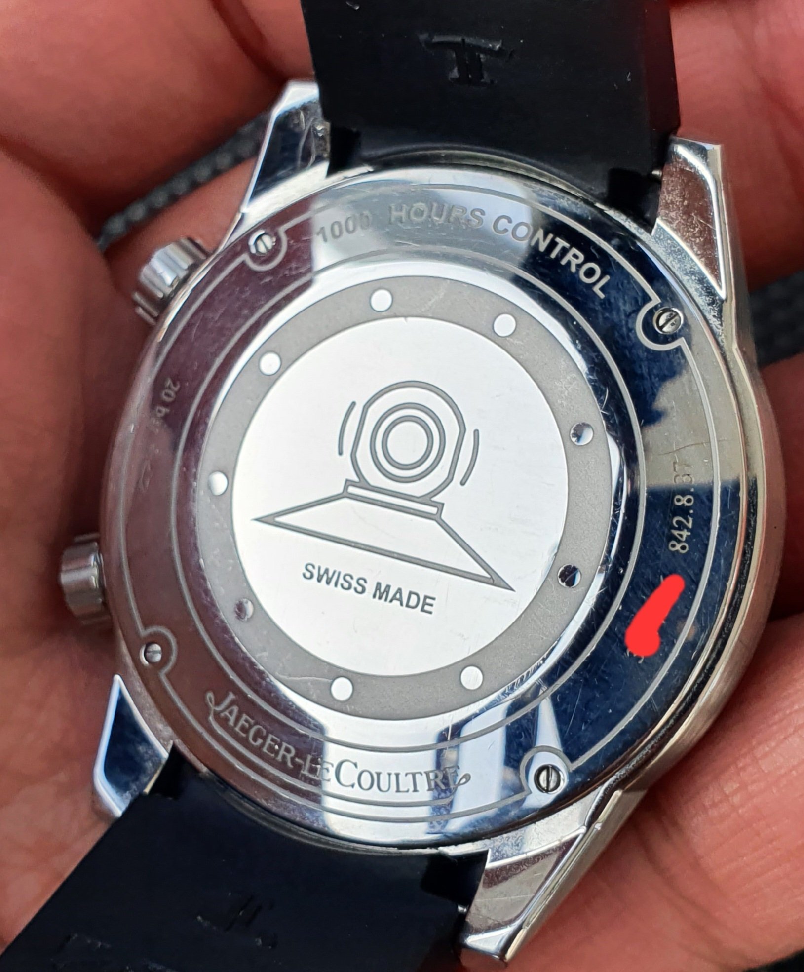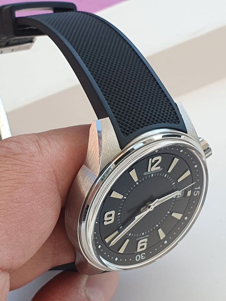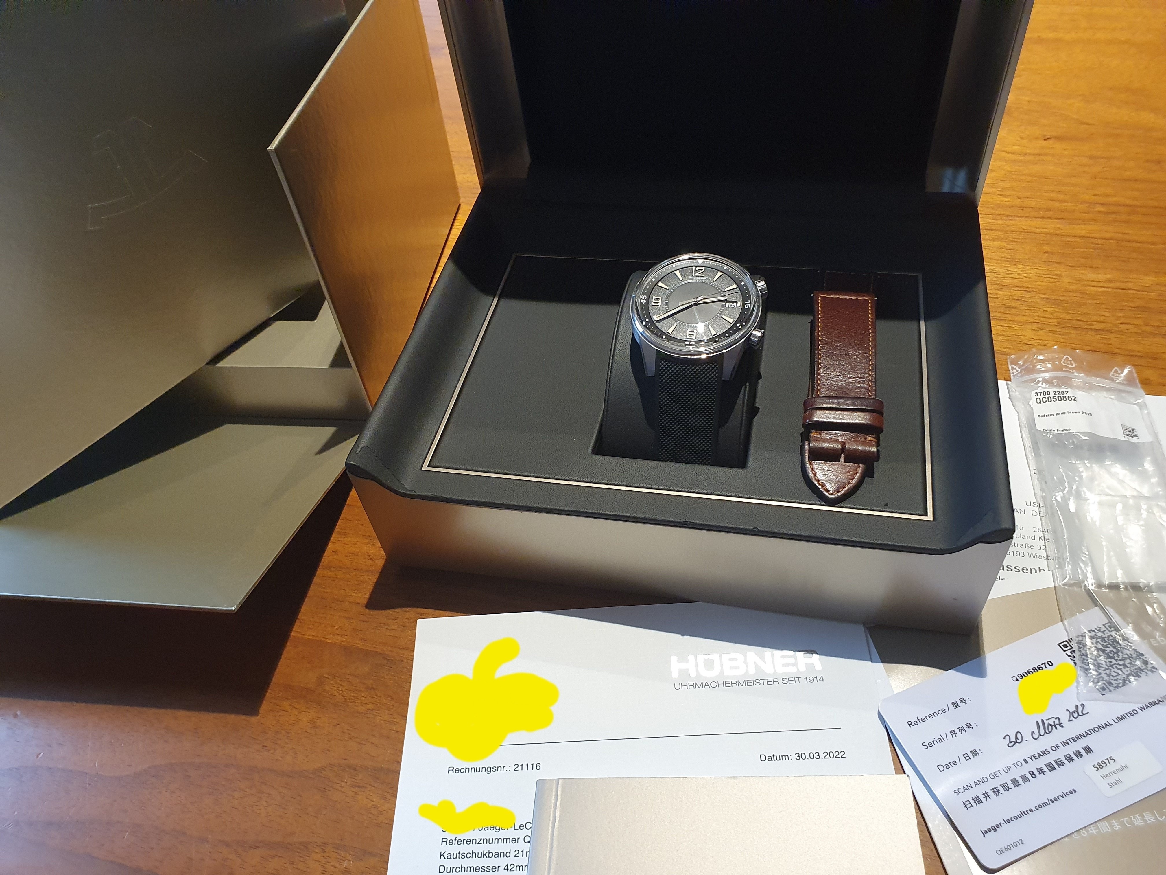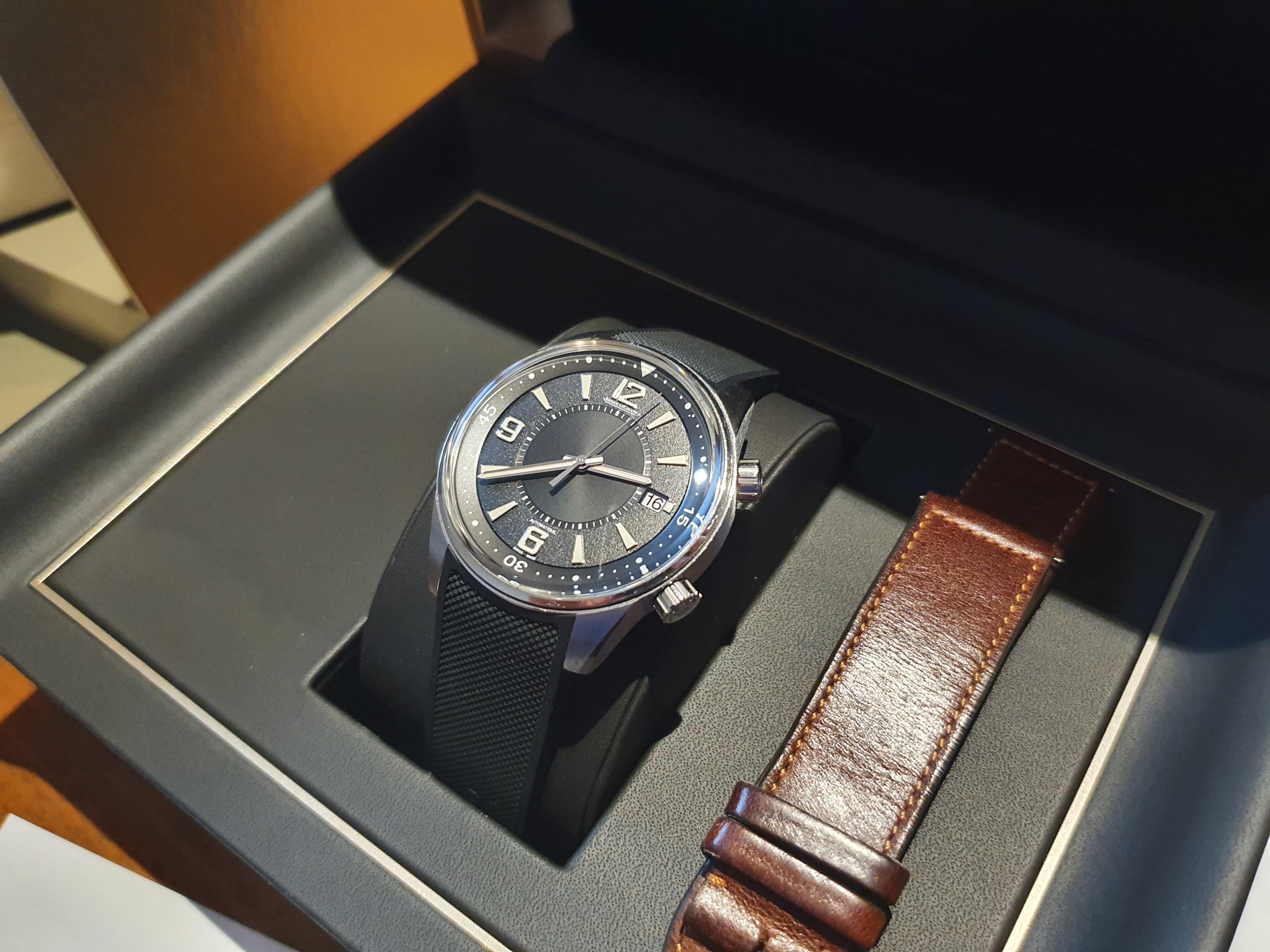 Watch comes obviously in full set on orignal rubber strap, with box, papers + an additional JLC brown leather strap.