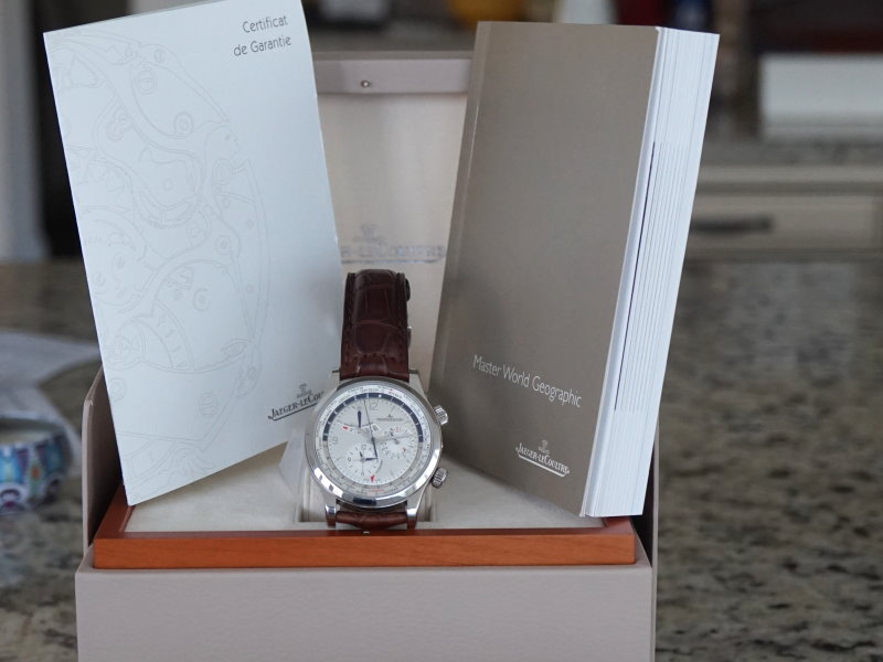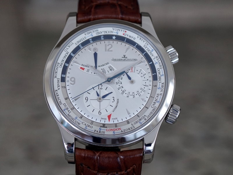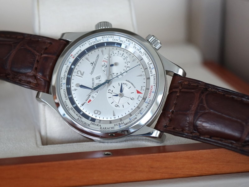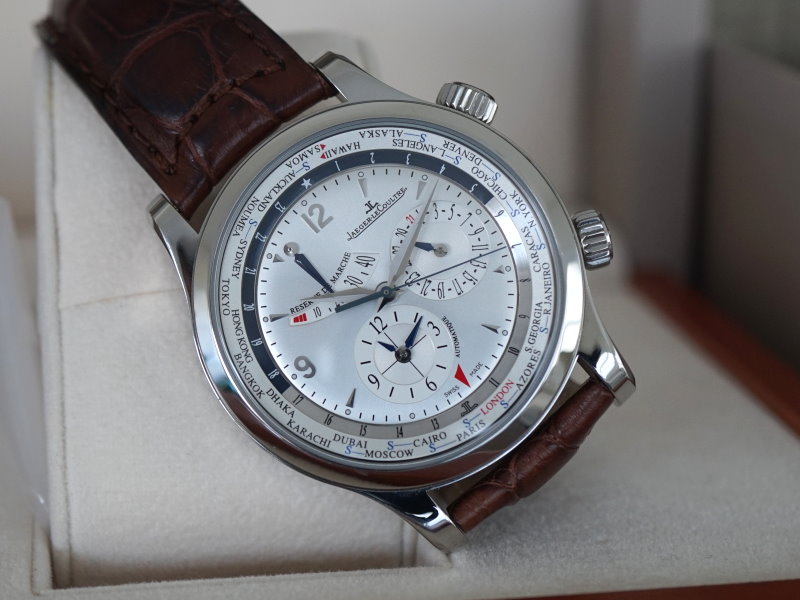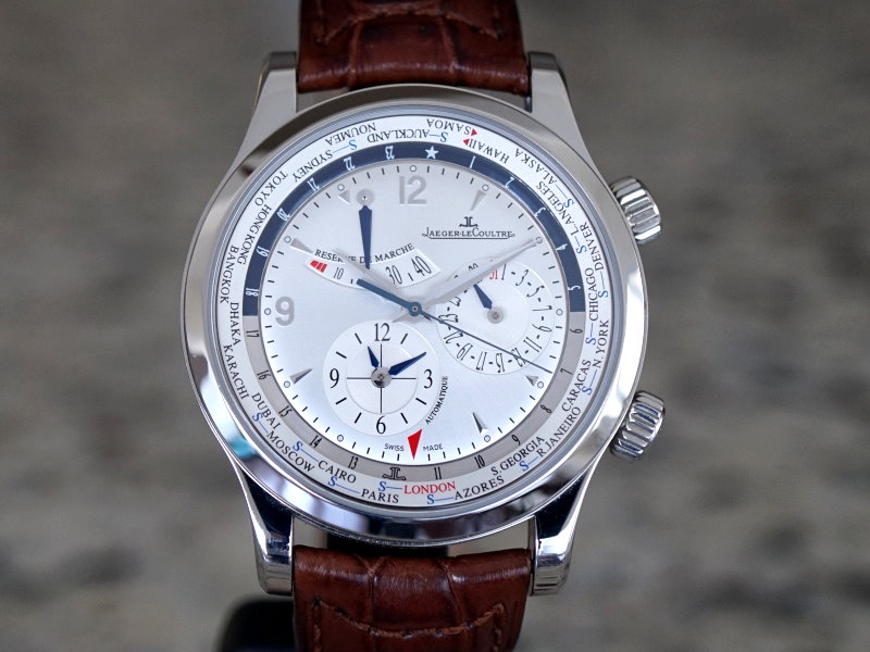 , 152.84.20, stainless steel on a strap with a stainless steel double-fold over buckle, automatic movement, centered sweep seconds hand, date, second time zone (world display), unidirectionally rotating bezel via crown with world time zone scale, power reserve indicator, silver dial with applied silver hour indicators, luminescent hands, sapphire crystal, display back, water resistant to 50 meters, diameter: 41.5mm, thickness: 12.8mm, Mint with box and papers