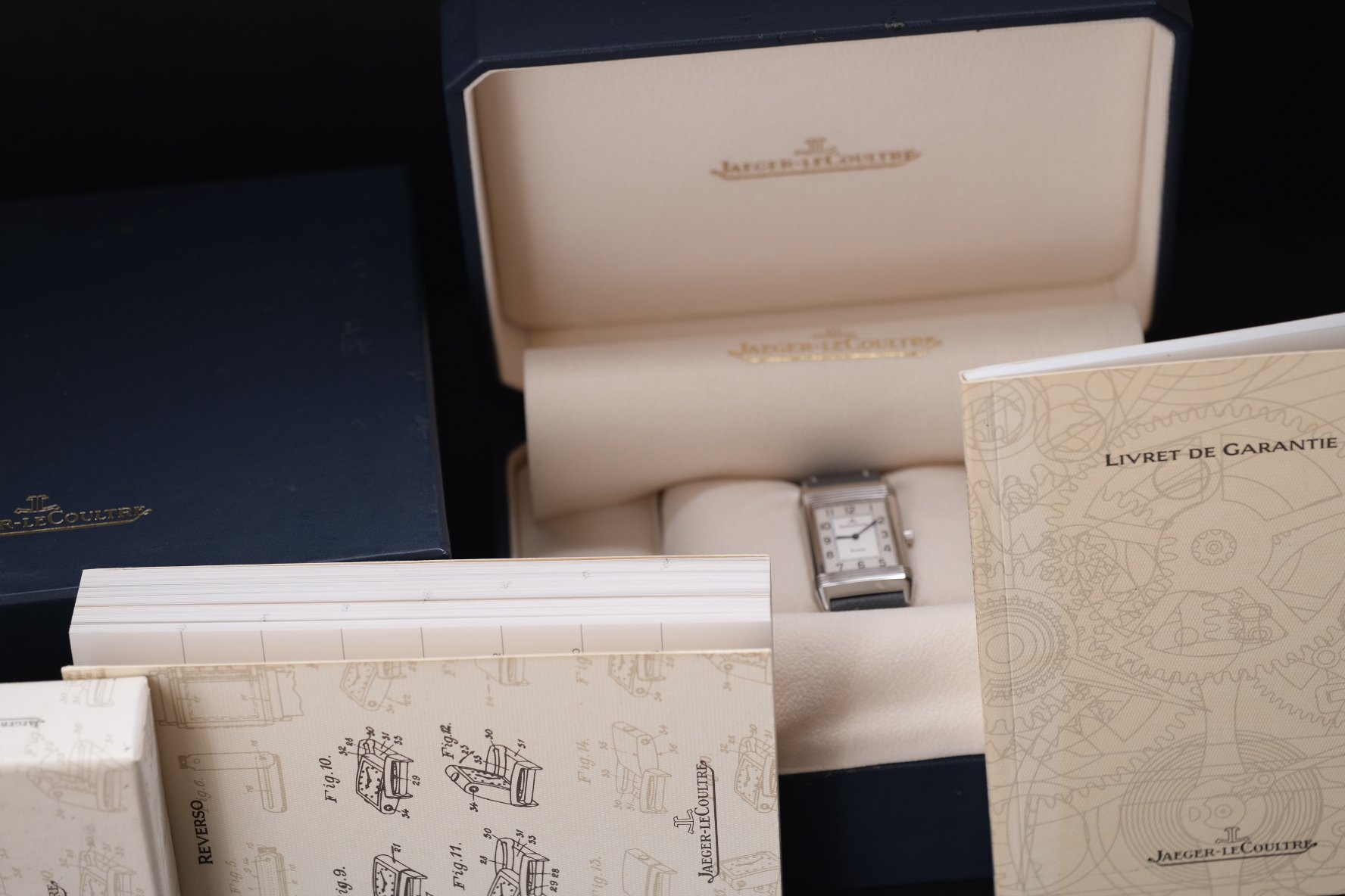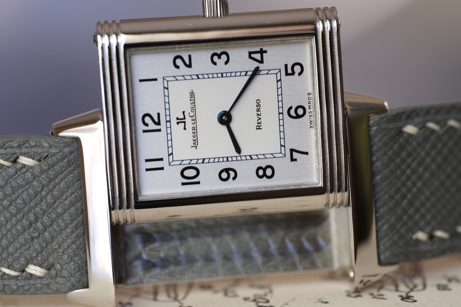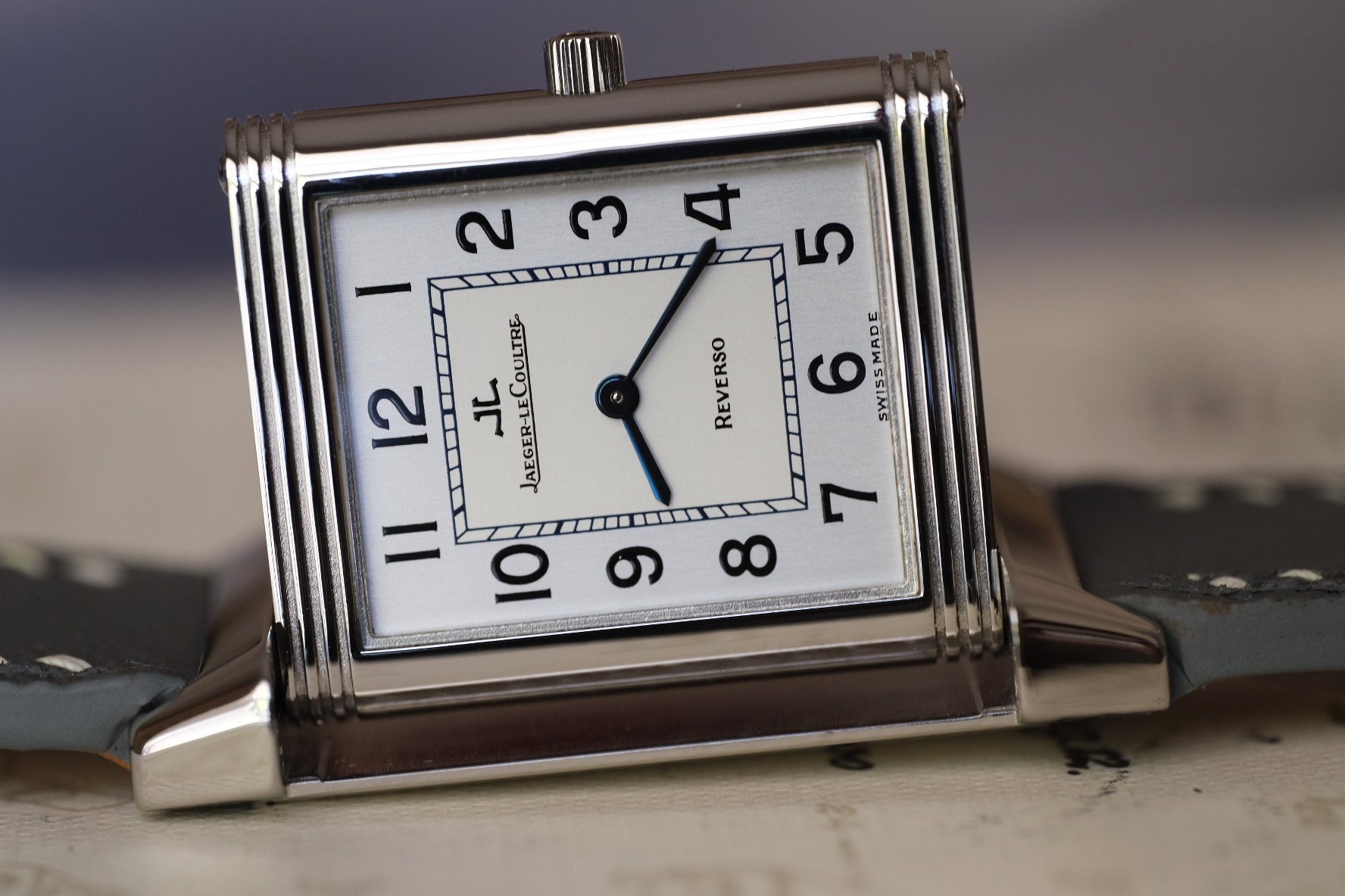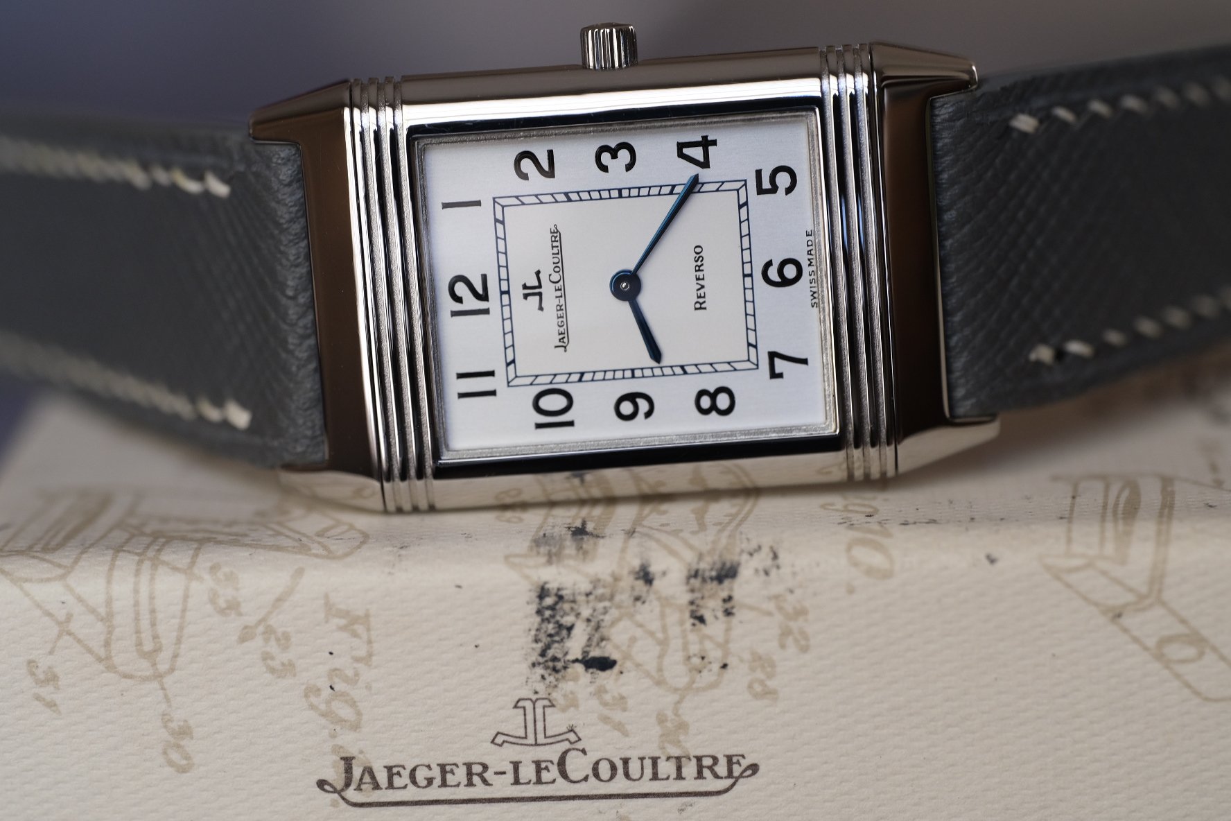 ·“Necessity is the mother of invention.” OK, so it’s 1931, you’re playing a lot of Polo (as one does) but your watch keeps getting smashed. What do ya do? Well, if you’re Jaeger-LeCoultre you revolutionize the wristwatch by creating a reversing mechanism that allows you to flip your watch over and protect the crystal! Fast forward all these years later and here we have the modern iteration of that icon, the JLC Reverso! And this is an amazing example, the men’s small Classique in a DOUBLE BOXED set!