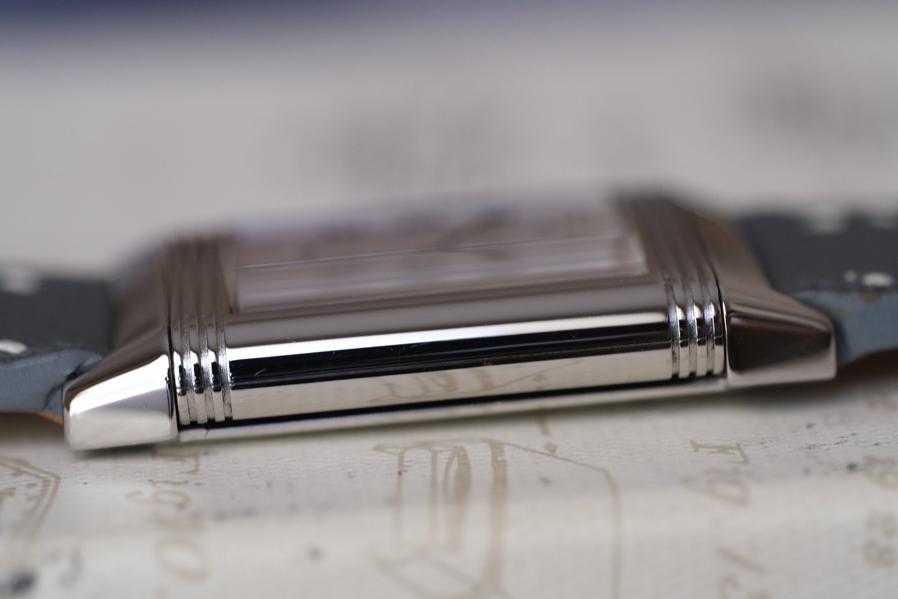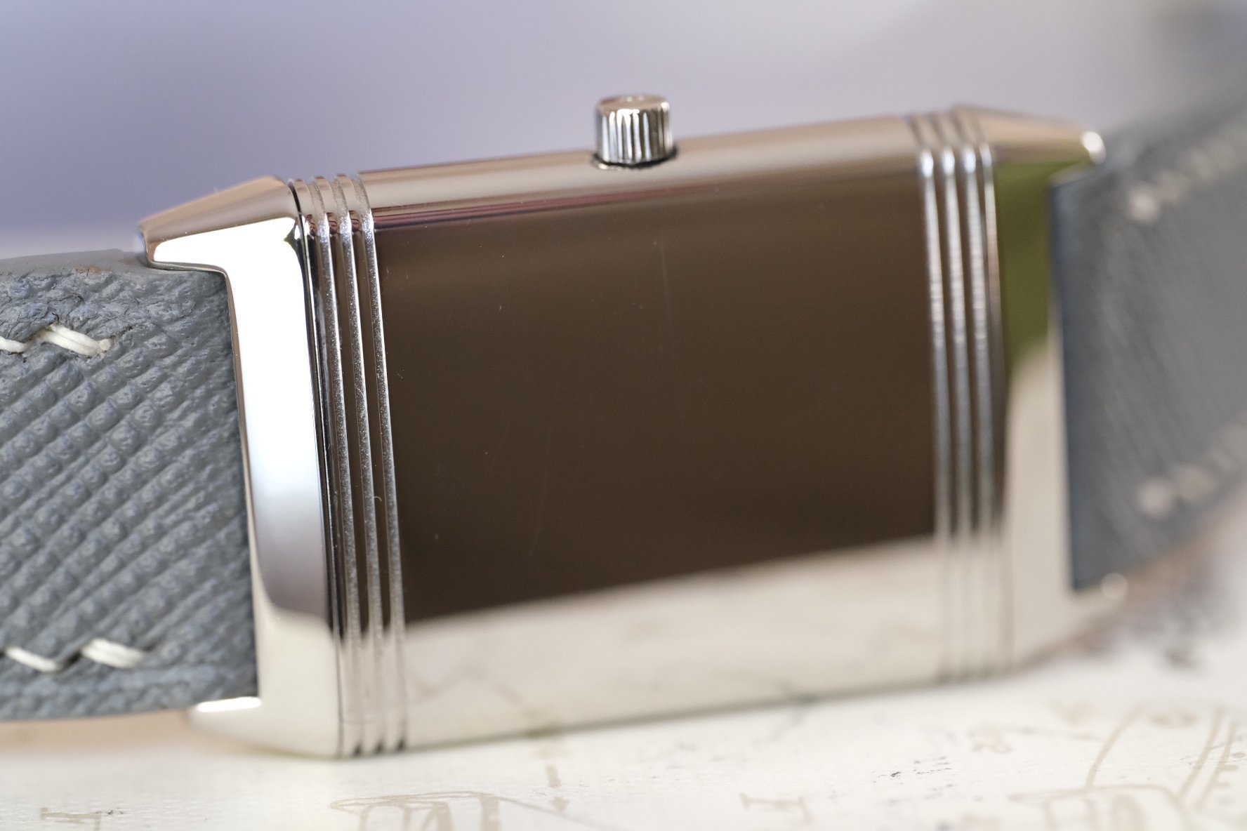CASE: CLEAN 23MM x 38mm stainless case. Feels like a Cartier tank but with extra spread across the wrist, wears incredibly well! (Photographed on my 6.6 inch wrist.) Very light wear overall, mostly seen on the high polished parts, like the case back, and only in bright light, but all in presents close to mint, including the reverso side, which only has very light marks and is completely free of the usual engravings! And of course that incredible flipping mechanism works perfectly, very easy and smooth, locking in tight.