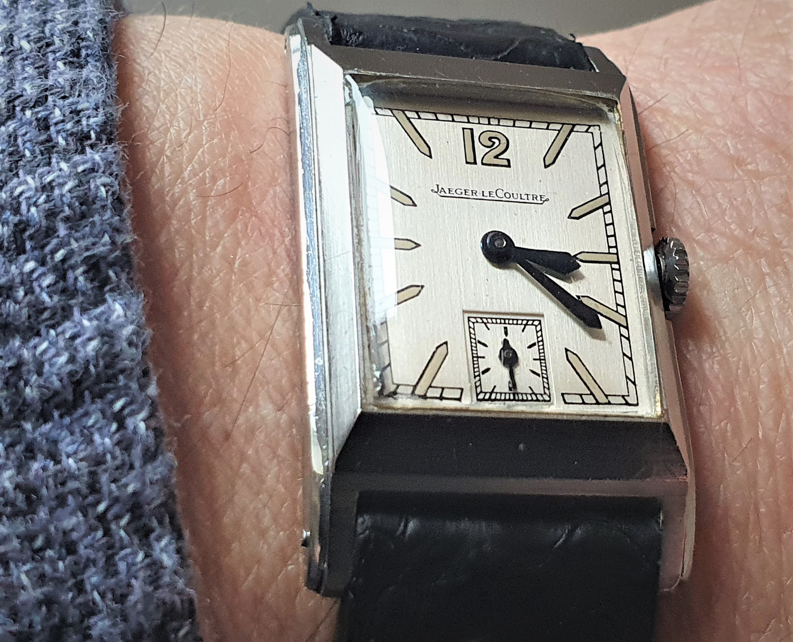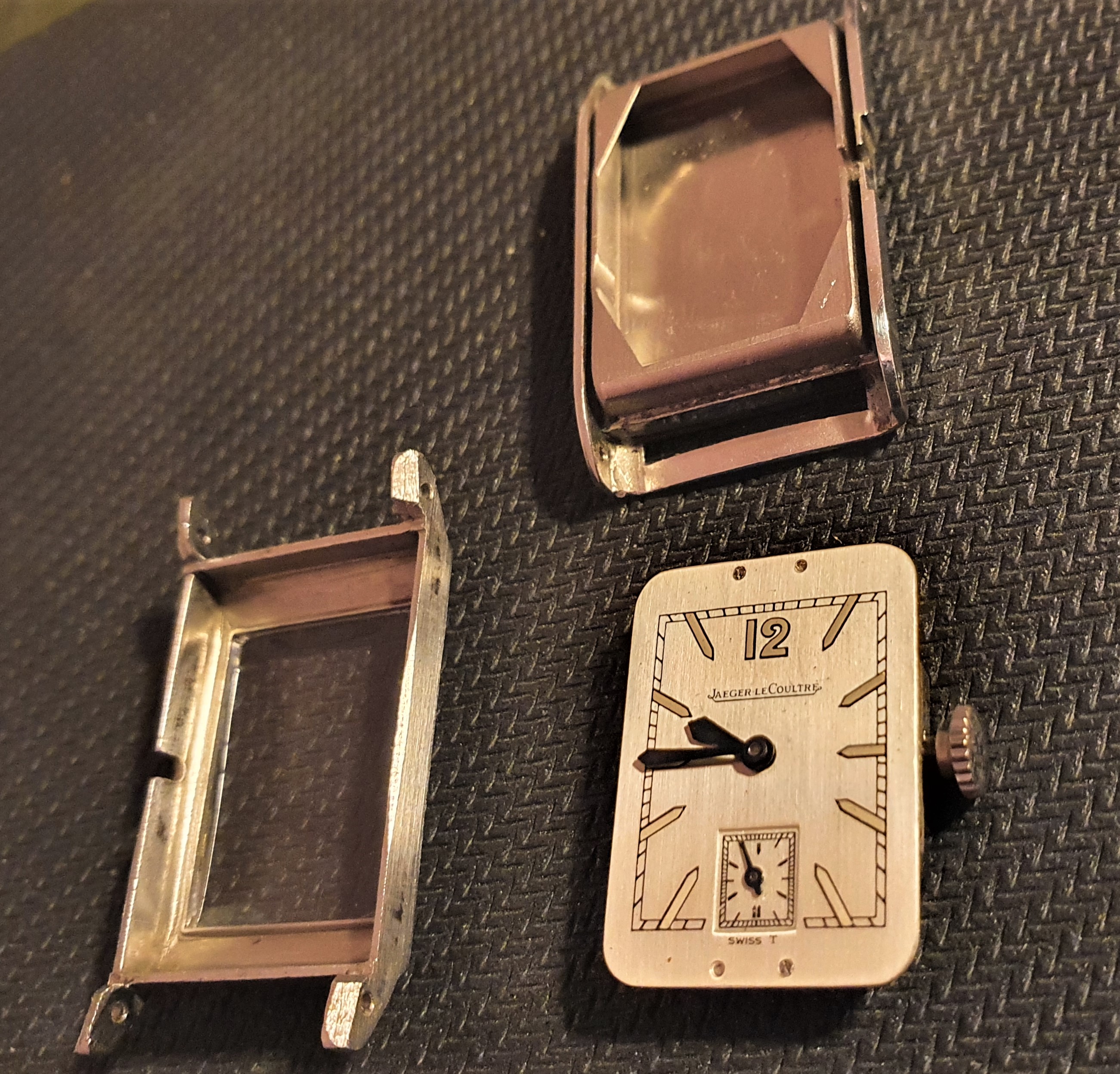 I would like to ask you to verify the authenticity of this watch. I have searched probably all over the internet and I can't find anything similar with a "SWISS T" dial I am not an expert on JLC, but I really like rectangular watches from the 1940s and I came across a rare case or folding copy. I would appreciate any help.