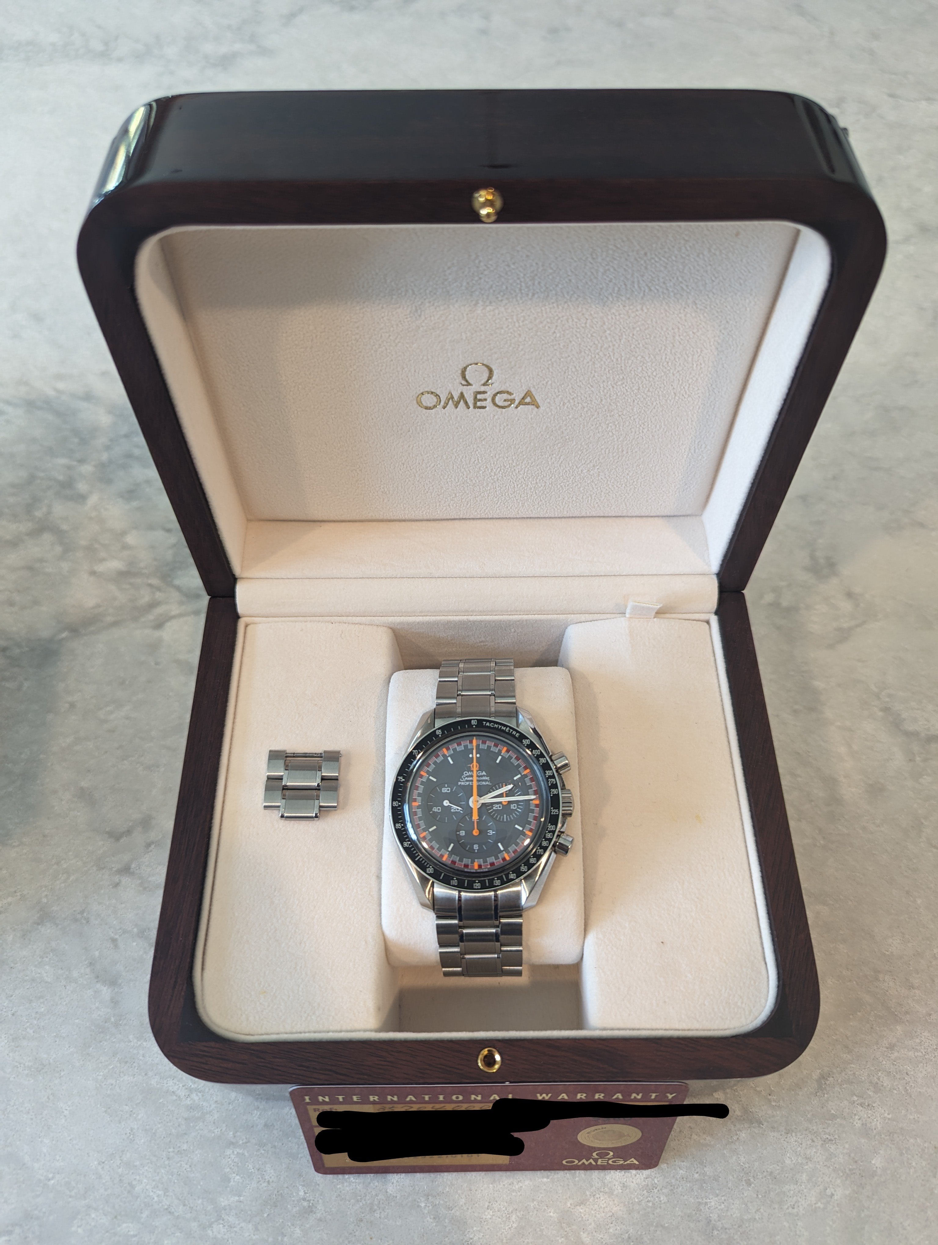 The watch is in beautiful condition aside from a little bit of wear on the clasp that should easily polish out. Serial number is verified by my local Omega Boutique as being a legitimate Japan Racing watch, manufactured in 2004.