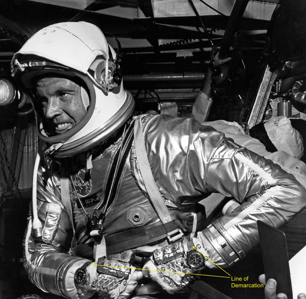 There were indeed longer versions out there that I was unfamiliar with at the time. If I had to make an educated guess I would say that these longer bracelets were the ones used during the two Mercury flights as well as Gemini 3 on the suit exterior prior to the adoption of the Velcro strap. I think only the longer ones would accommodate the diameter of the glove.