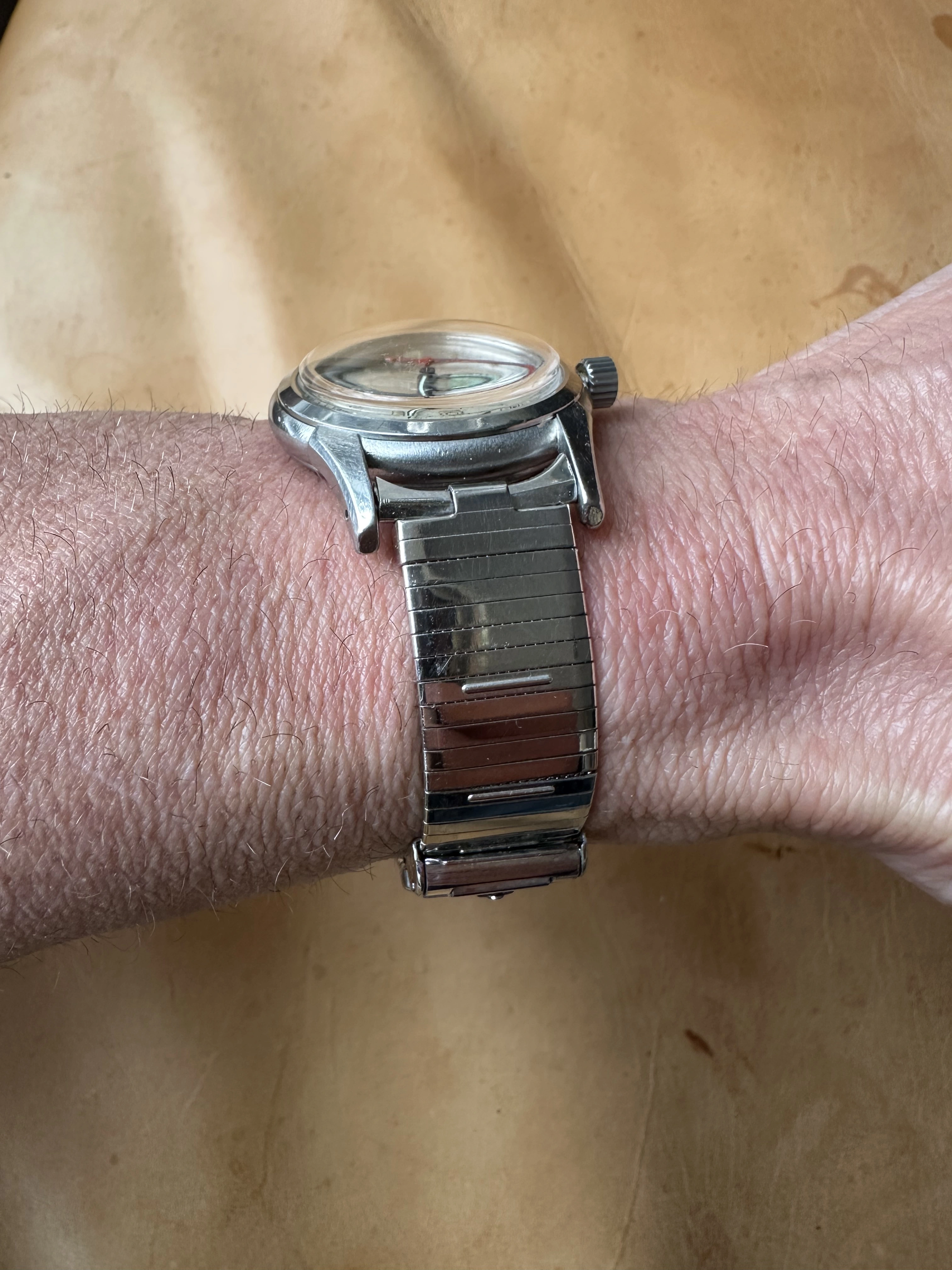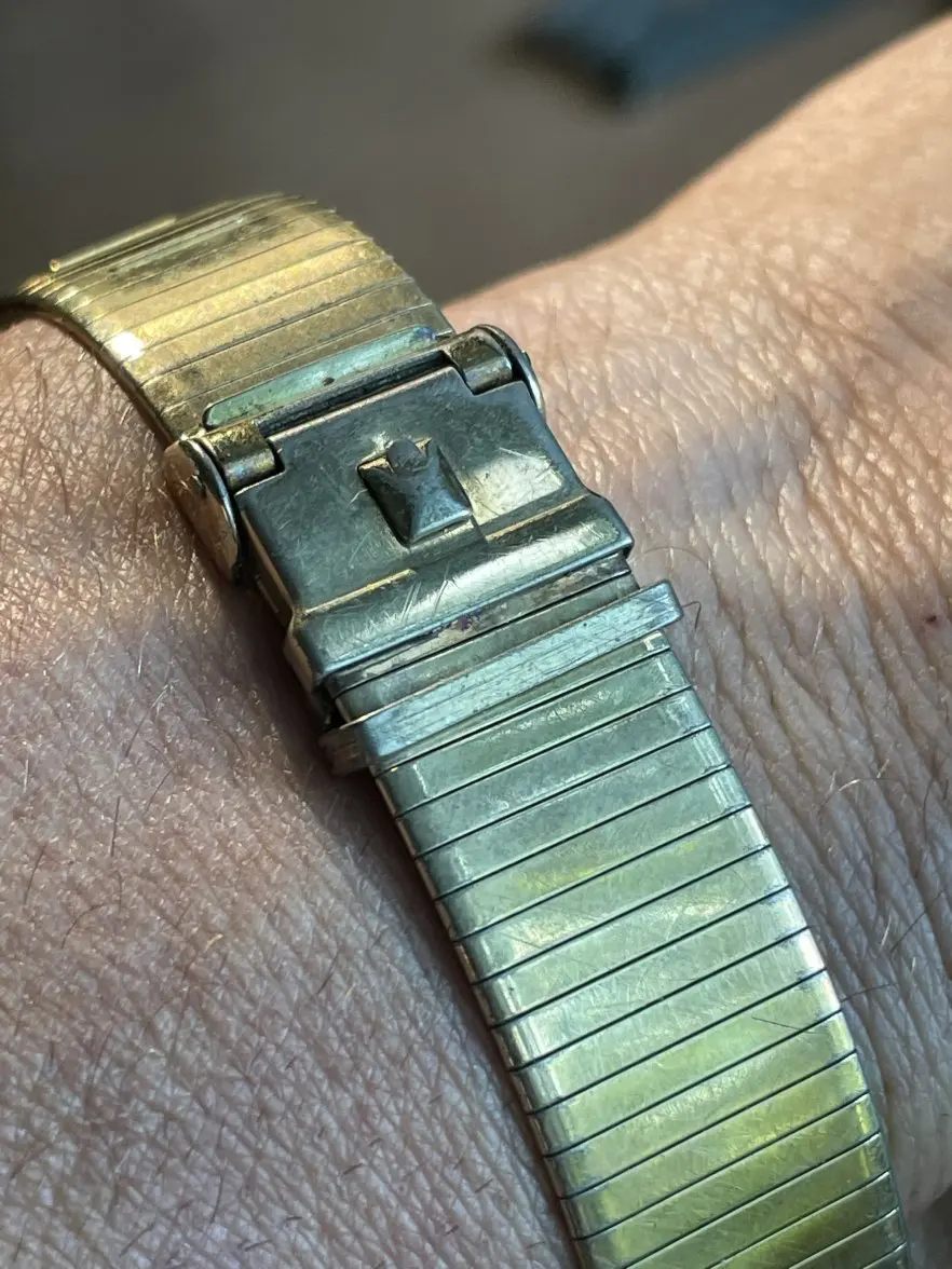 I installed the shiny new looking bracelet on my Gruen. It is easier to operate than my modern Komfit.