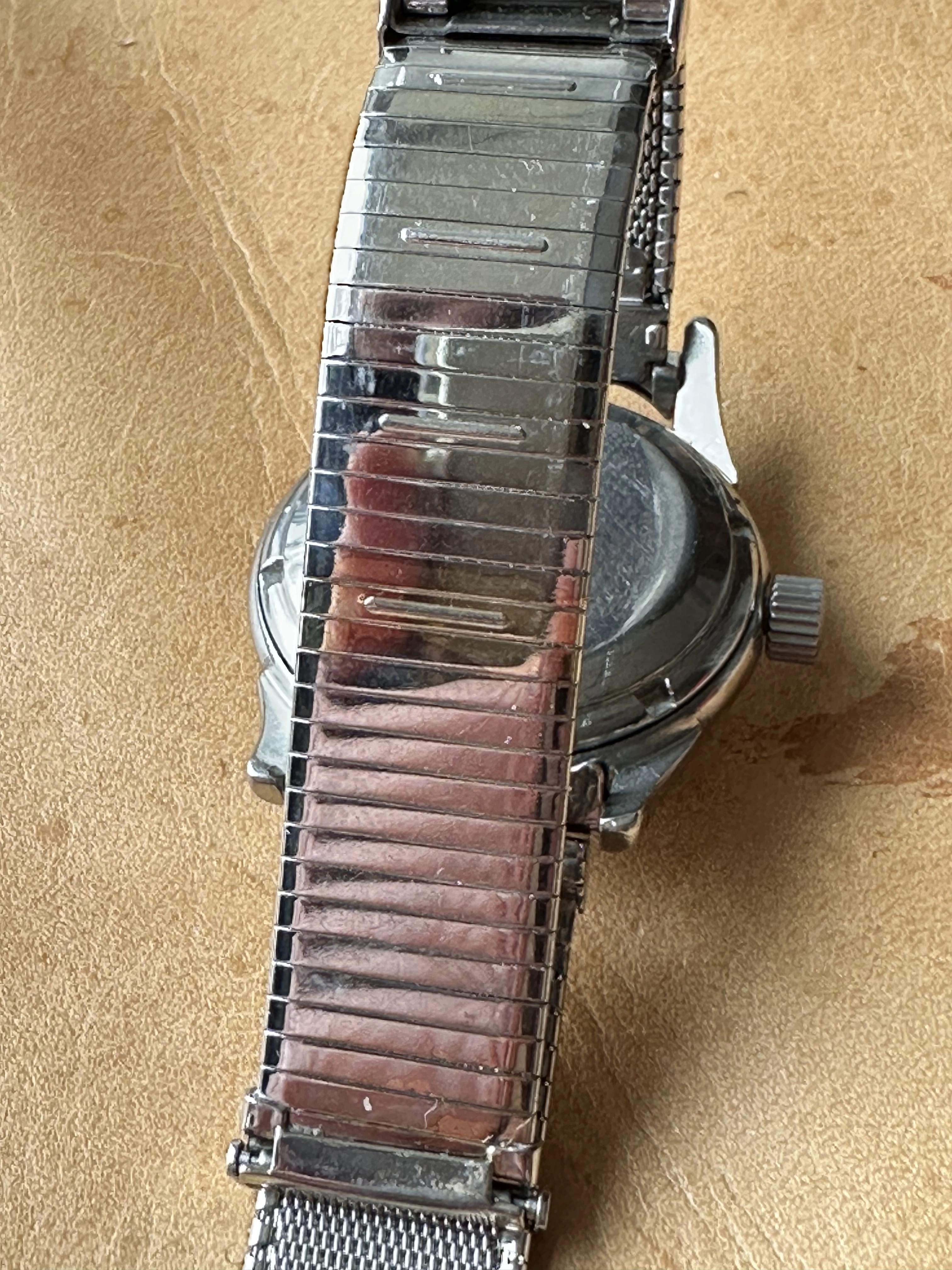 The Forstner was too far gone, so they polished off the gold plating and replated the bracelet to a shiny chrome look.