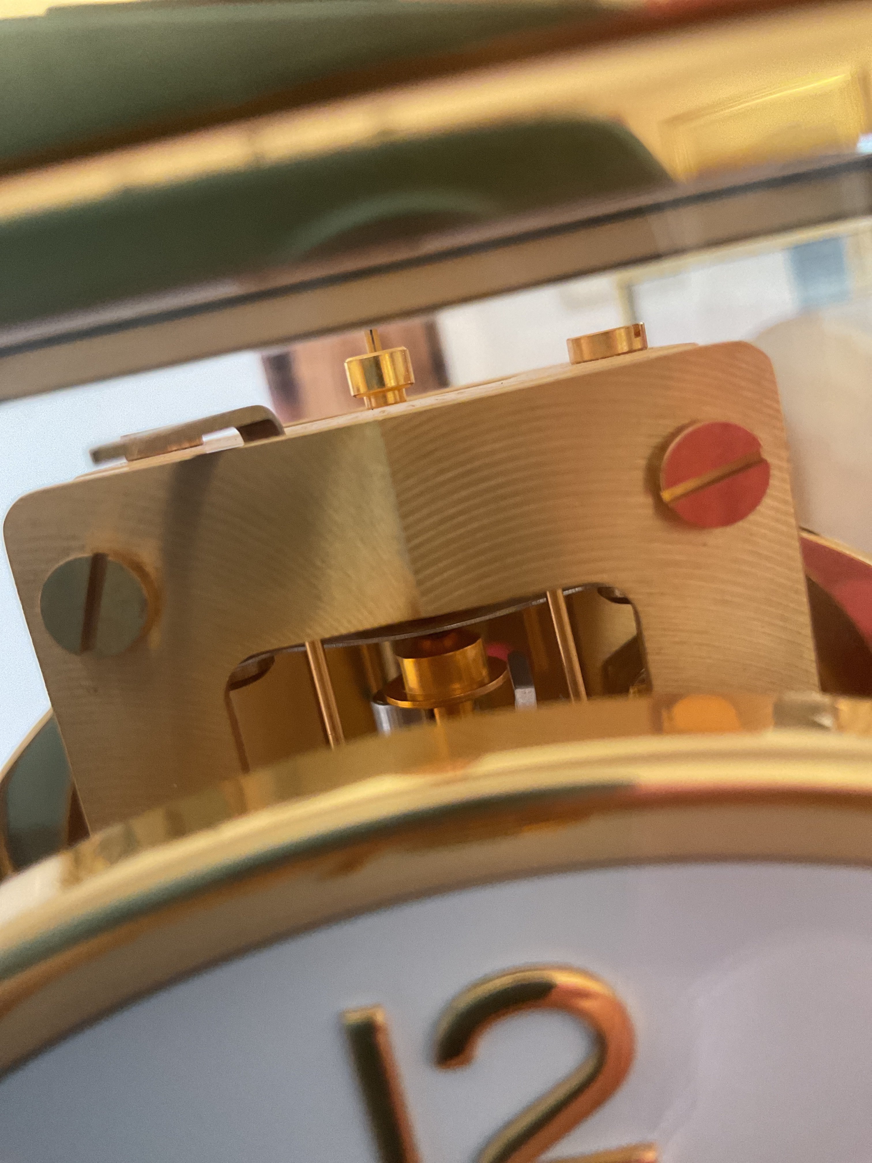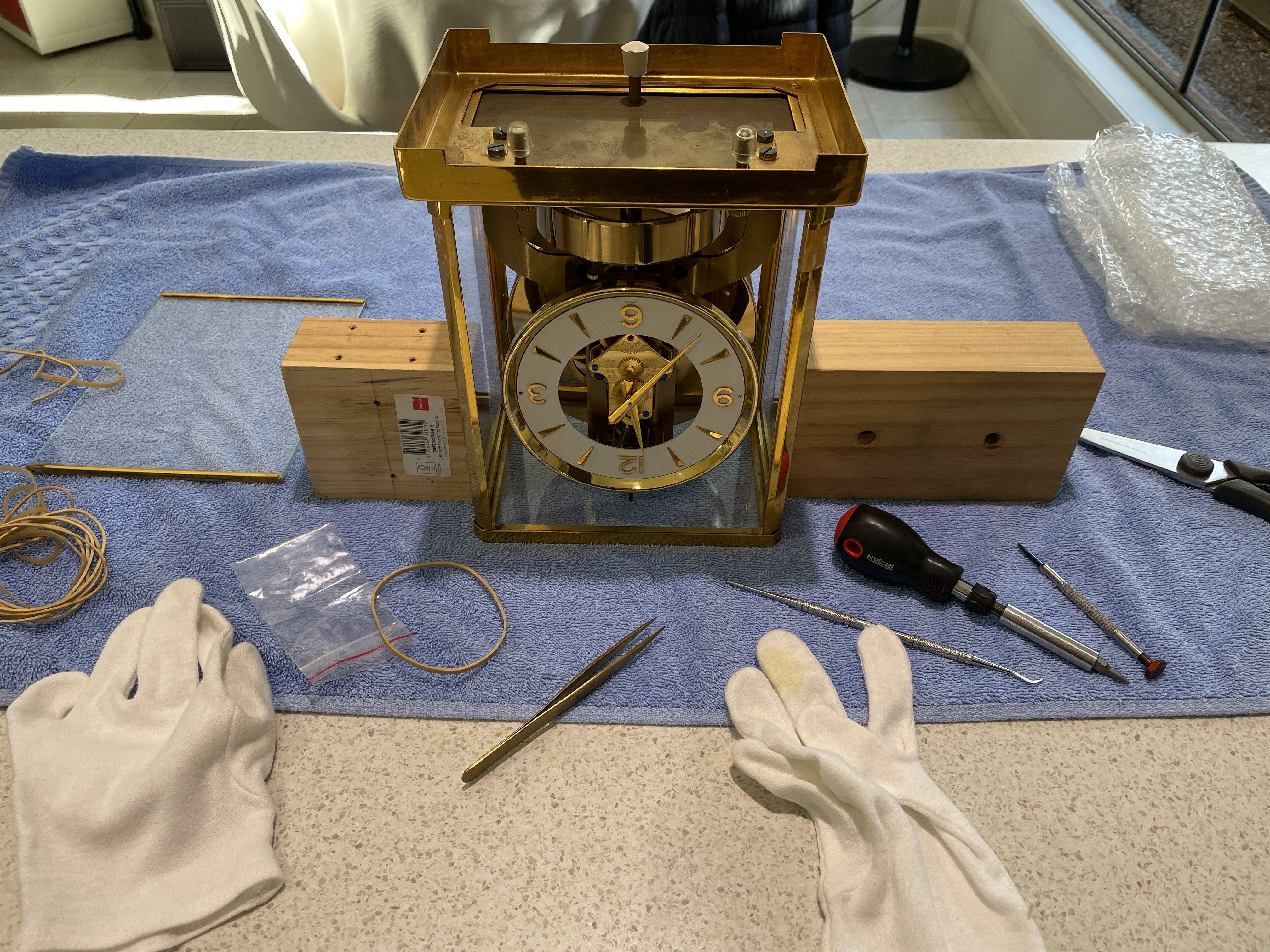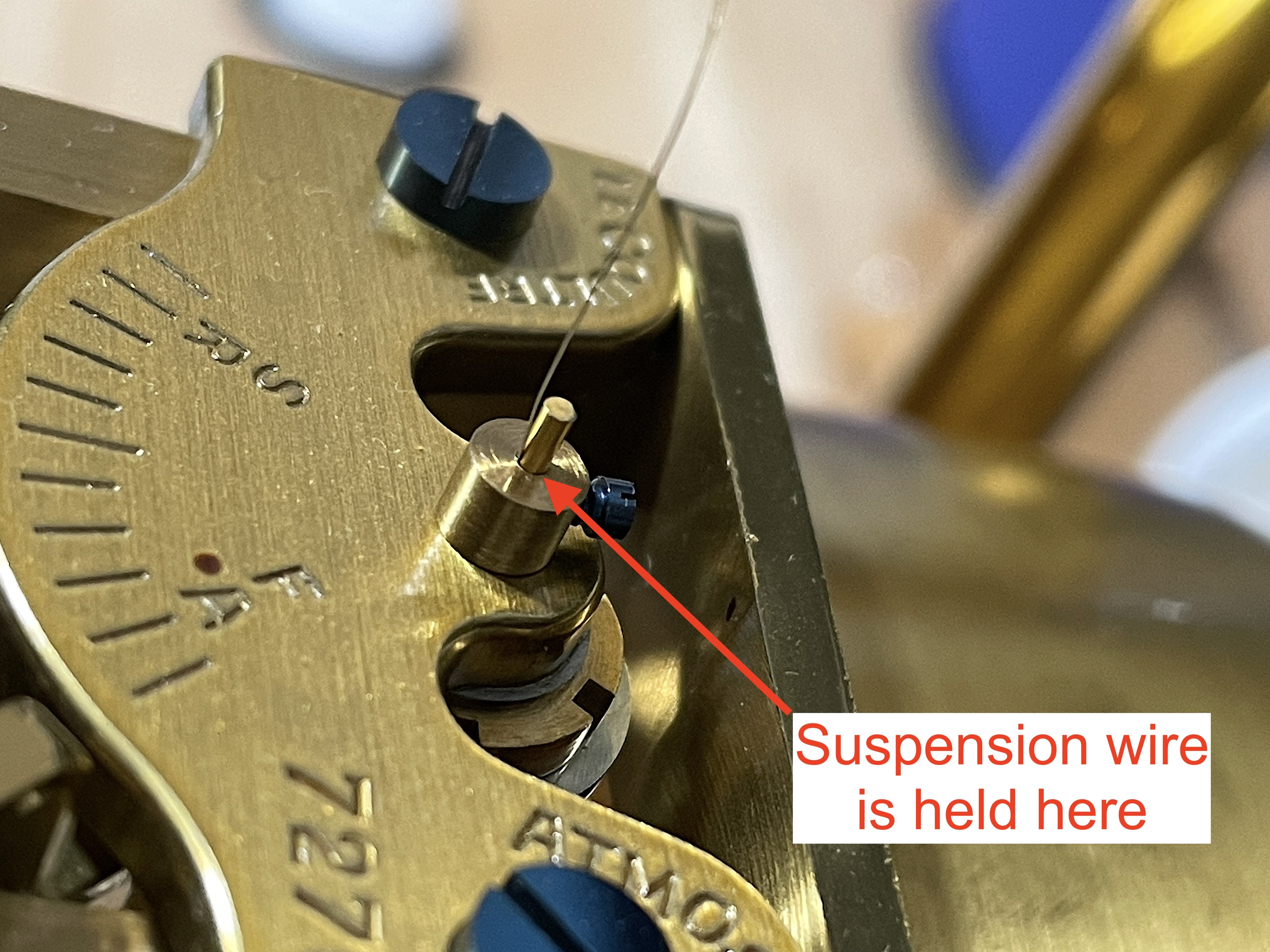 I recently received a panic call from a mate I service watches for. He had a friend with an Atmos that was losing time badly. Apparently it had been shipped without the balance being locked. He asked if I could do anything and being a sucker I said yes. As it had probably been dropped at some stage, I suspected that the suspension wire may have been pulled down slightly, thus making the balance turn slower. I wasn't game to try adjusting the length of the wire so I hoped I could allow for it with the regulator.