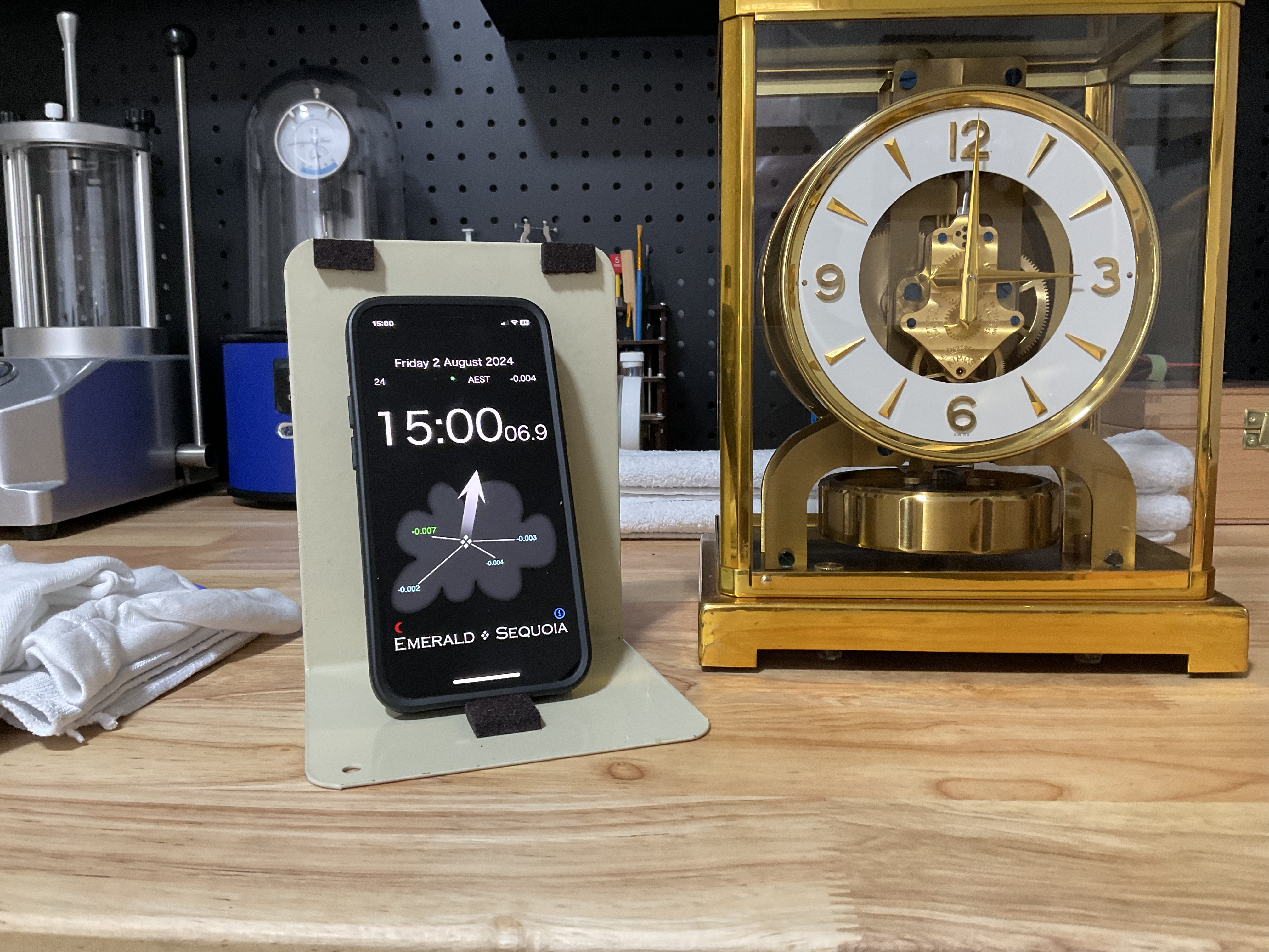 When it arrived (locked this time) I disassembled the case so I could inspect the movement in detail. I found nothing wrong so after cleaning the case parts I put it all back together on my solid bench and set it running at the correct time. I let it settle for two days and then started timing it the same way