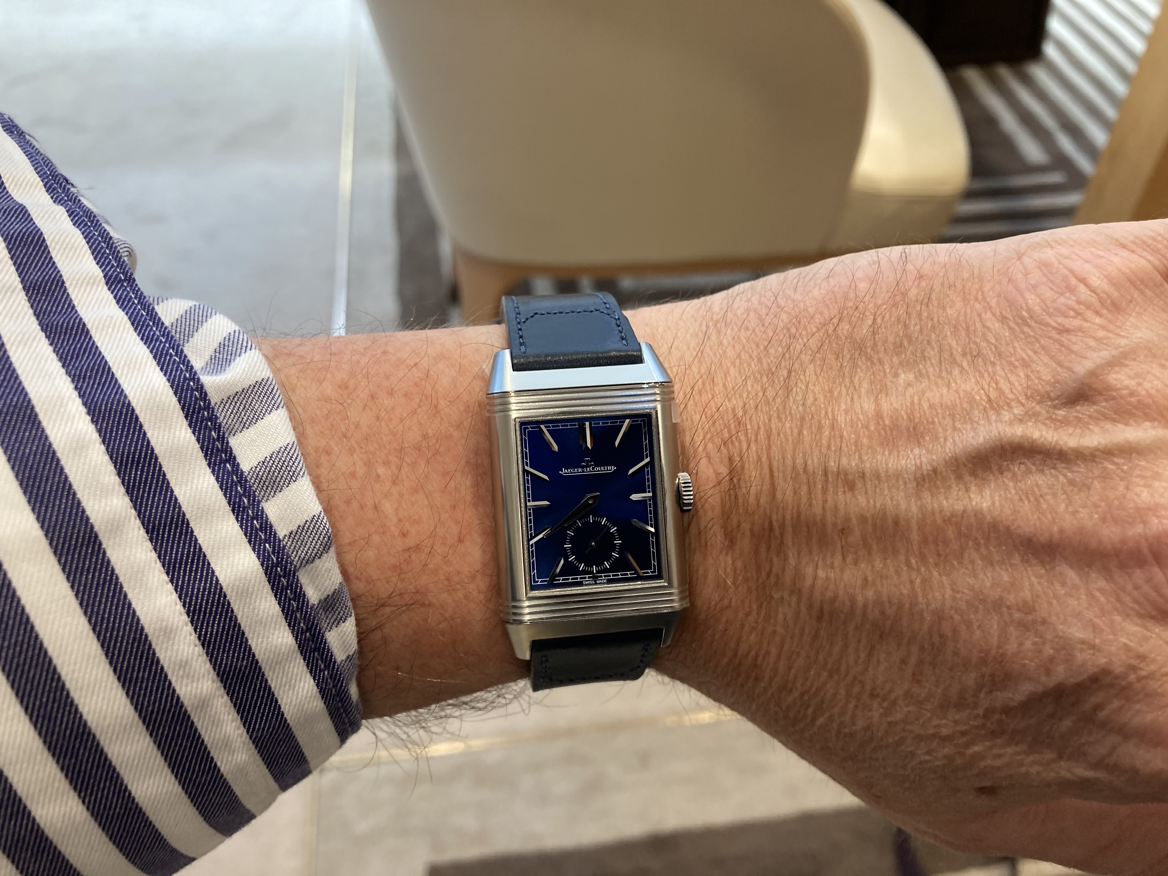 ··Color Commentator for the Hyperbole.Agreed on suggestions to try them on. I purchased my first Reverso sight-unseen, and realized within a week I selected the wrong size for me. I was a costly mistake, before I found the right size fit and ended up with the Reverso Duo.