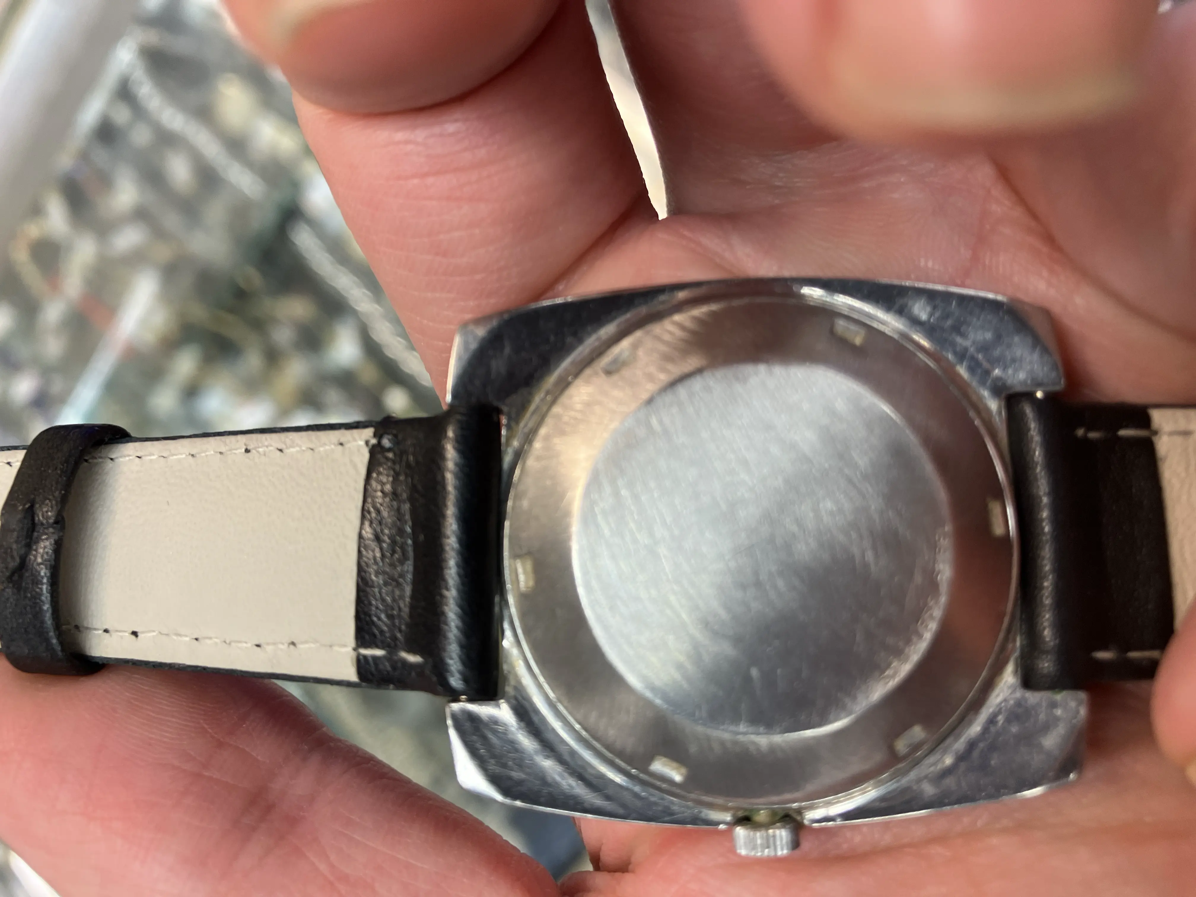 I've been researching and gather this is a Master Mariner HPC, ref. 9514, linen dial with onyx indices. Appears it should have a Cal. 164. I found photos from an old listing of the watch (the photo with the watch on wrist is the reference image I'm using. The hands, indices and text on the dial all seem correct, to me. The crystal is obviously cracked and won't know the service history so it would be a gamble. Watch was running.