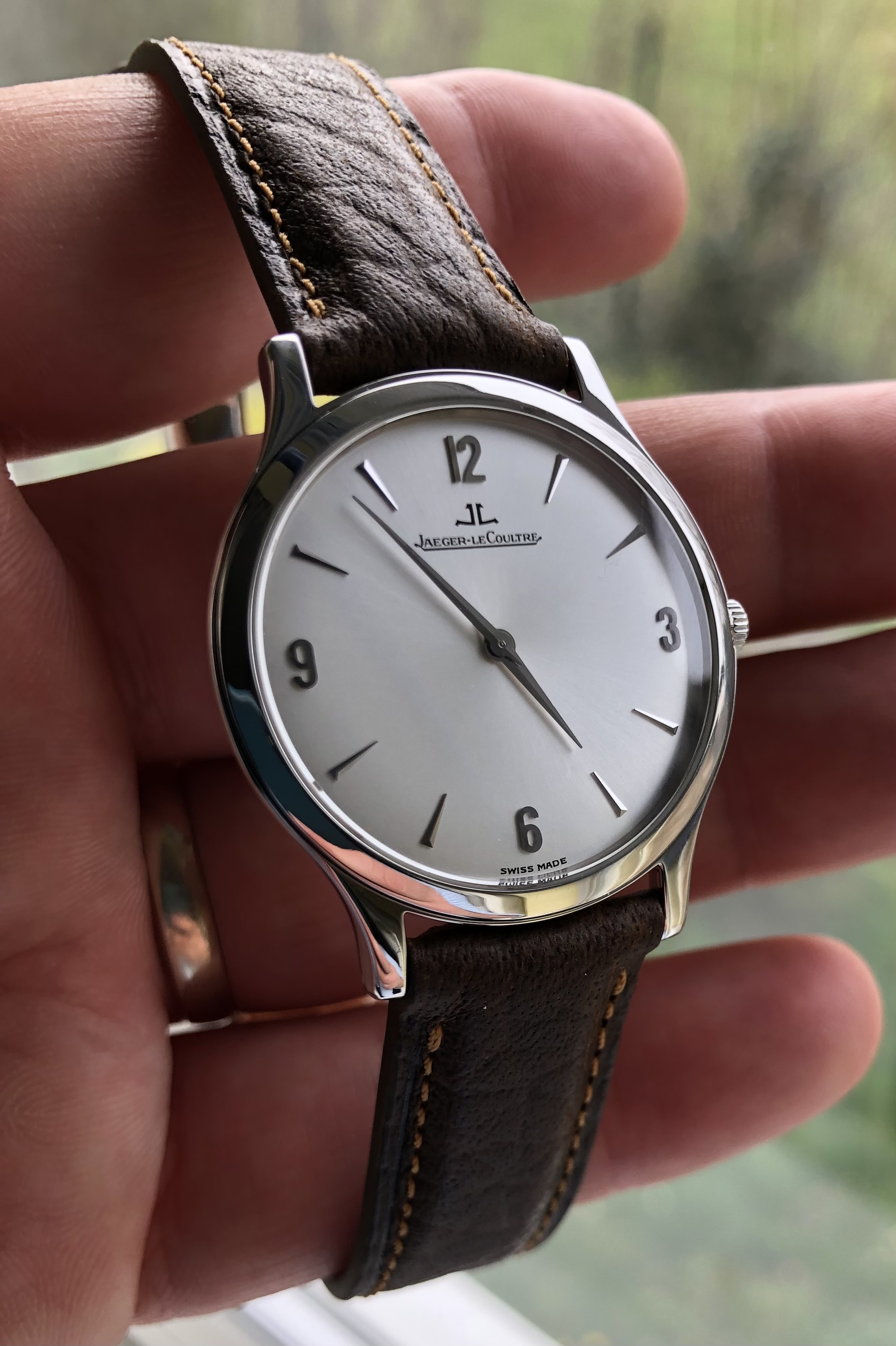 Up for sale is my JLC Master ultra-thin, ref 145.8.79, 34mm in fantastic condition, from 2005 and as rarely found with full box & original paperwork and was serviced in Dec 2022 by JLC. The watch comes with the remaining warranty just short of 2 years, registered as serviced on the JLC data base. Further to this Watchfinder, where I bought the piece from provided a letter of authenticity.