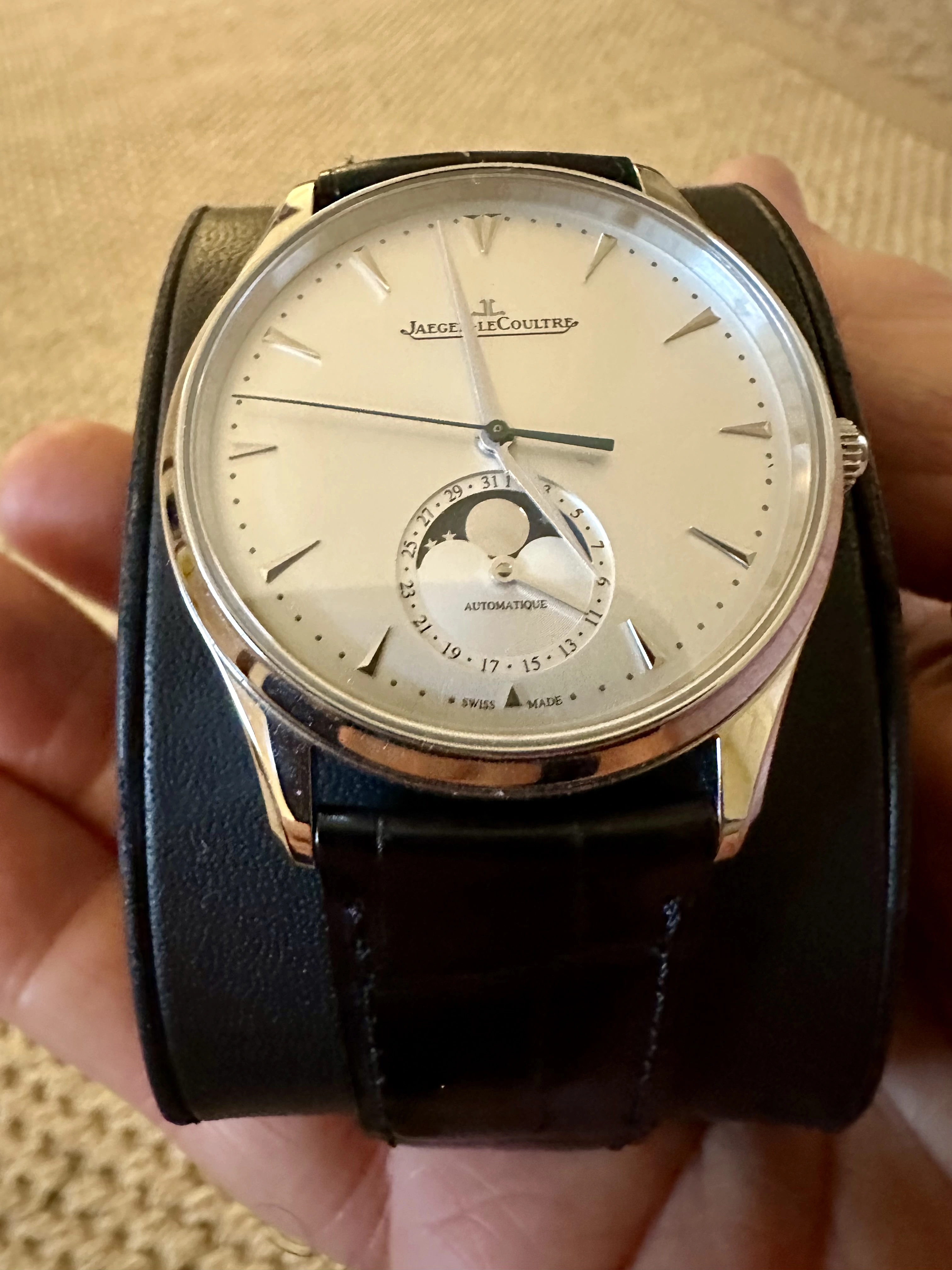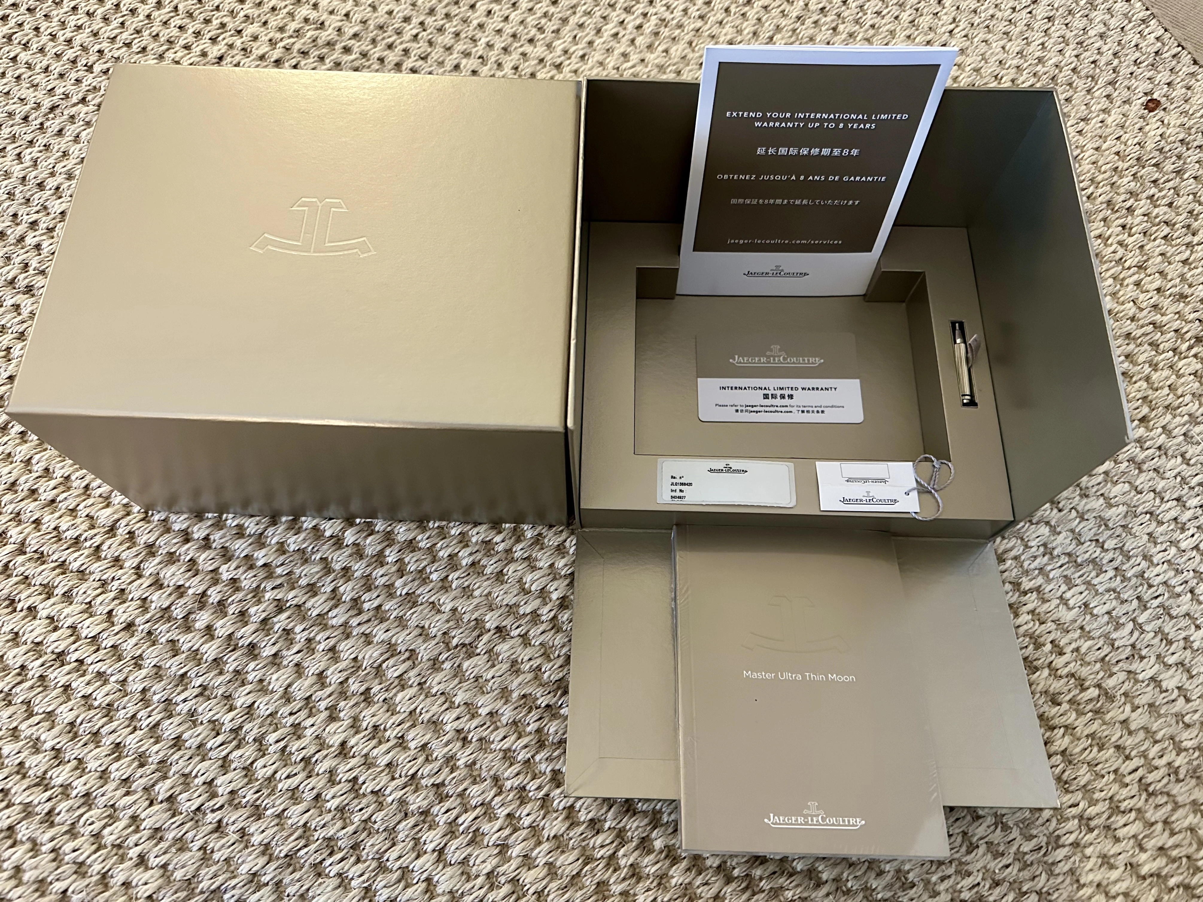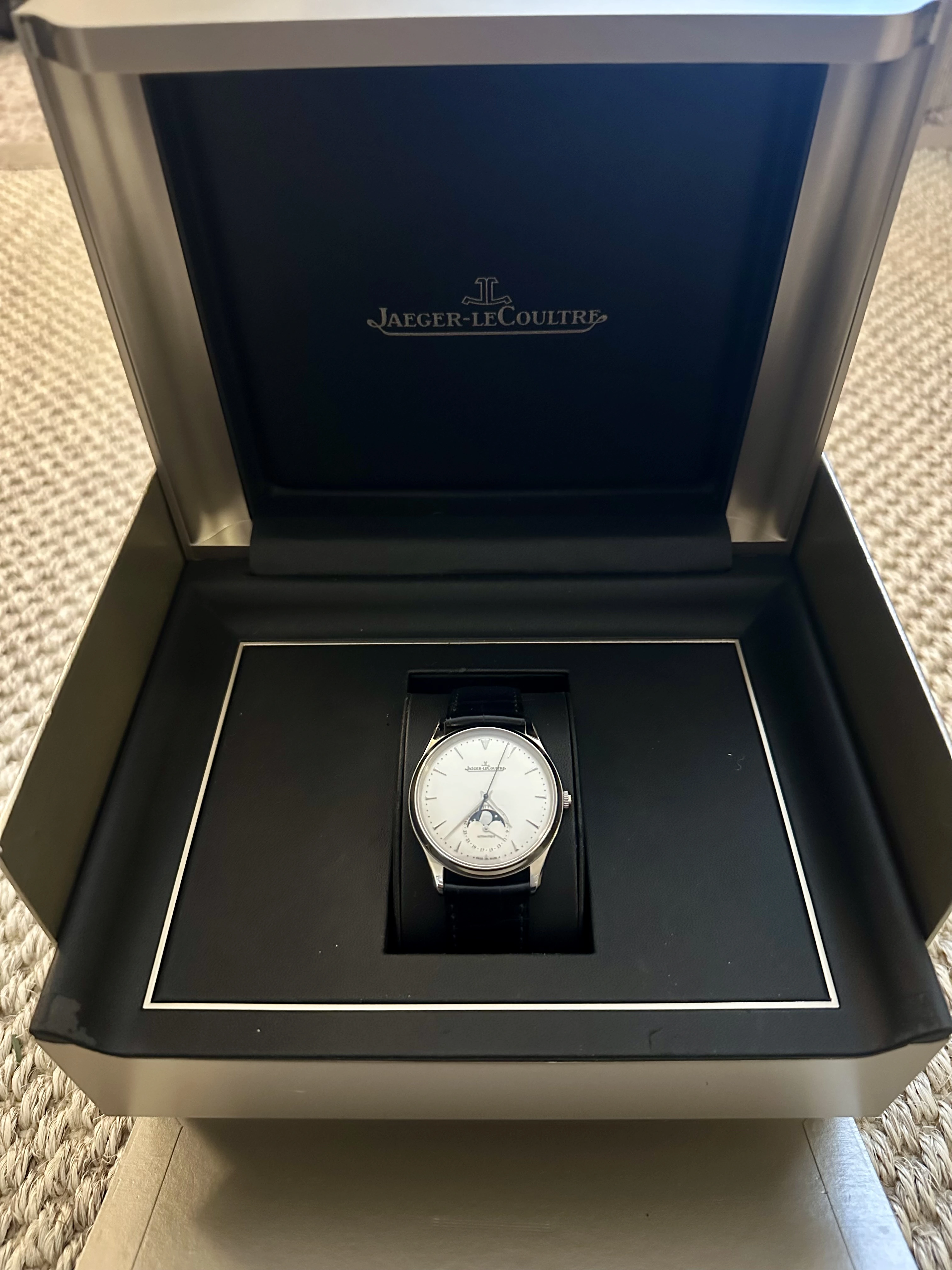 ·Good day all. Up for sale is something special - here is a beautiful Jaeger LeCoultre Master Ultra Thin Moon, reference # Q1368420. This is a full set and includes all boxes, papers, booklets, push pin, and Jaeger LeCoultre Guarantee through March 25, 2028.