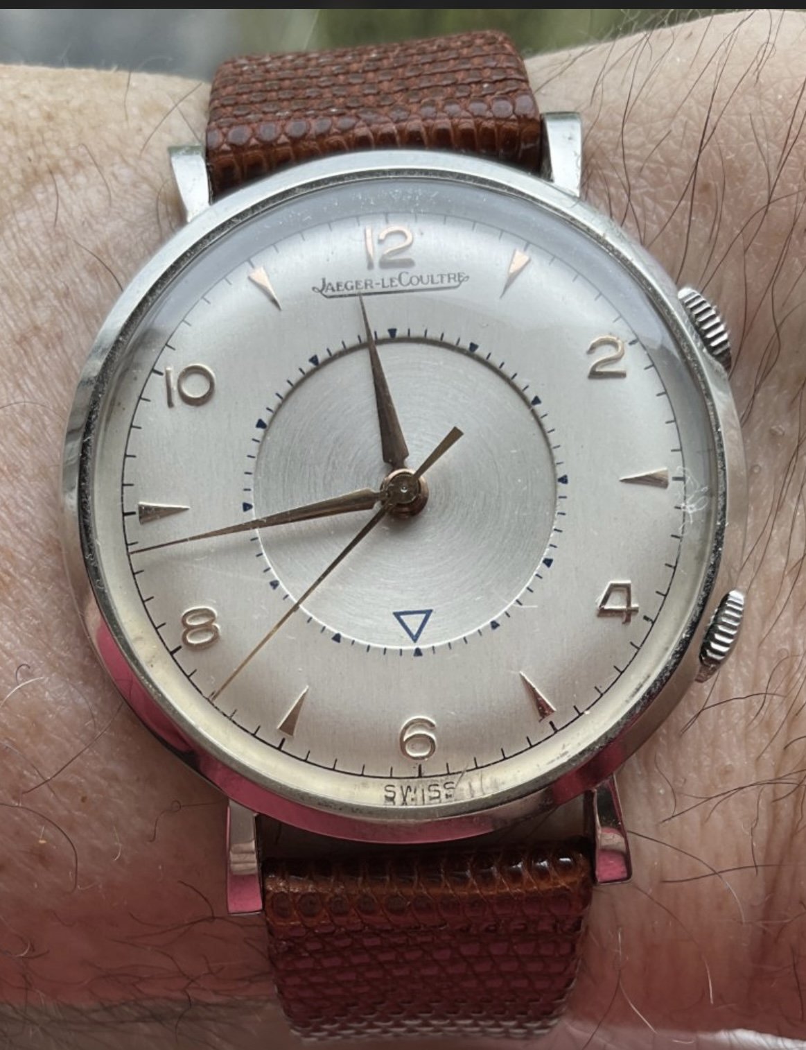 I have been offered a JLC Memovox 3151 from the 50s in exchange. I like the watch very much. I spent some time researching online, the dial and hands seem ok, the crowns too I think. I can still get pictures of the movement if I am interested in the watch. I don't know anything about JLC and the Memovox unfortunately. What do you think about the watch?