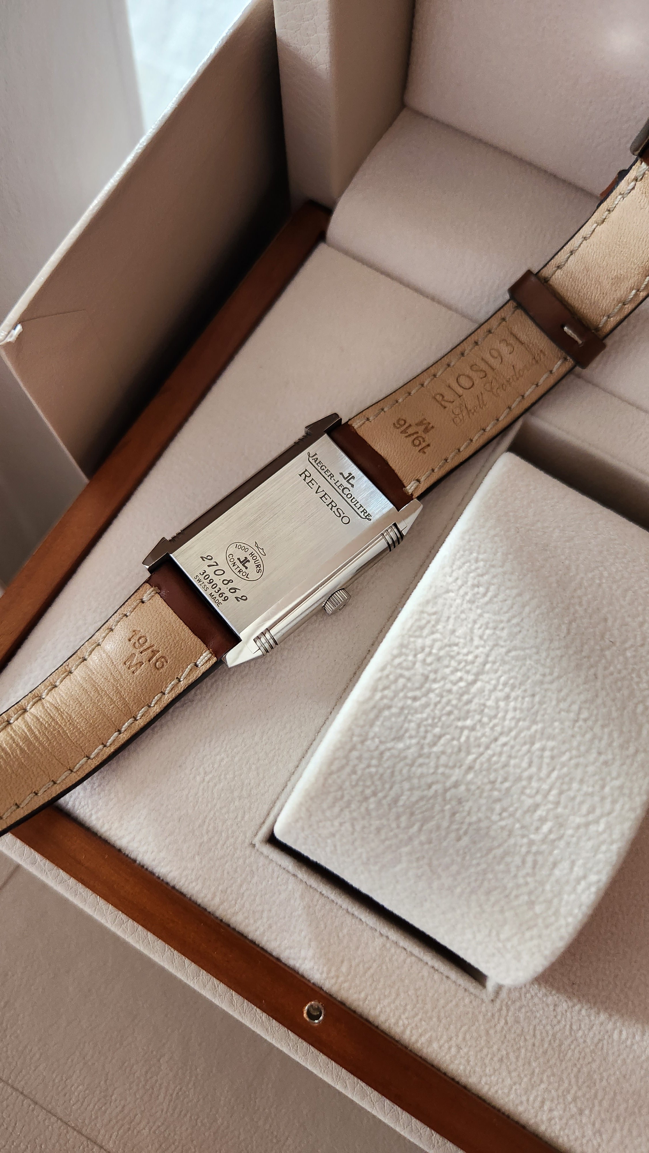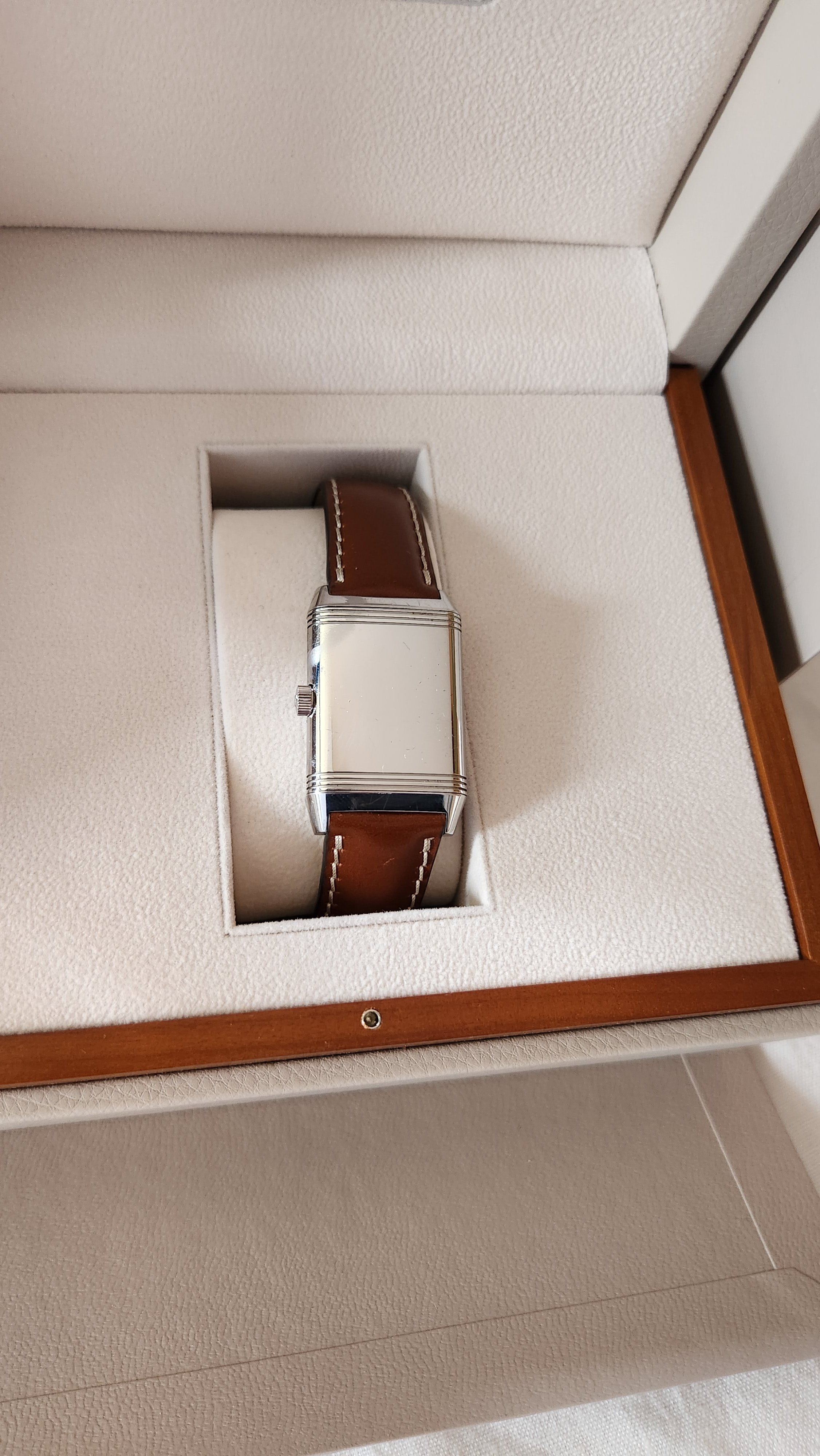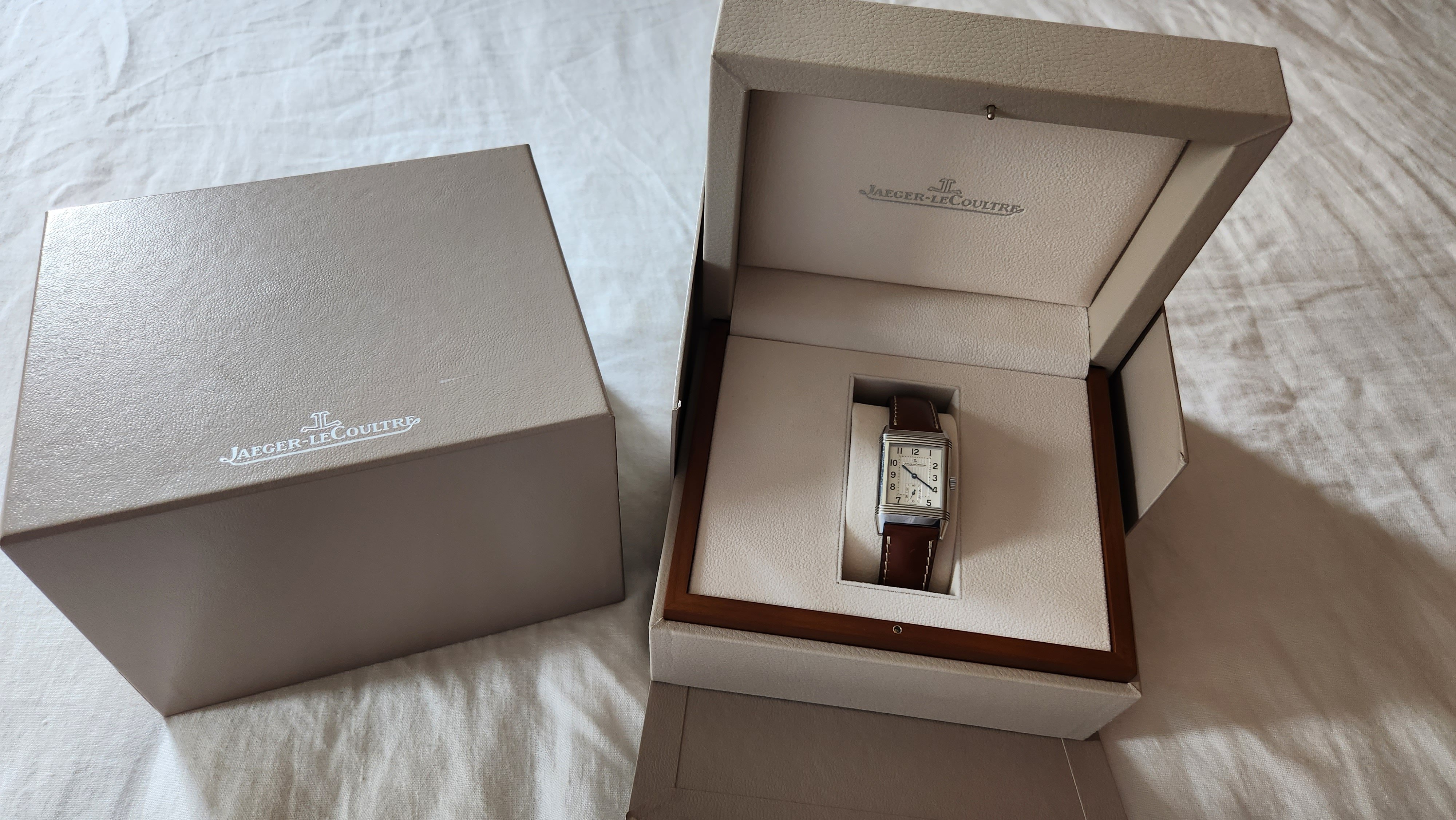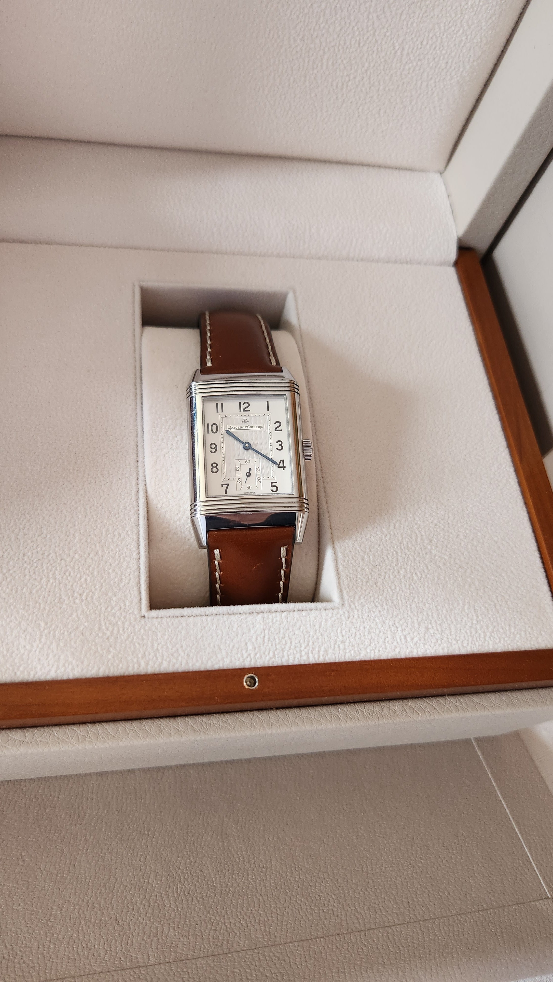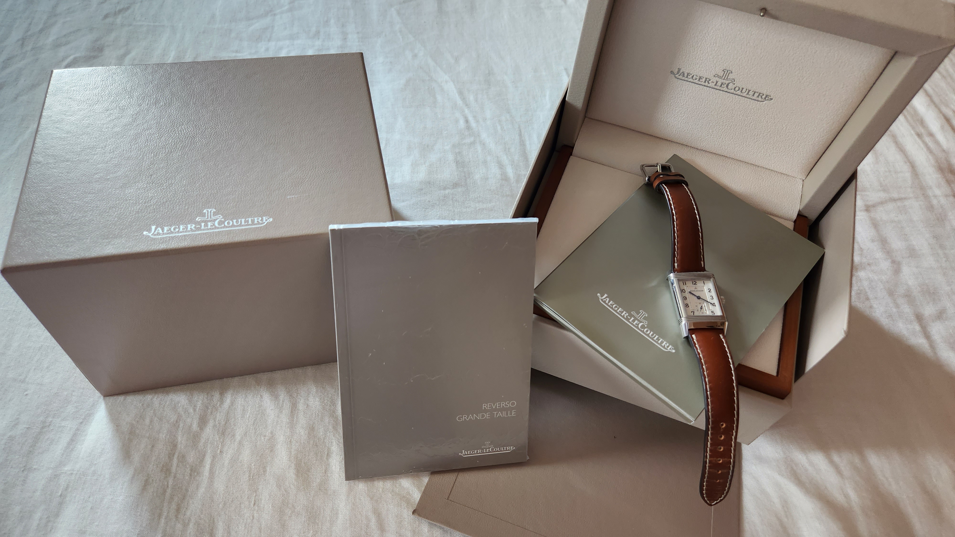 ·Up for sale is my Reverso Grande Taille (circa 2012, ref Q2708410, cal. 822, 26mm X 42mm). It's in pretty good shape and I've owned it for a while, and I bought it from the original owner, but it doesn't get the wrist time it deserves. I find it a bit too big for my small wrist. It comes in its original box and papers minus the certificate card which I've misplaced. It will also come with the original alligator strap and an additional Rios Horween strap.