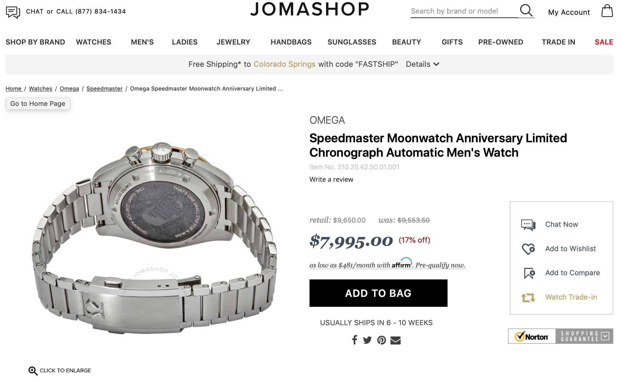 Not surprised by this at all. There are a lot of these watches out there, flippers grabbed too many of them. Legit buyers are starting to get tired of waiting. Omega gives you a 3 year warranty on the piece right? So that's definitely worth something above and beyond a 1 year Jomashop warrranty. W.r.t. the warranty card missing, speaking only for myself, its the least valuable part of a complete package to me and If I could save $1500, yeah, I think I could live without a card and a year or two factory warrranty as the cost difference pays for a couple of additional services. I want to have the inner box most of all, and any COA, from there I want an original receipt of purchase as that helps tell a story as I hope any modern watch I buy will eventually become a vintage watch with an interesting story behind it. Hang tags are cool, and lastly the pictogram and warranty cards and the sleeve they come in. But that's just me. I expect to see more of these show up on Grey market, although I don't expect they will fall much below this price, i think this is the bottom.