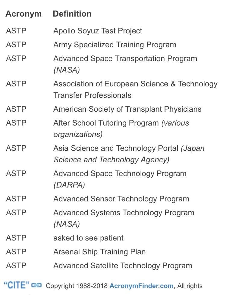I had to look ASTP up but I’m assuming it’s the one at the top of the list.