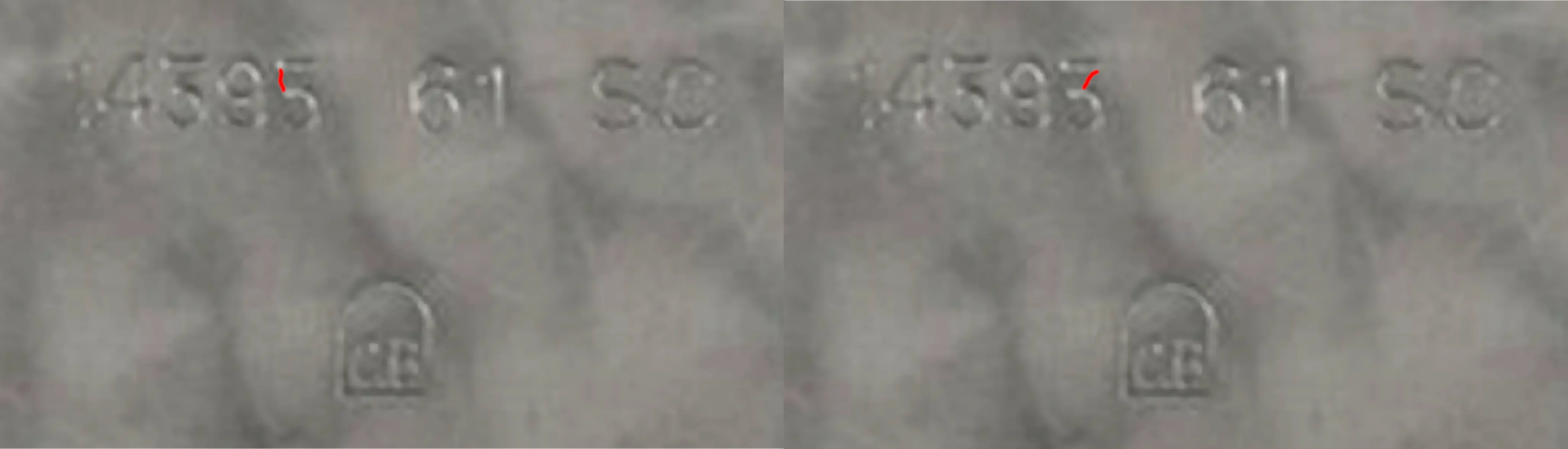 I'd love to know what you can see that I don't that would convincingly lead you to see a '5' - because for me there is simply nothing definitive between the upper horizontal and the lower curved section, other than a slightly darker section.