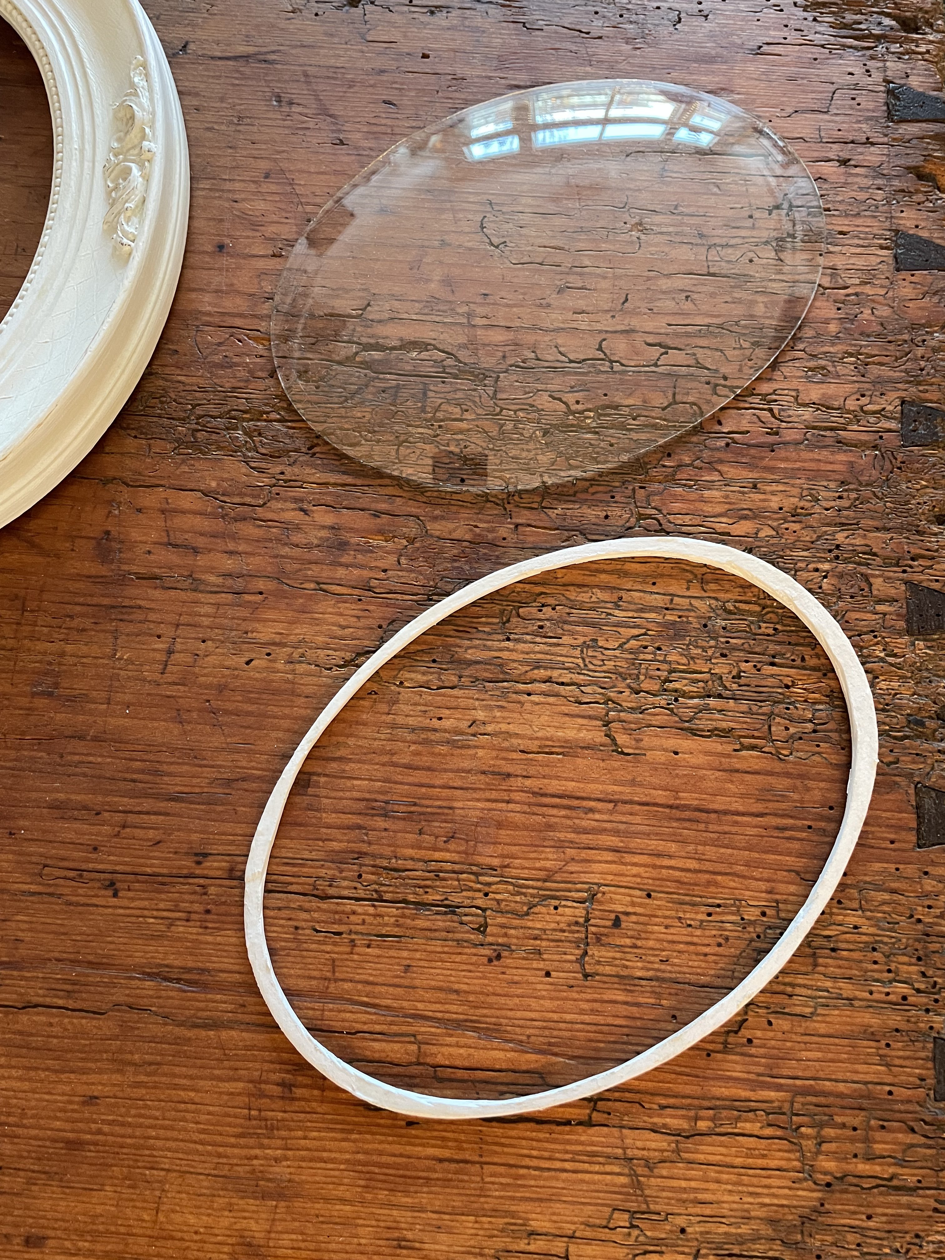 Step 2 was to take the original cardboard insert and cut out a gasket to hold in the glass once the offending artwork has been removed. I actually dropped my cellphone on the glass while taking this photo 😲
