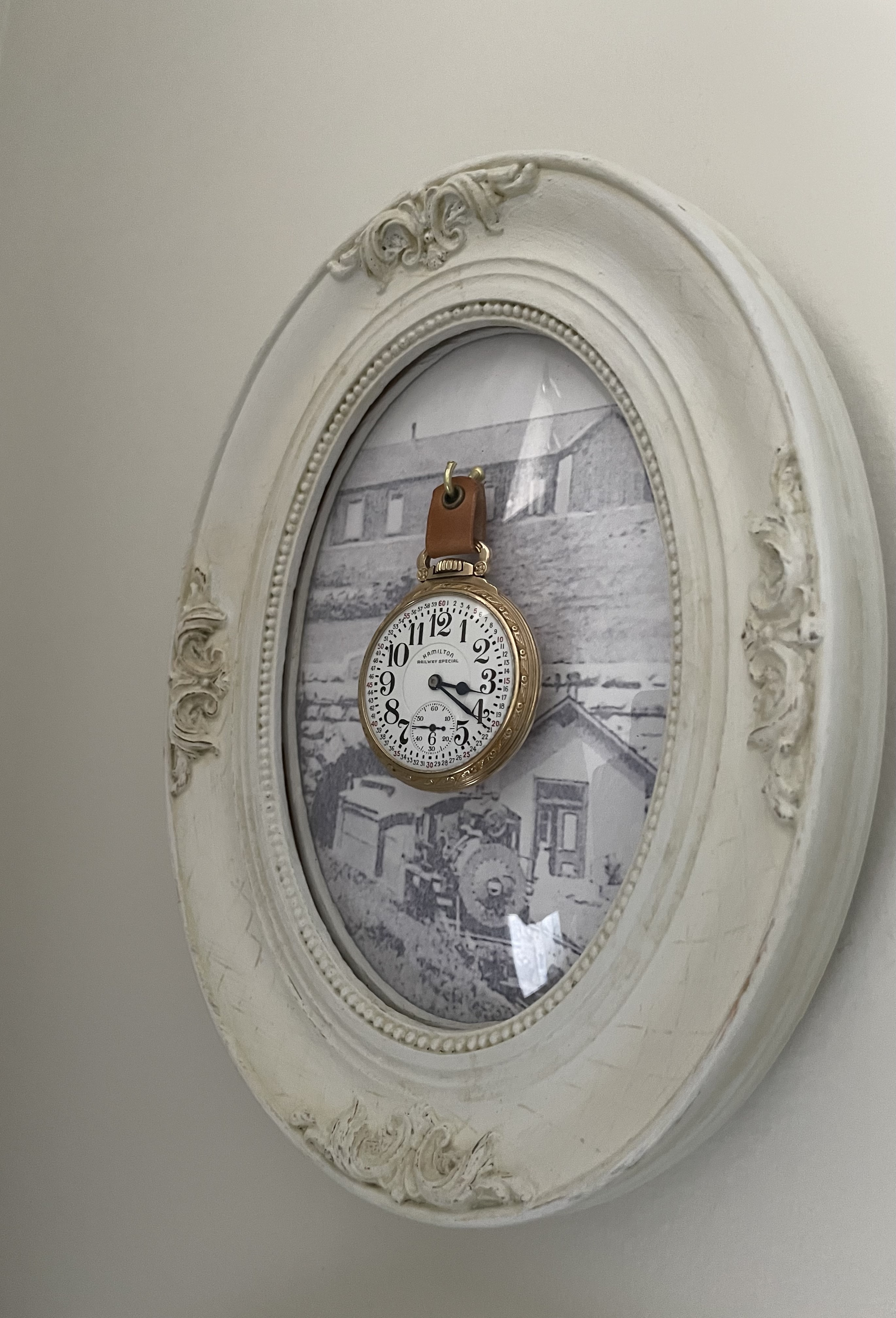 My plan as to make a display case for a pocket watch, and the key is to find something with domed glass so it will have room for your watch in it. It was a fun afternoon project 👍