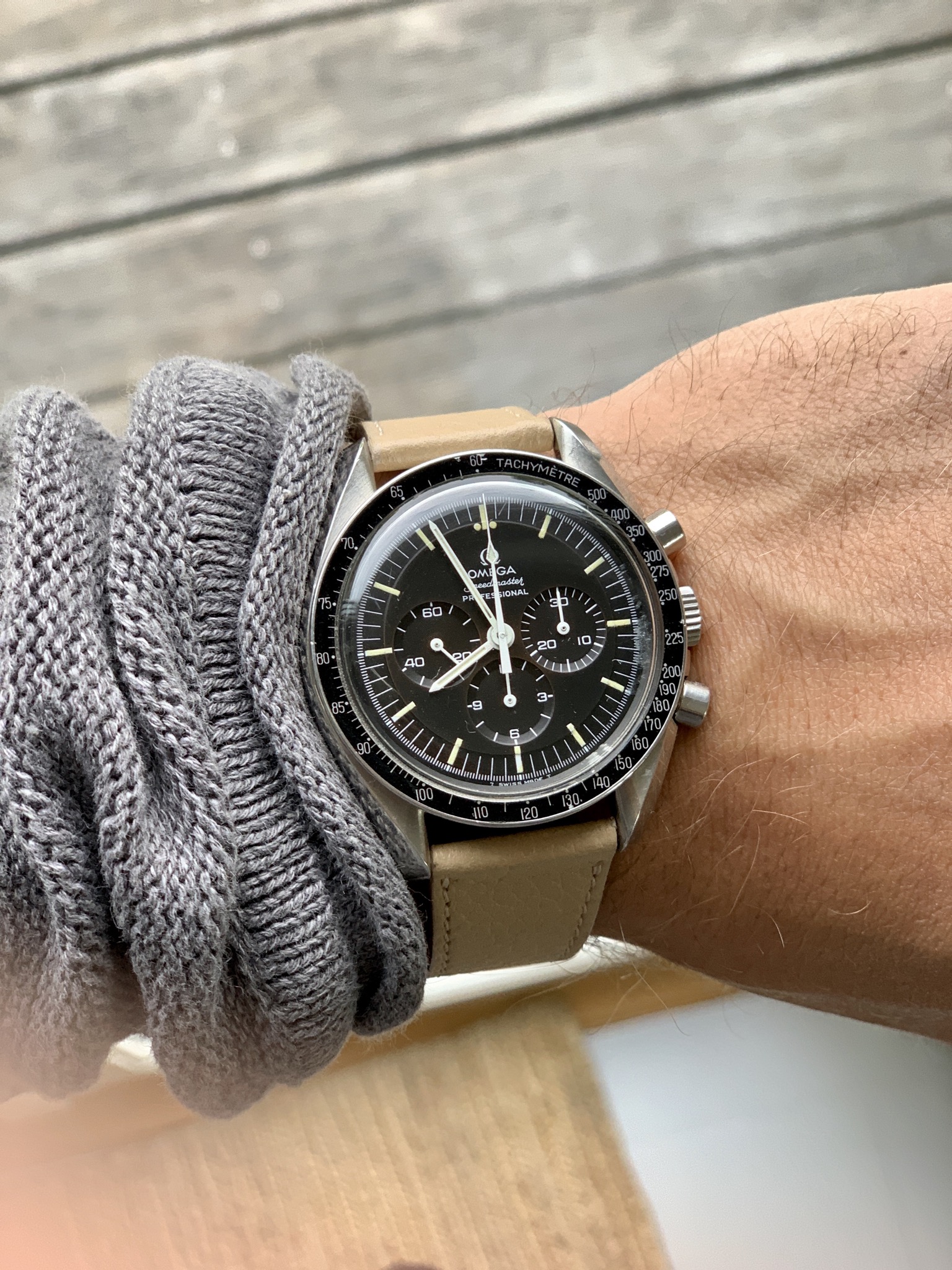 Posts 21 Likes 32 kangamatt 路Jan 5, 2021 Patrik83 Very nice example, congrats. My 145.022-69 sn#30582xxx with a slightly brown dial says hello 馃榾 Love it and the strap brings out the lume of your slightly older Speedy sibling!