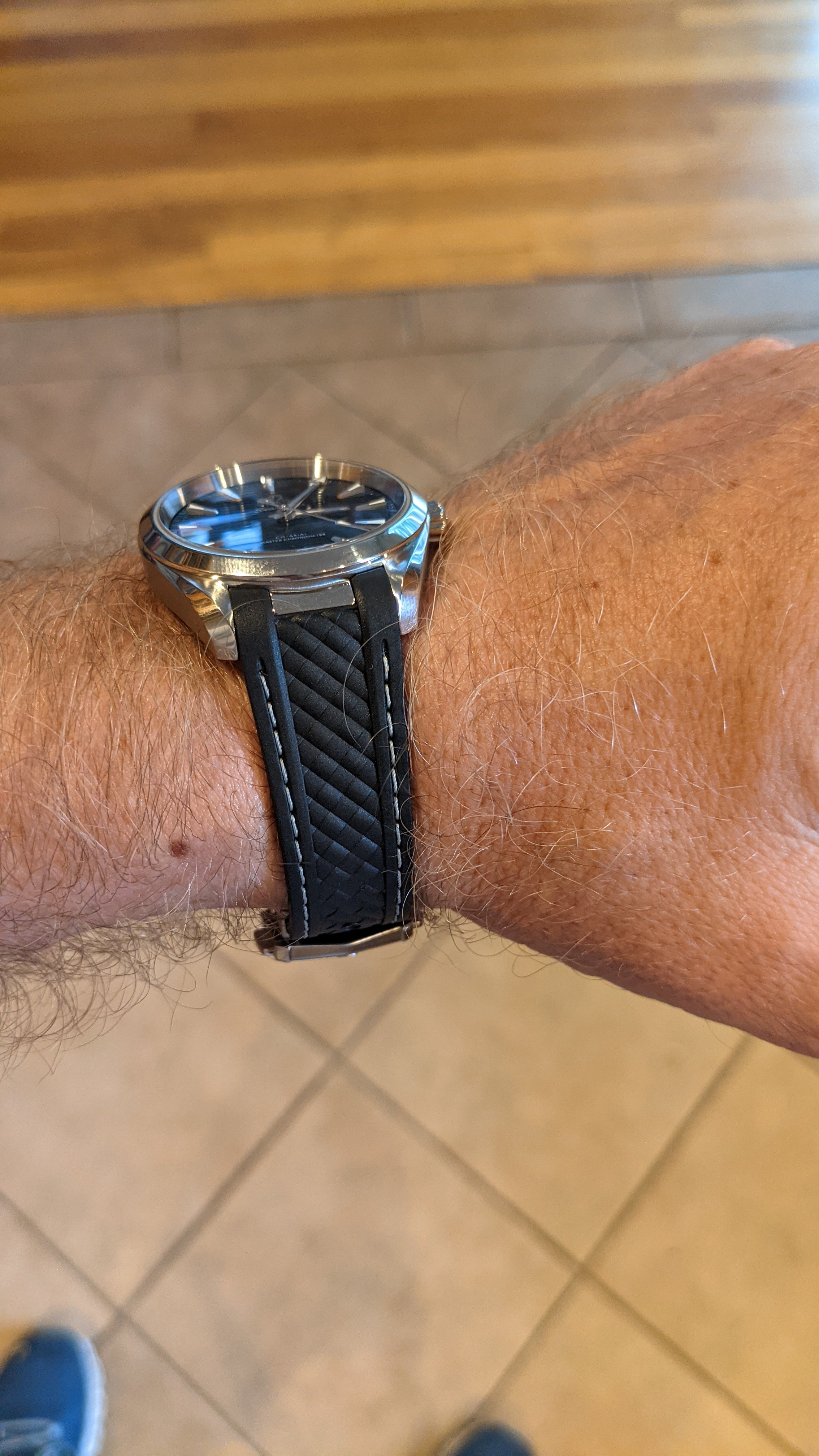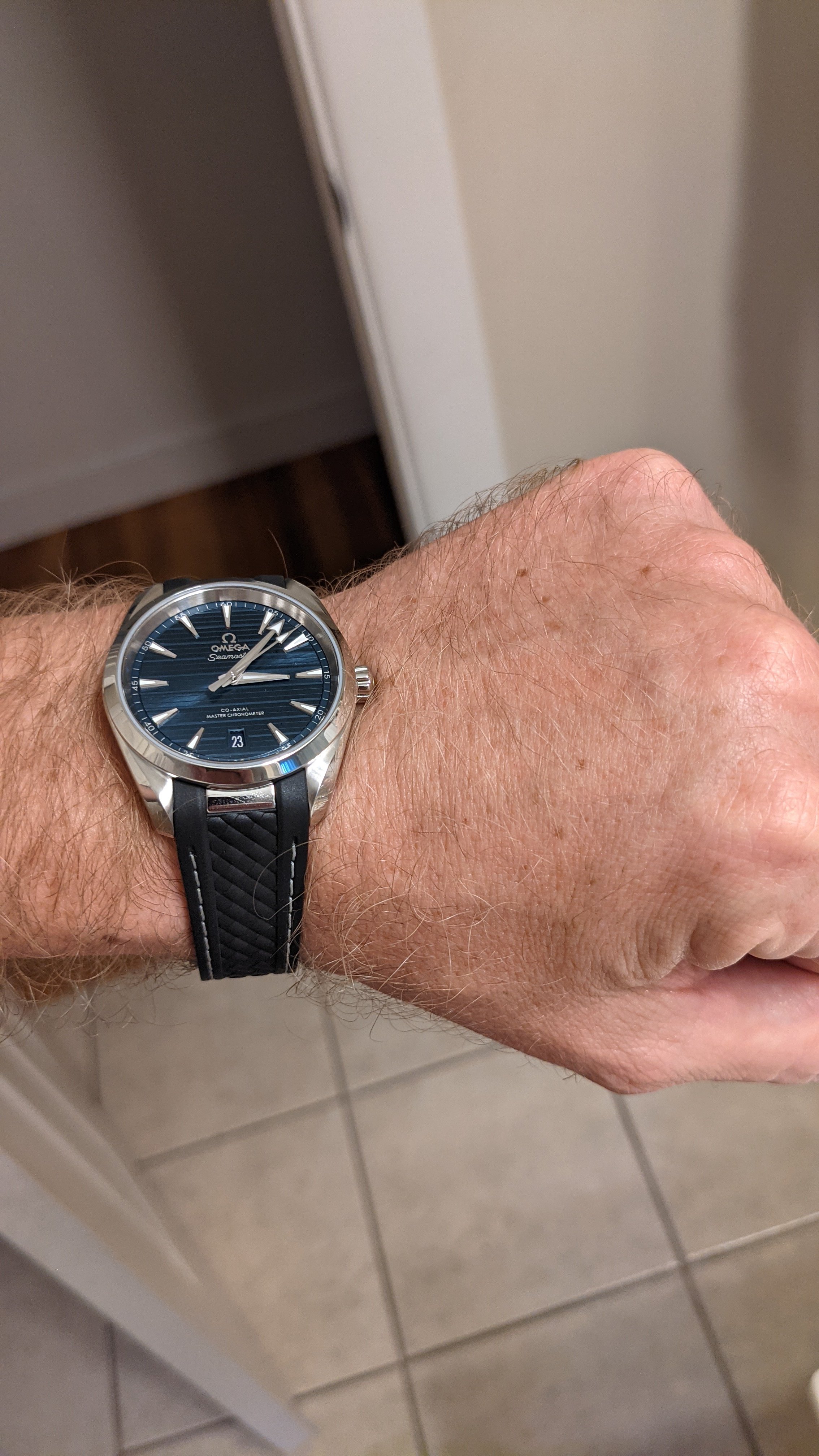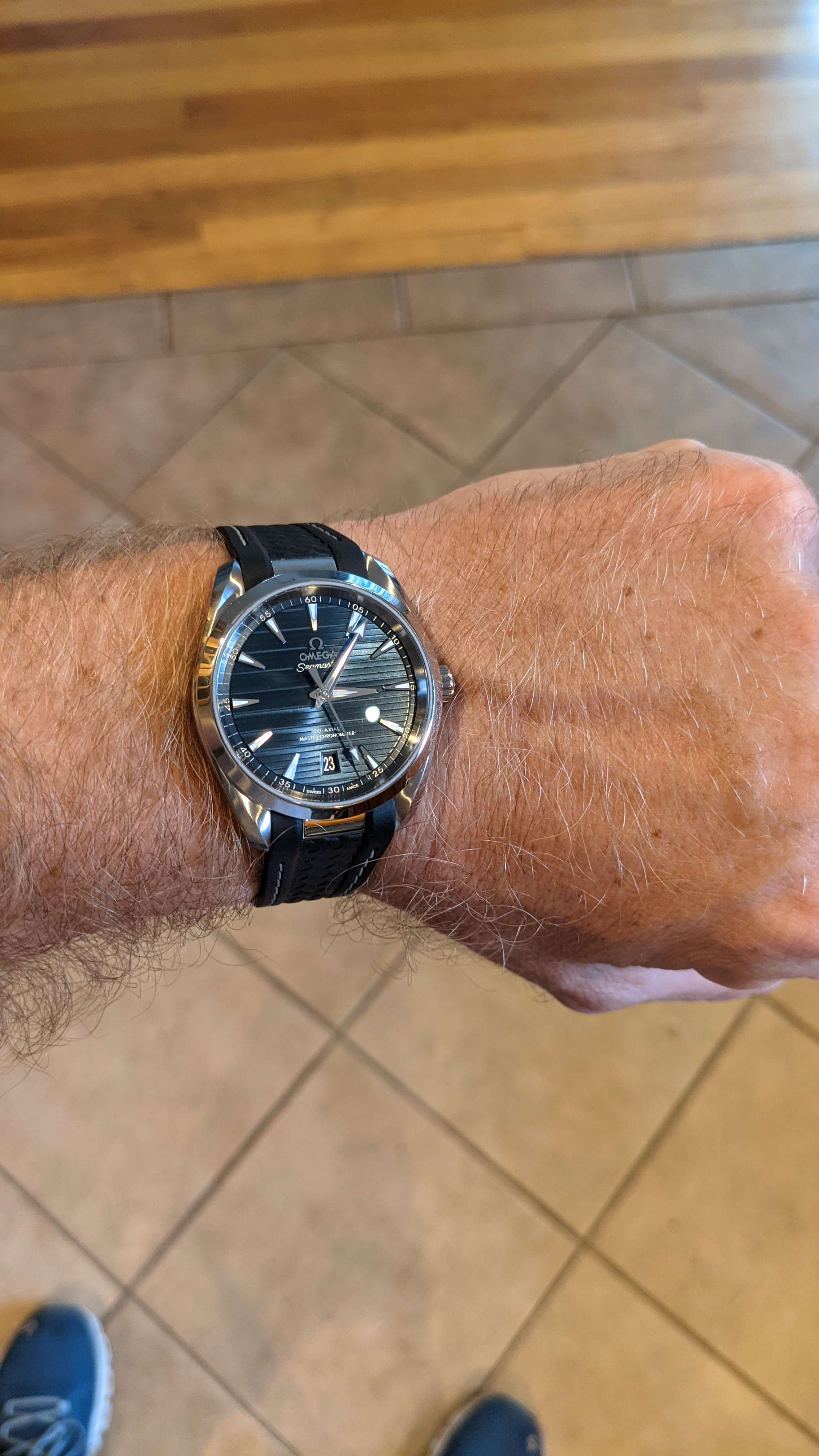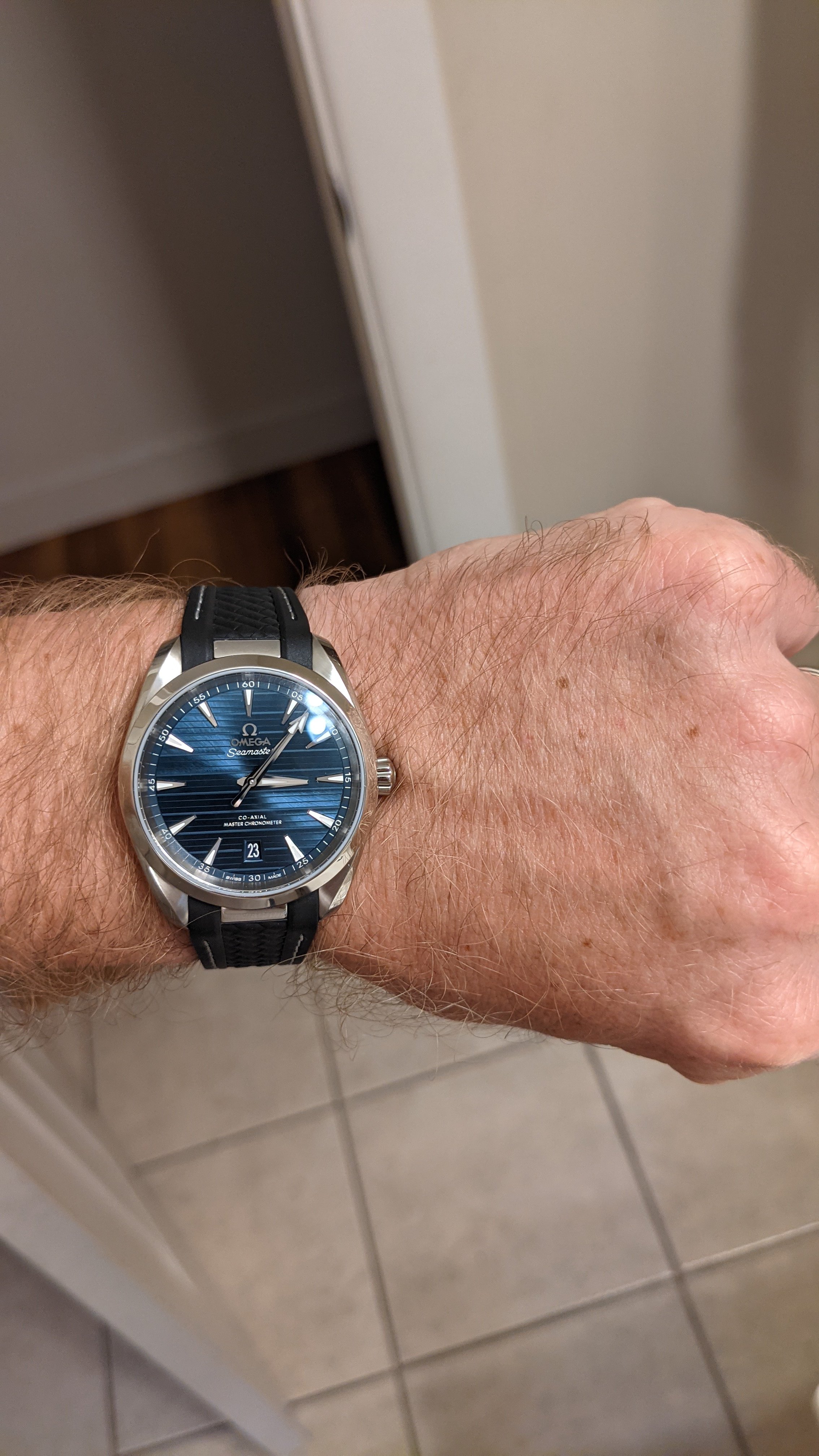 AD called me this afternoon regarding a 38mm Aqua Terra that I ordered last month. I was looking for something unique so I put the black strap on the blue dial. It looks great! Blue strap will go on during spring and summer. Maybe.