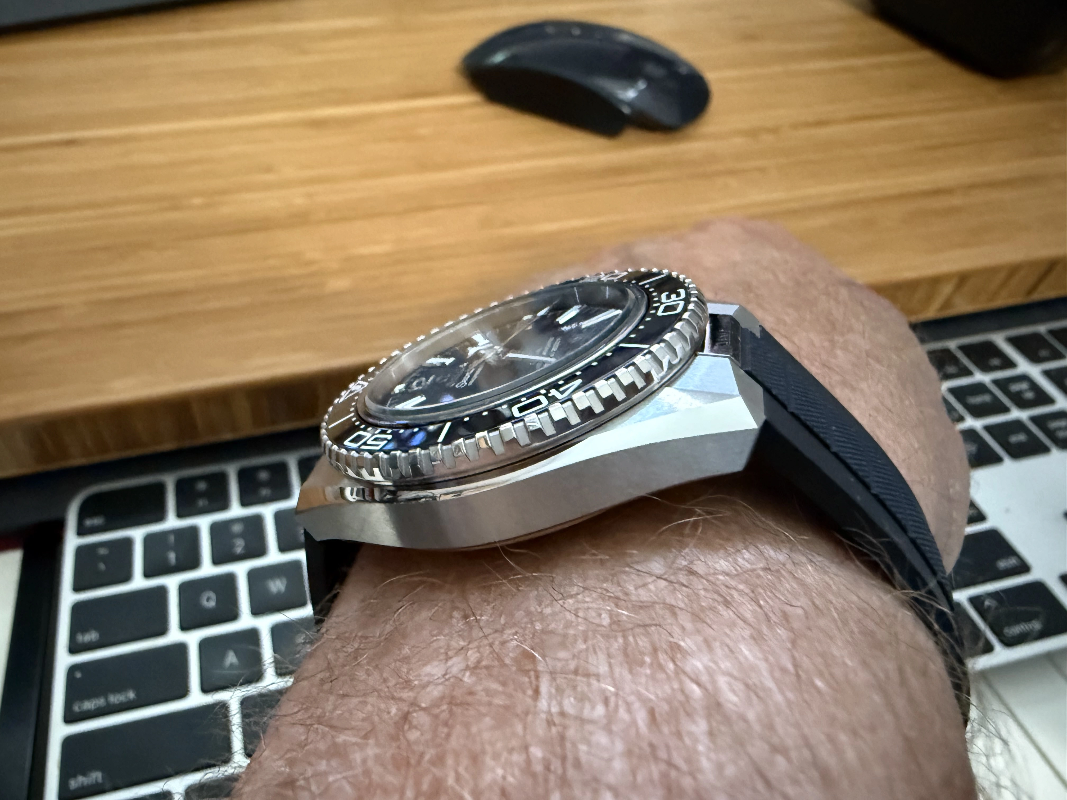 Really like the angular look. Size wise it fits really well on my wrist. I actually think the bezel vs dial size is spot on. I don't find the clasp too big at all and it appears to be super highly engineered. I get the extension isn't that nice to look at but in reality I'll only ever have it clicked out one position max and even then rarely so it's no issue to me. Don't mind the PCL either - I intend to have this as a real daily wearer so expect they will get worn in pretty quick to the extent I won't worry about scratches.