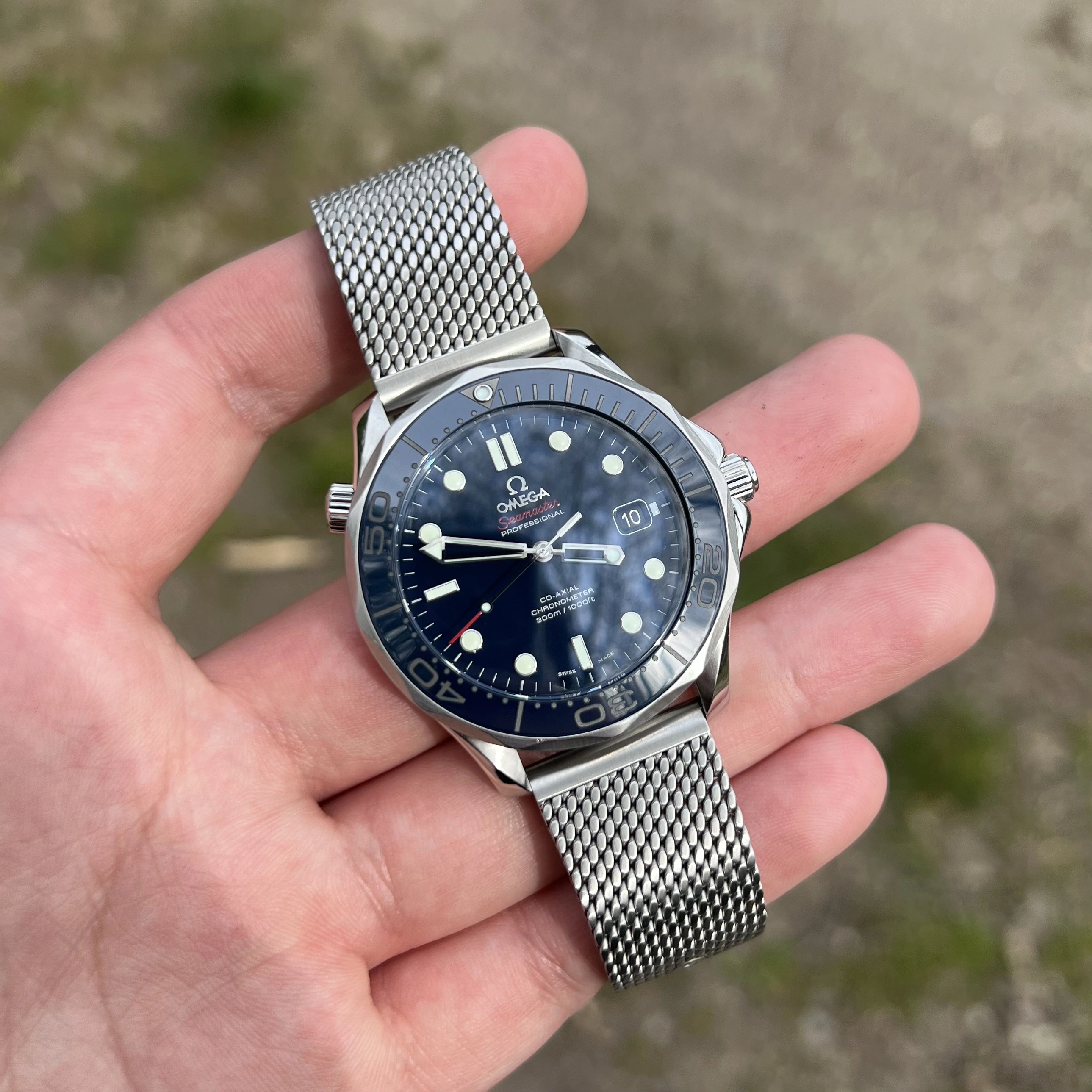 ·After seeing some pictures of the seamaster reference I own with a mesh strap, i knew i had to get one of these myself. It took around 5 months of waiting, but it is finally here!