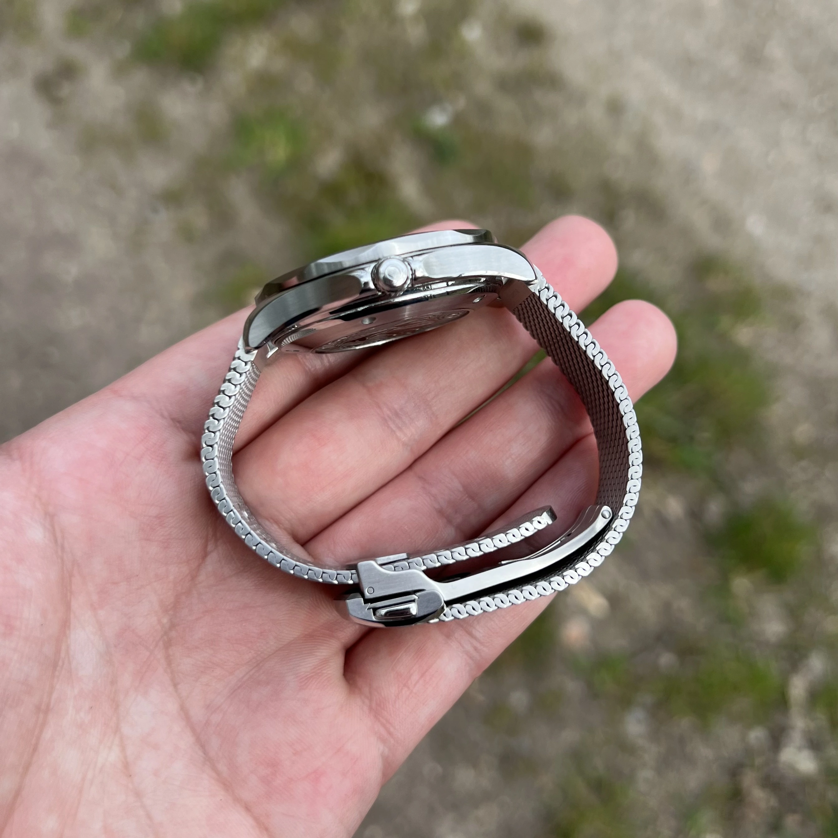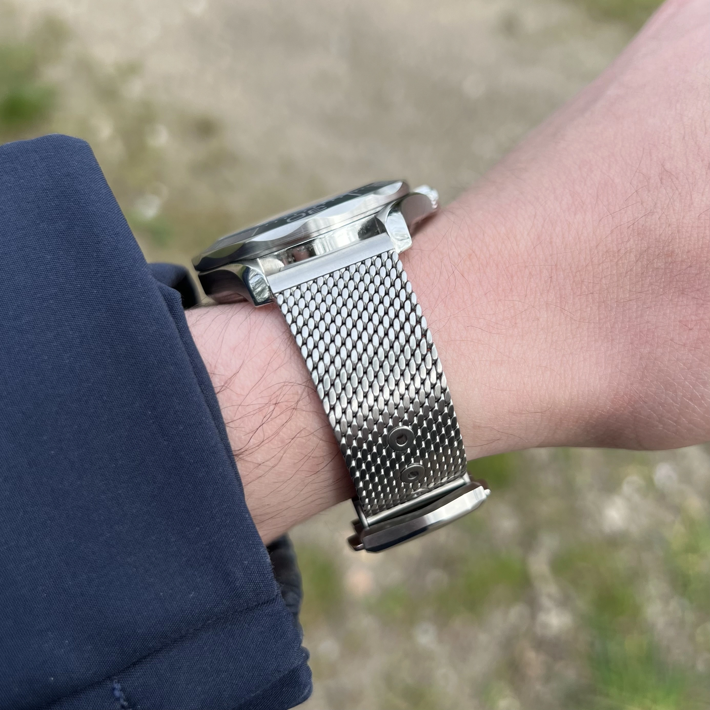 I'm overall incredibly satisfied with how it has turned out. The mesh completely changes the look of the watch. It also wears beautifully on my 16,5 cm (6,5 inch) circumference wrist, fit and finish is truly excellent. Due to it being the short length variant, there is no excess strap extending past the clasp, which makes it a very comfortable wear. One of the common points of criticism is the thickness at the clasp, which is something I personally don't notice at all. There certainly is a lot of material there, but I feel like it is balanced out well by the thickness of the watch head itself.