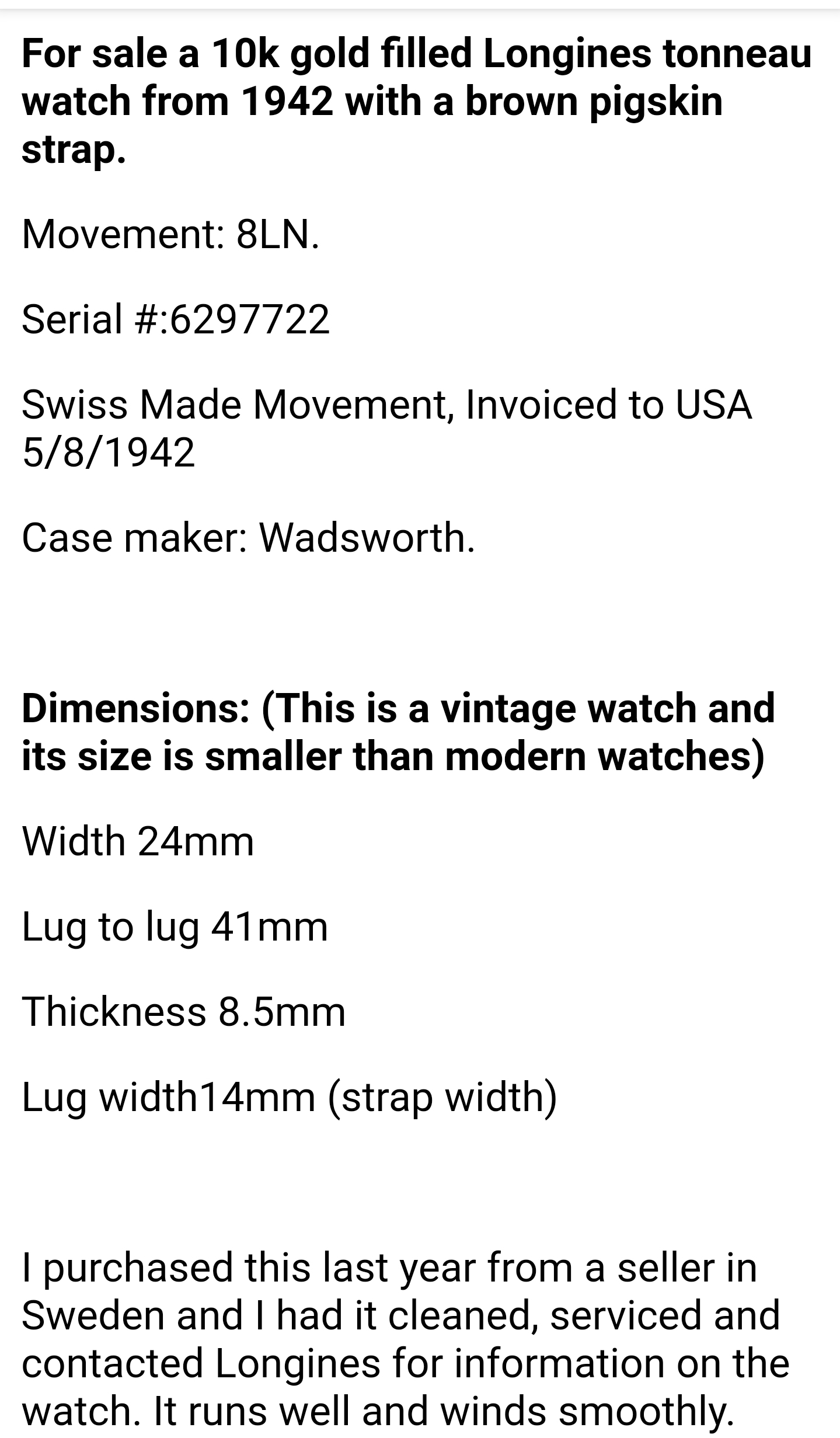 Glad everything worked out; it looks like a very nice piece. Humphrey Bogart (my avatar, actually) often wore a tonneau case Longines in the 40s and 50s. 馃槑