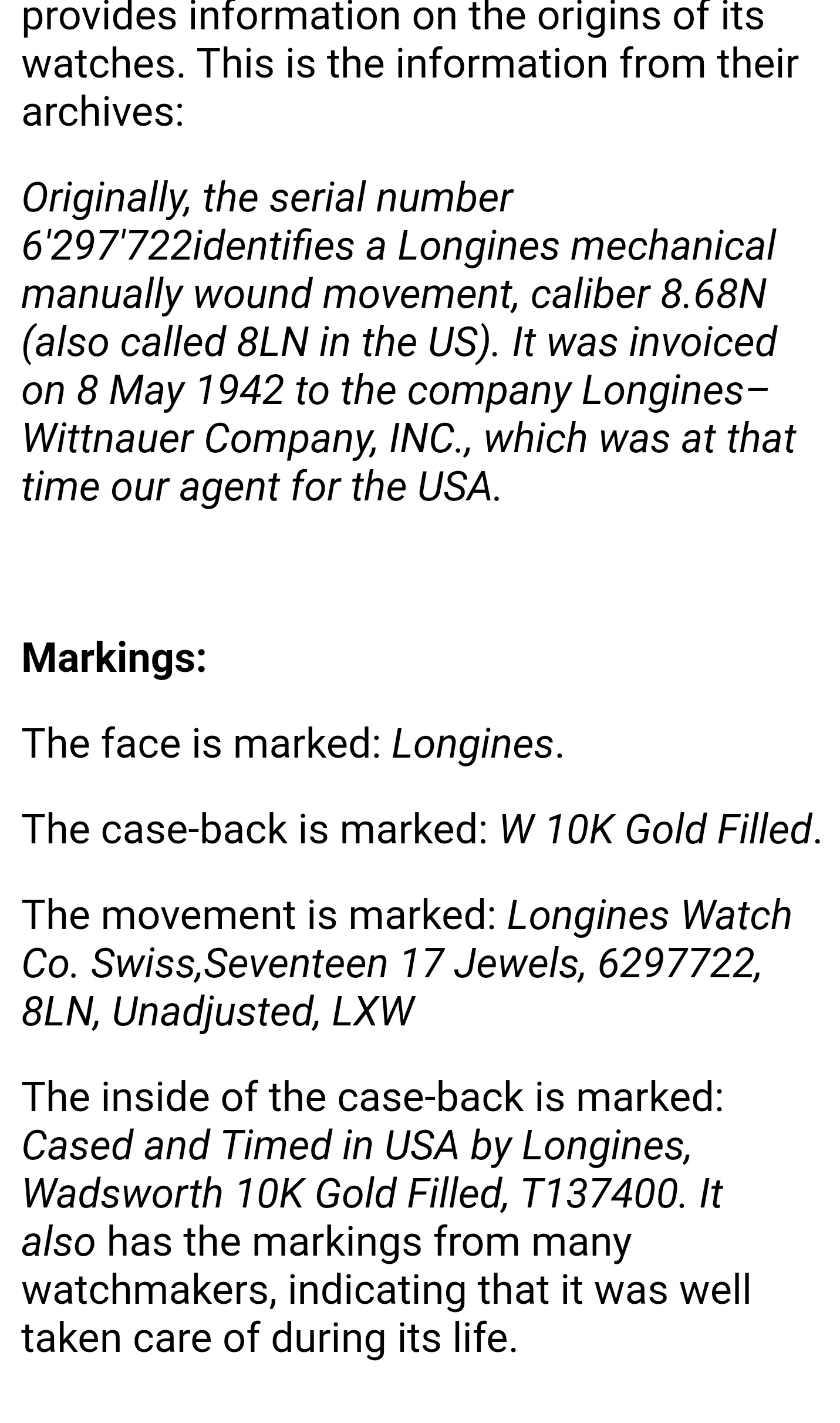 The Longines extract offers the least information of any of the manufacturers that have this service. Alternatively, and possibly depending on what you paid, you could get a certificate of authenticity for $175 where their watchmakers authenticate the watch.