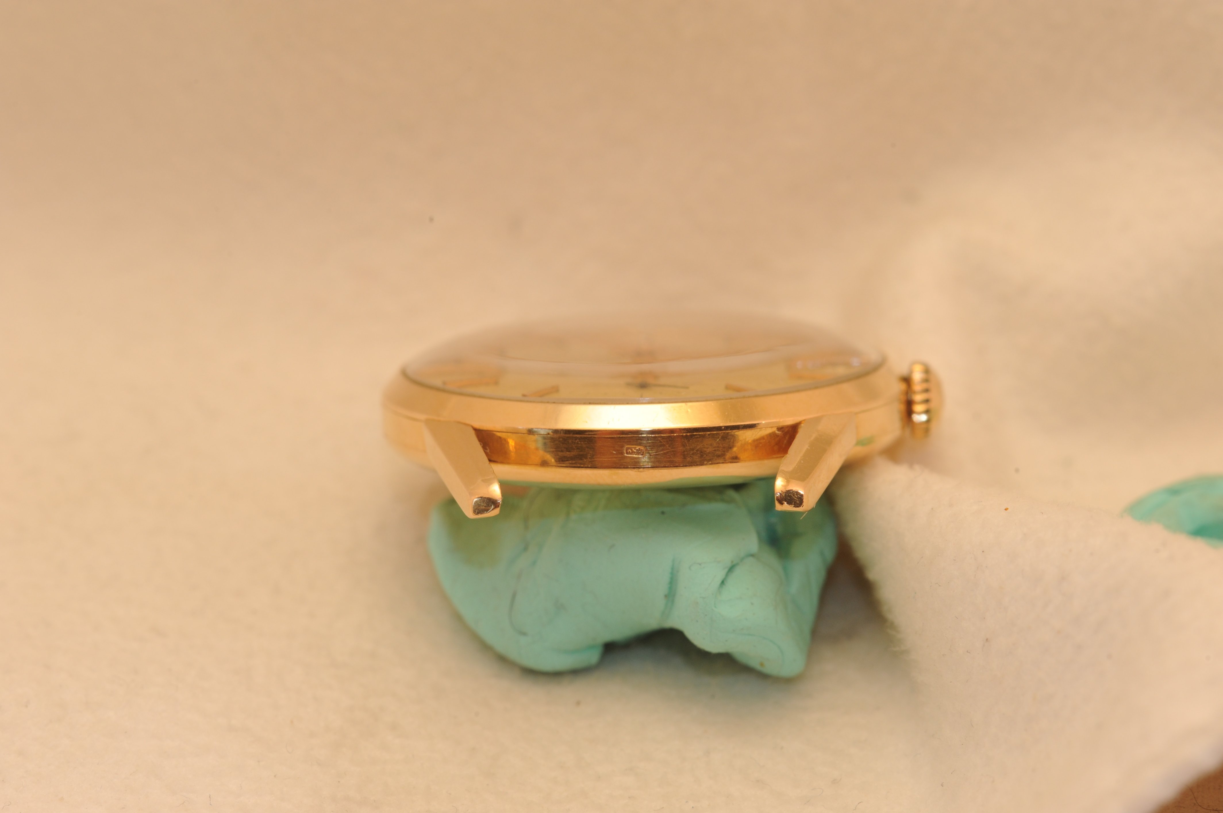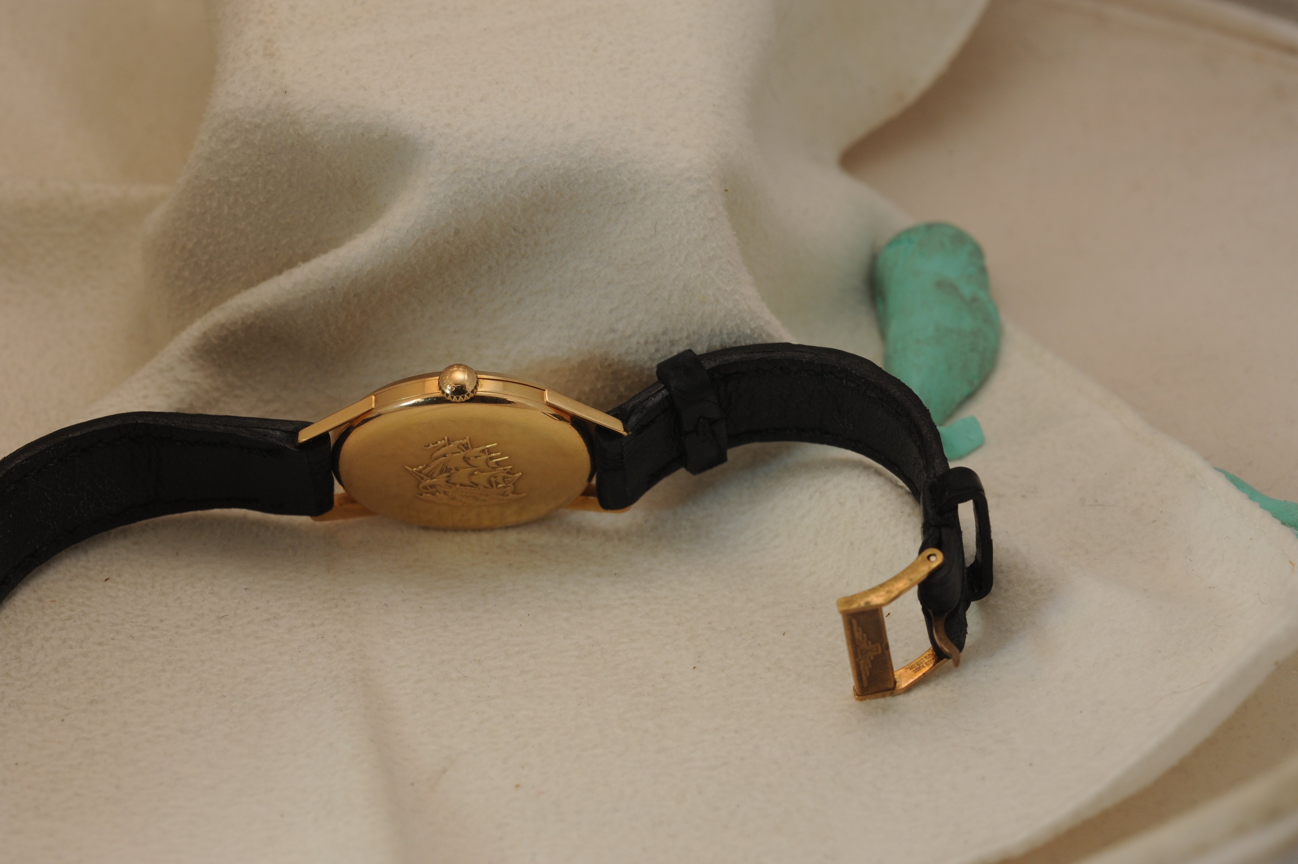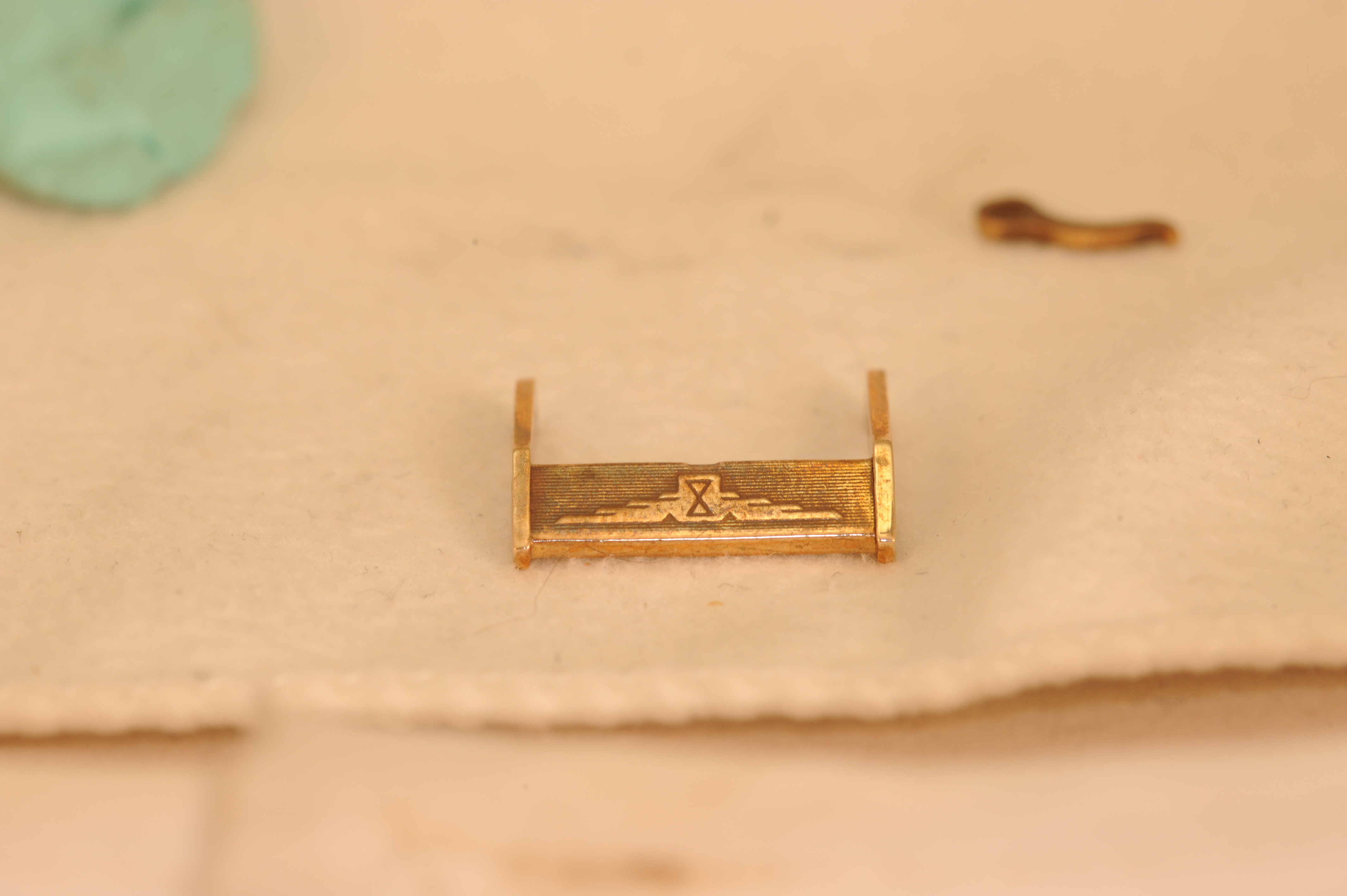 Buckle: Added at a later date. I think it's date appropriate for this mid 50's piece. It's also pink gold, and may be solid gold, but I am not sure of this.
