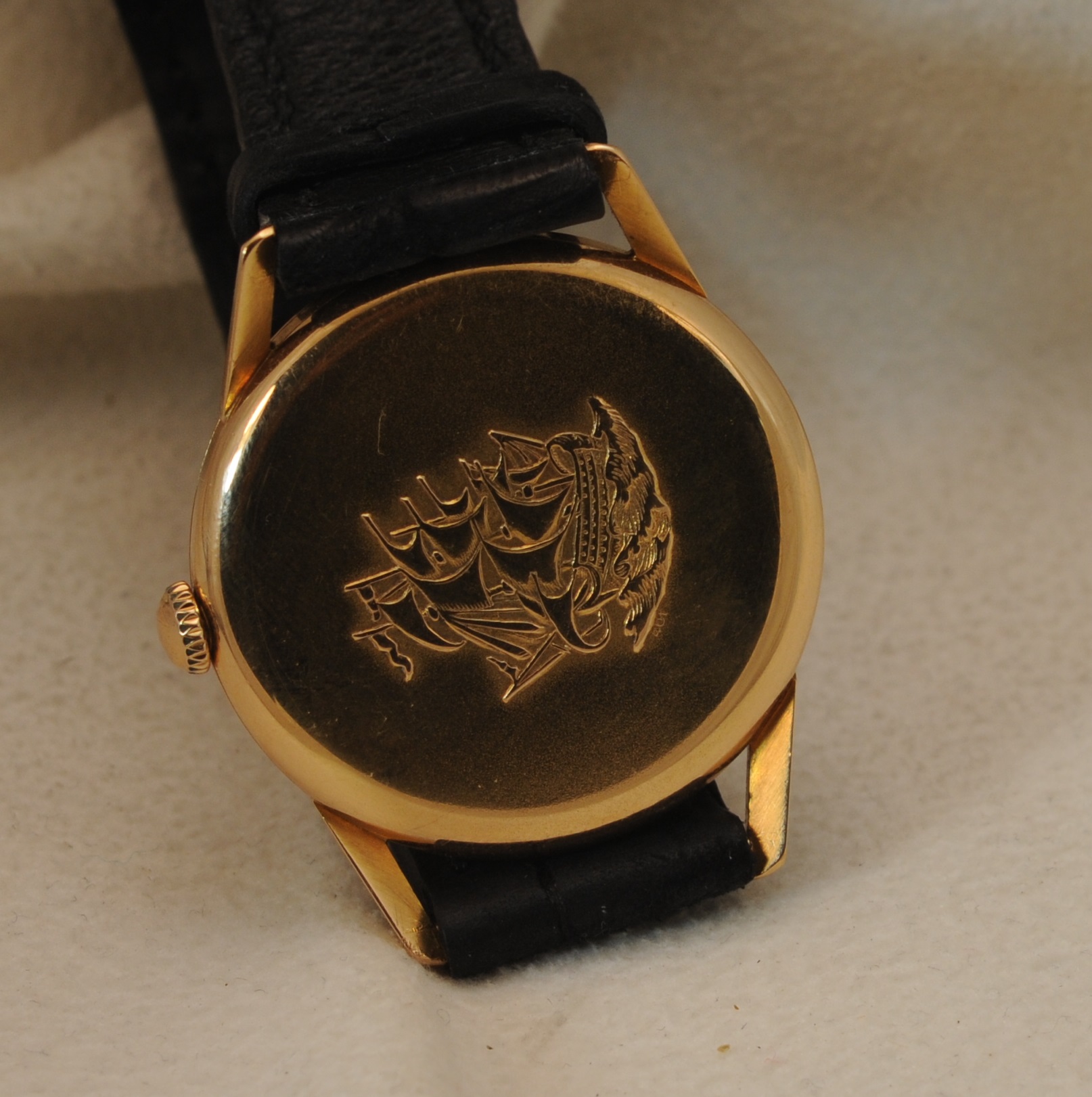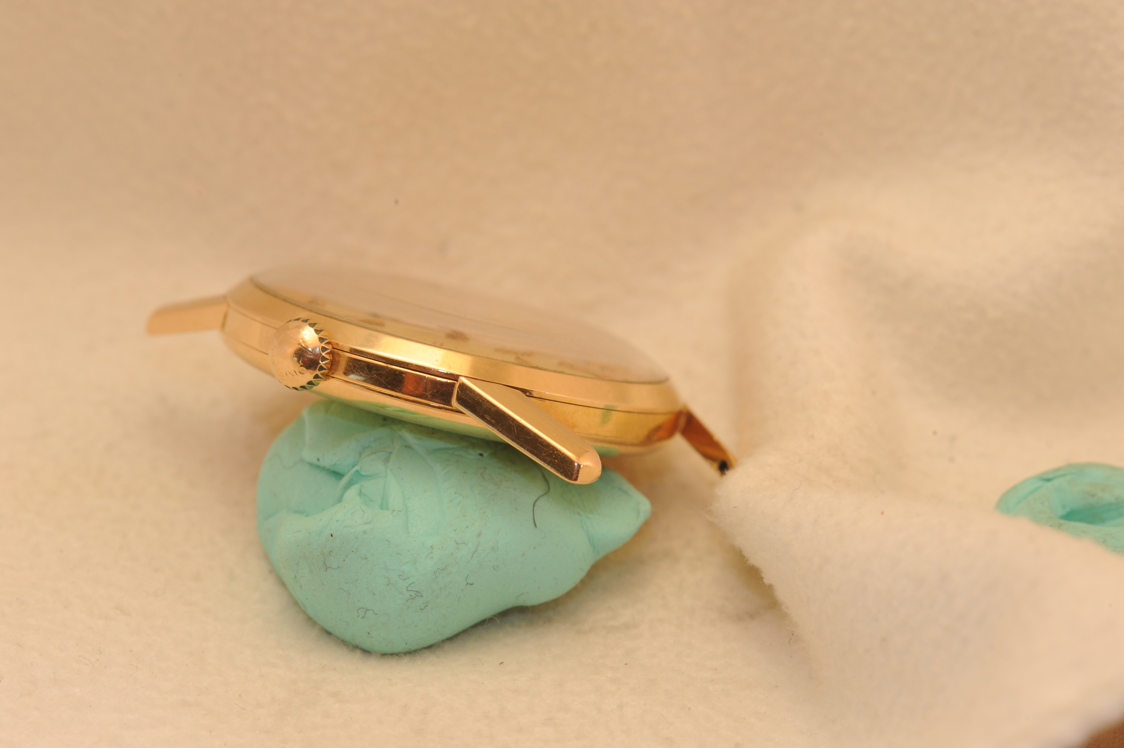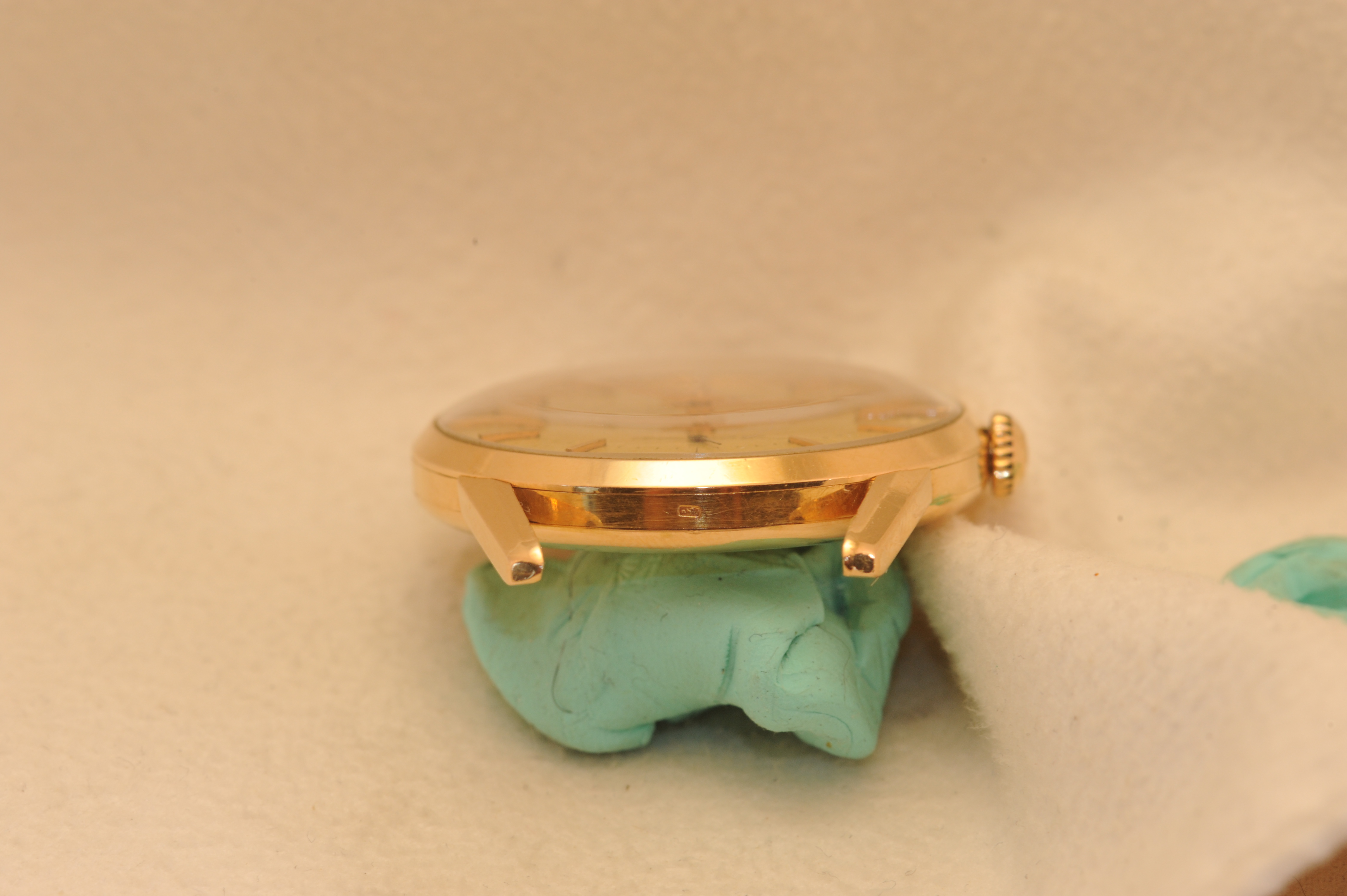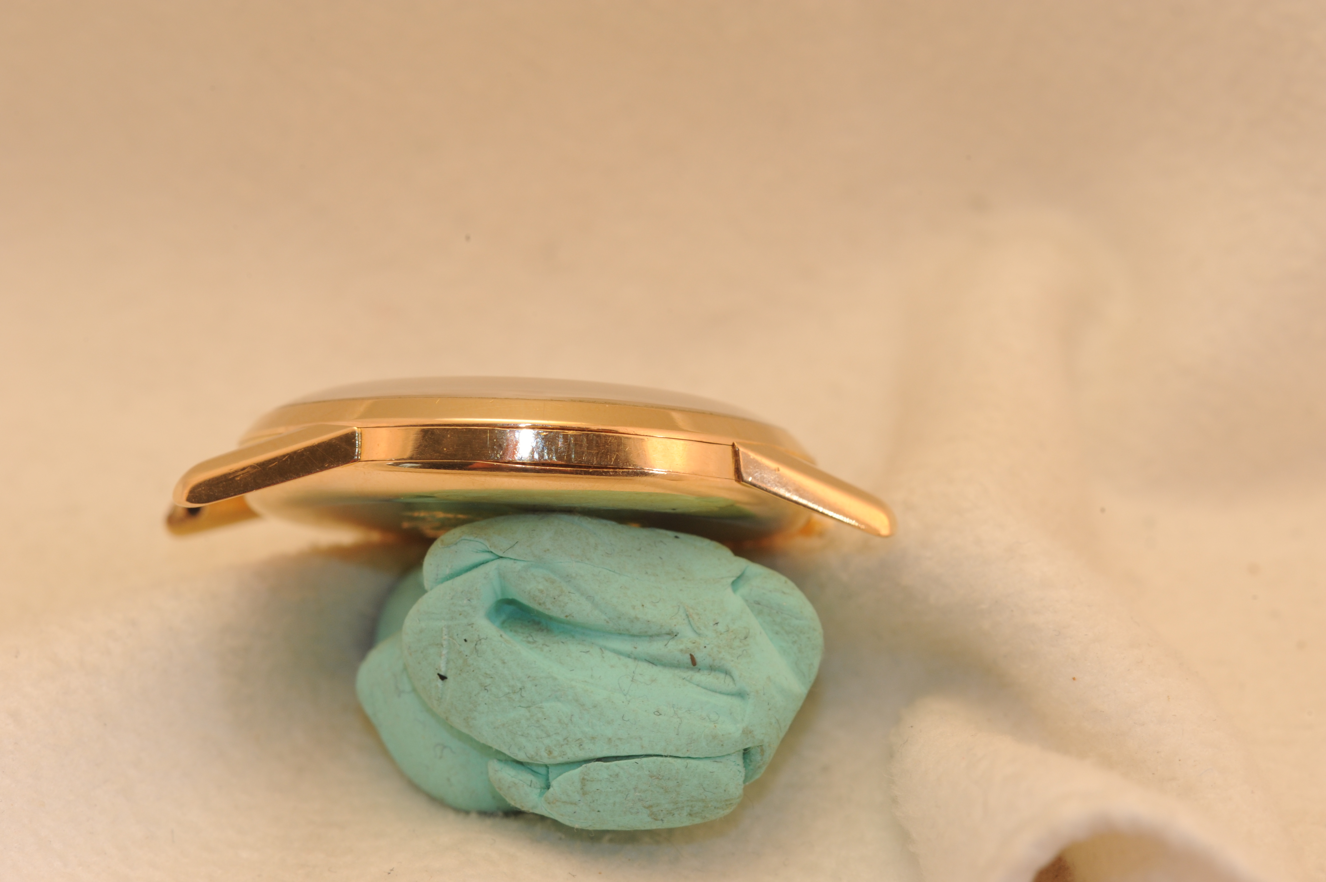 Buckle: Added at a later date. I think it's date appropriate for this mid 50's piece. It's also pink gold, and may be solid gold, but I am not sure of this.