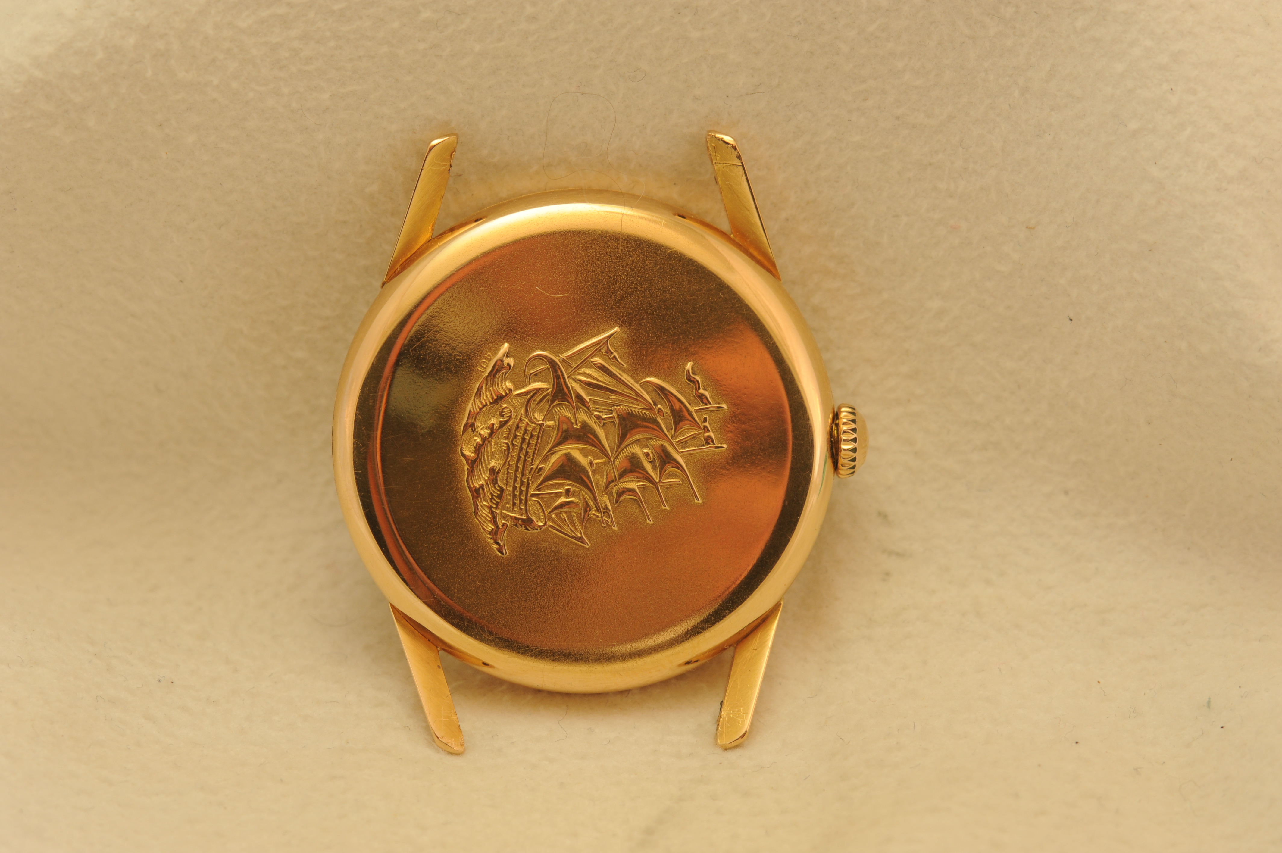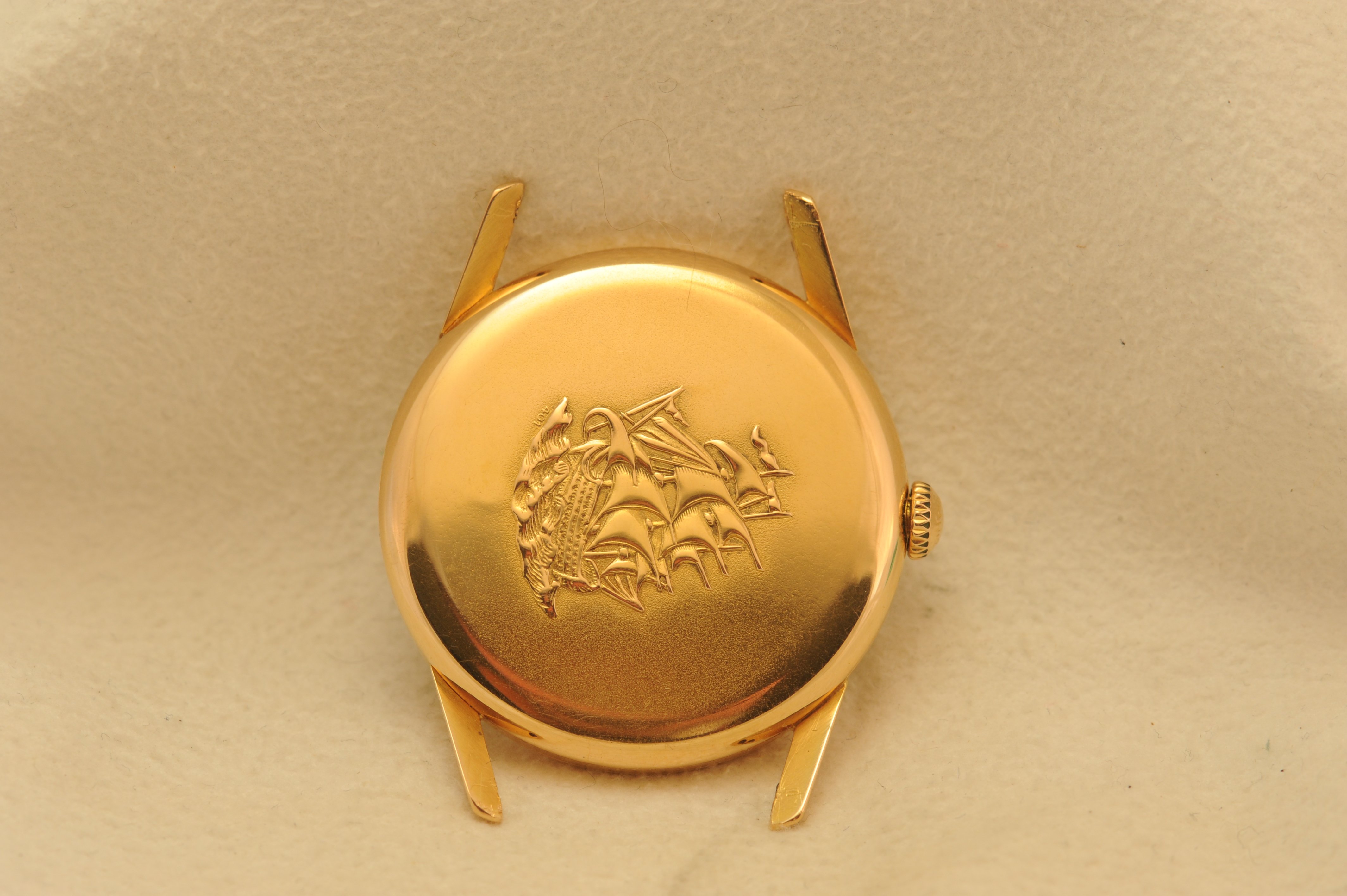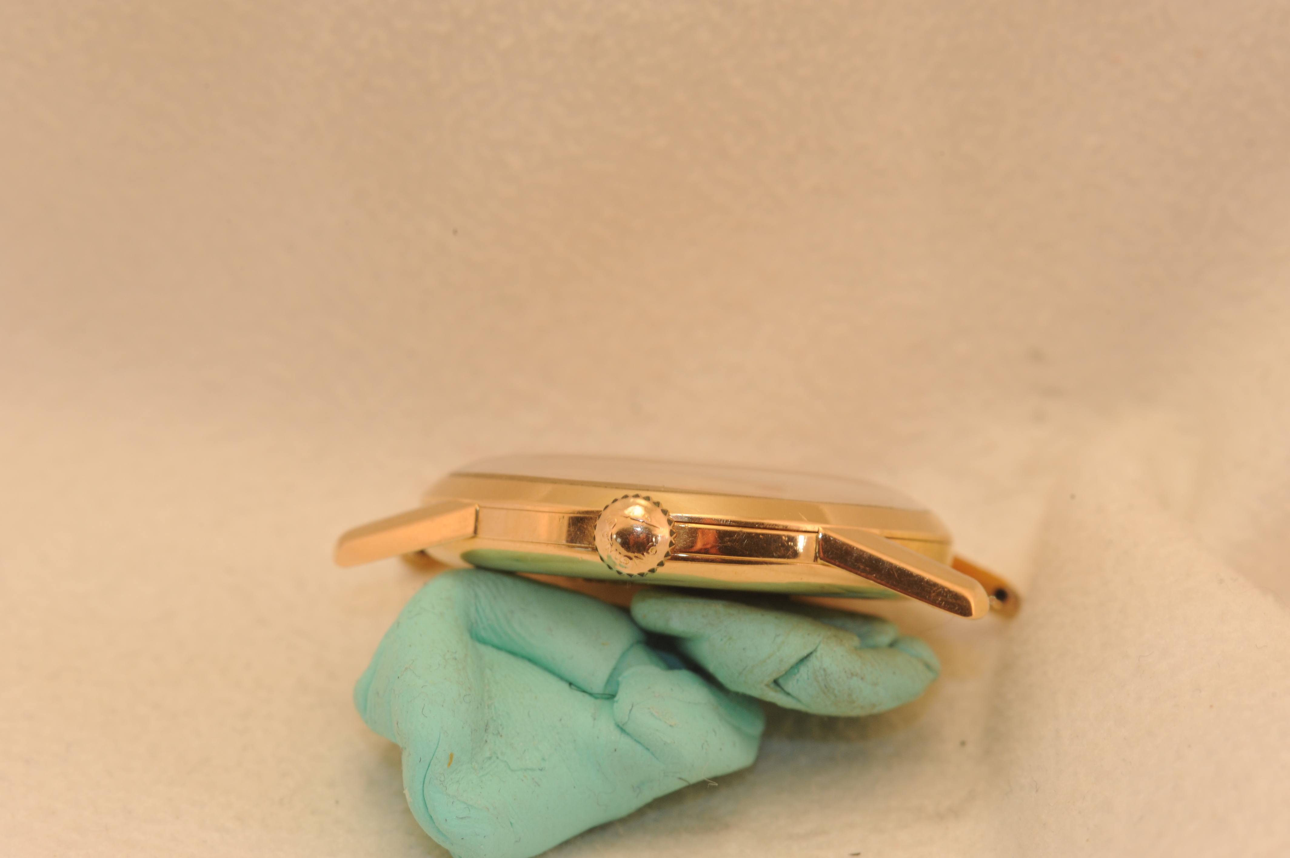 Case: 18K Pink gold. 34 mm but wears larger due to thin bezel and long lugs. Looks like it's seen a sympathetic polish. Chamfers and lug edges and tips are well preserved.